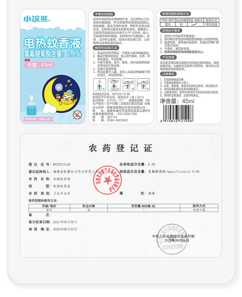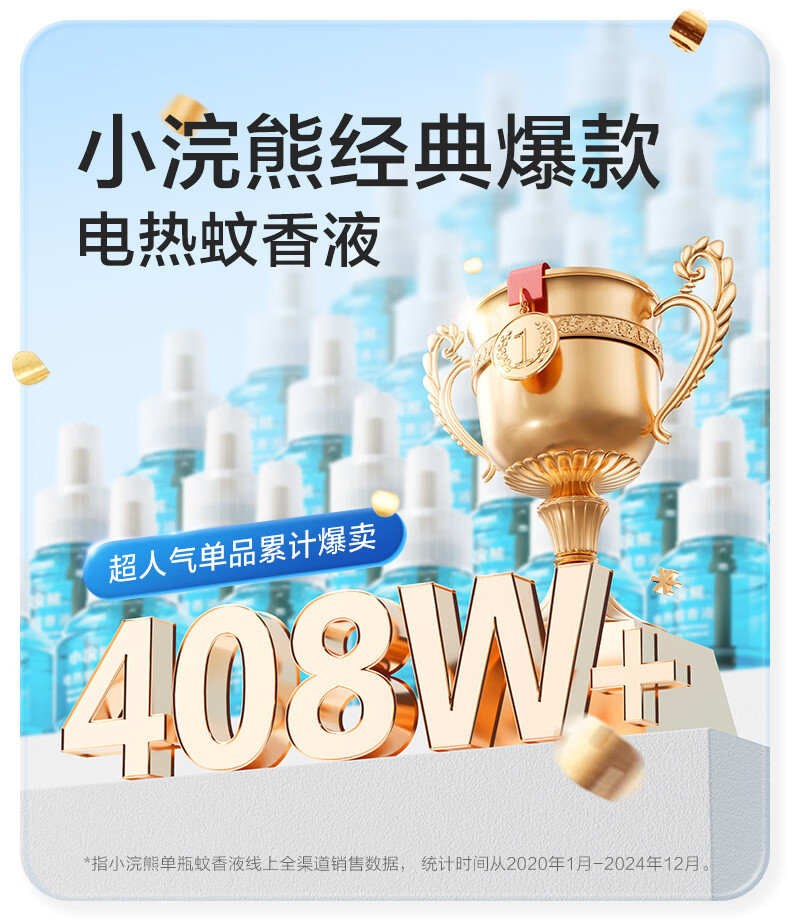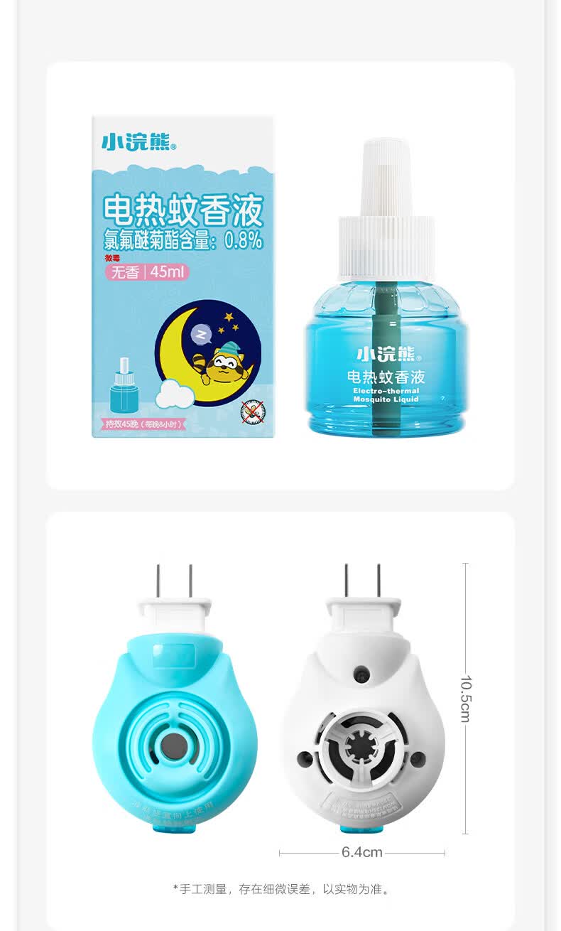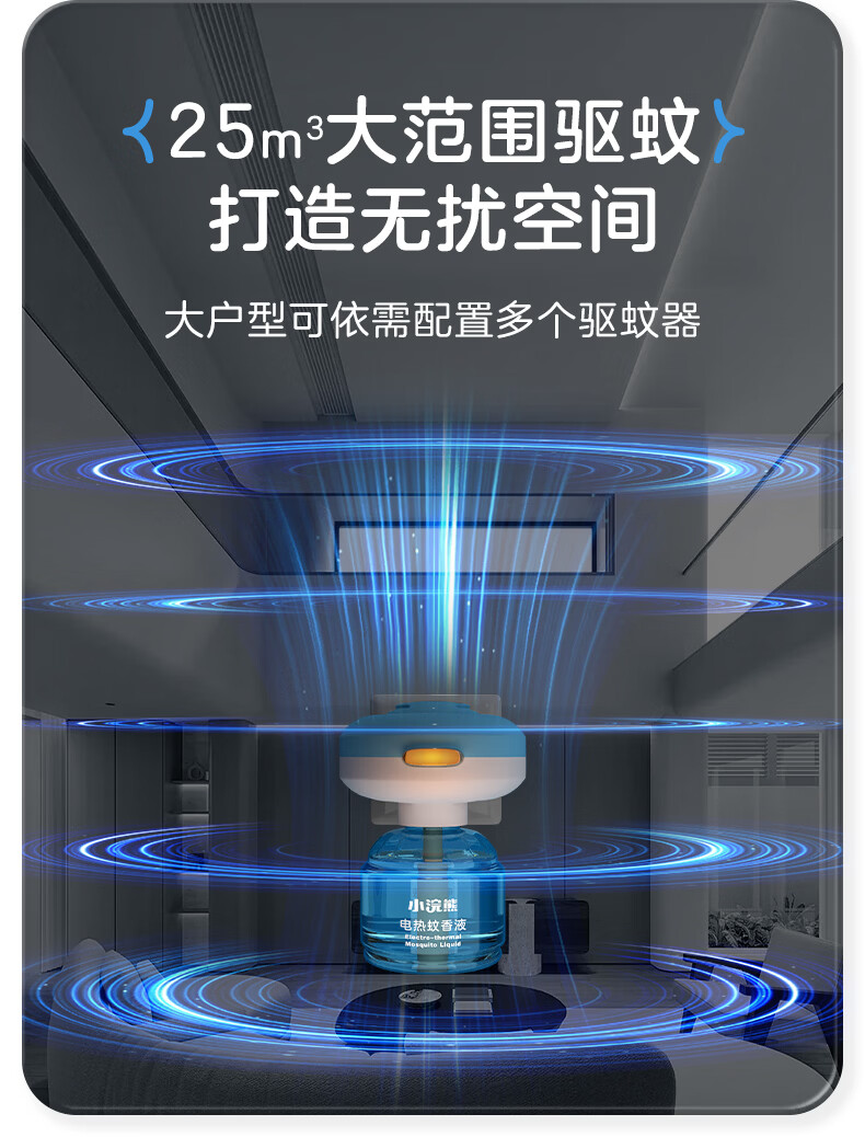 小浣熊电热蚊香液加热器套装无烟无香电蚊香驱蚊器补充装驱蚊液 【4液1器】有效驱蚊