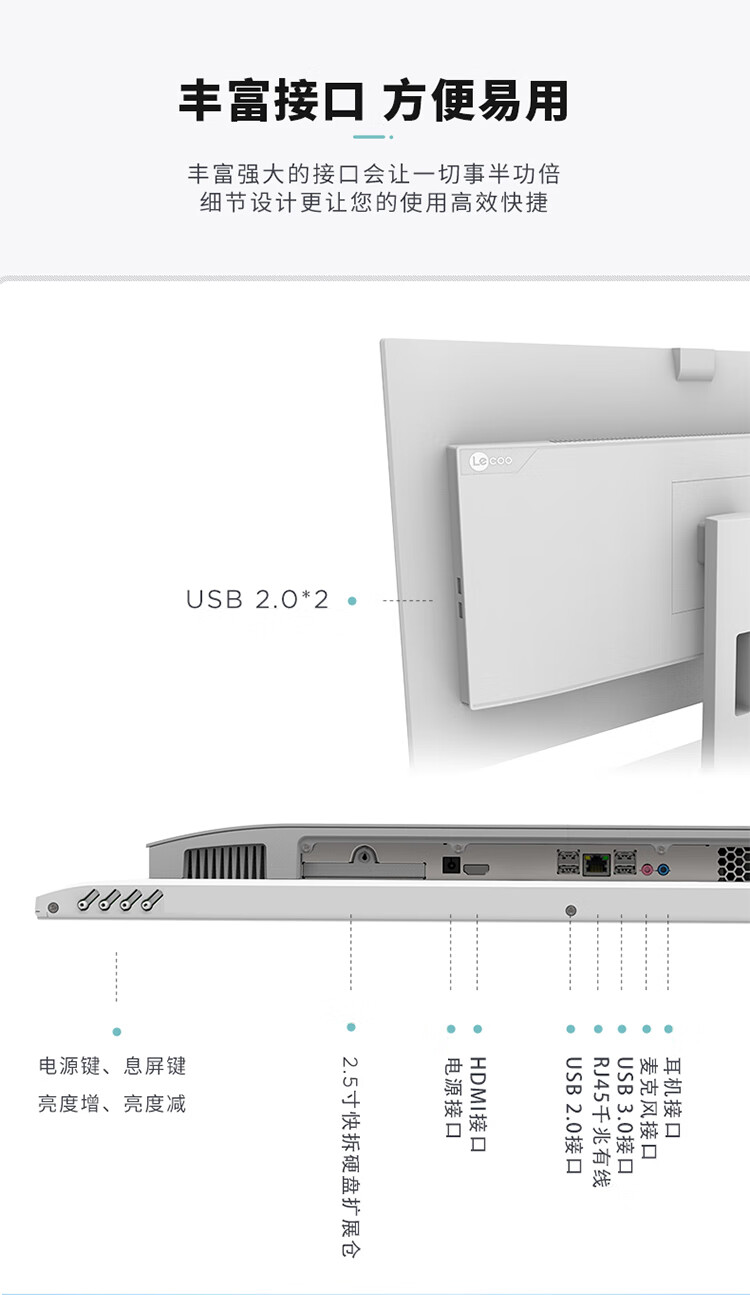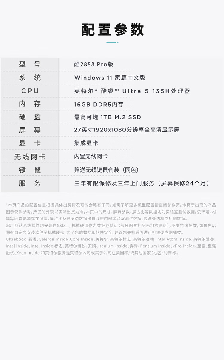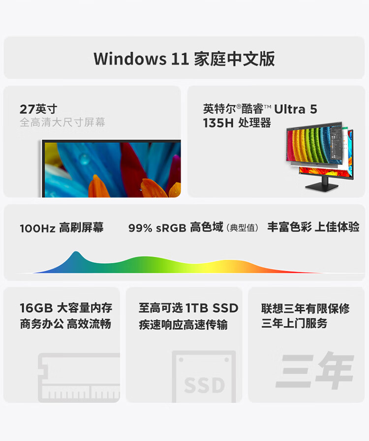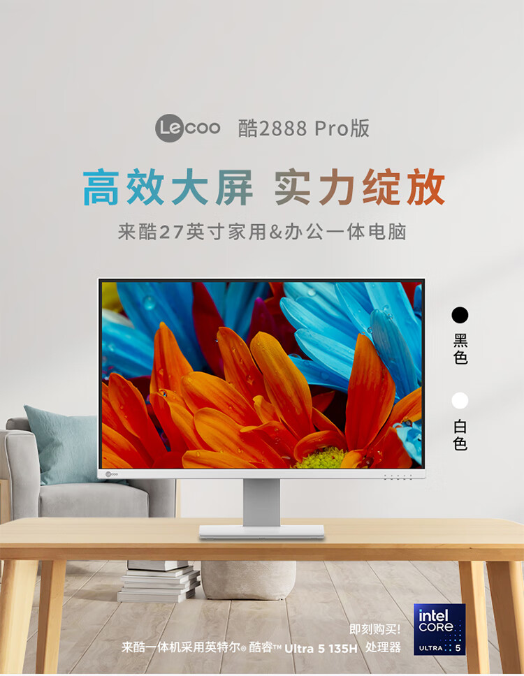 联想来酷 Lecoo一体台式机电脑27英寸( 酷睿 Ultra5-135H 16G内存 1TB SSD 无线键鼠 正版win11 ) 白