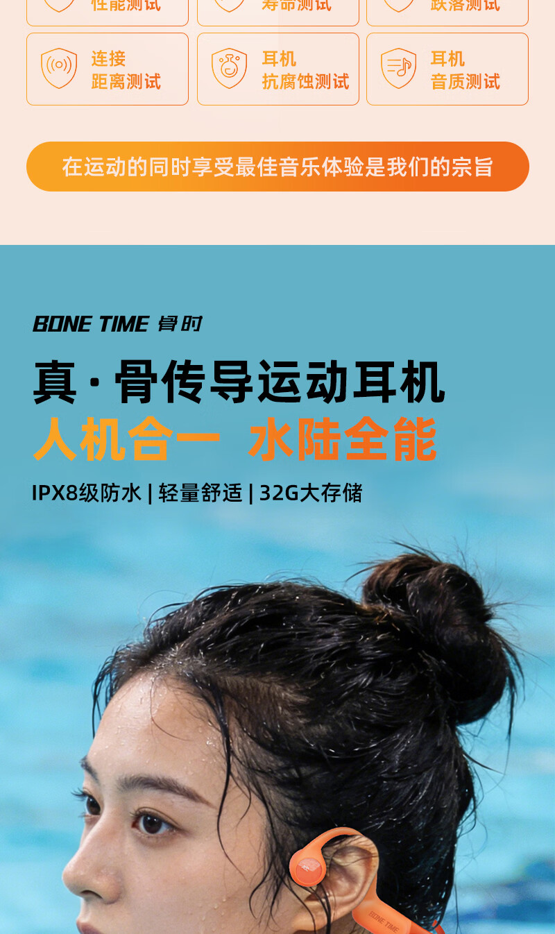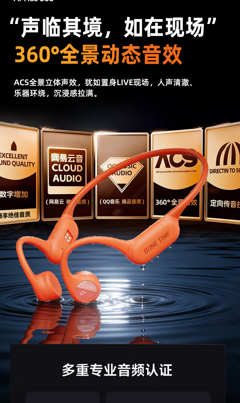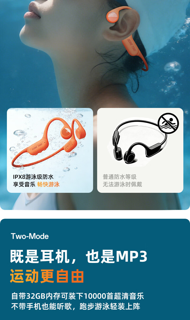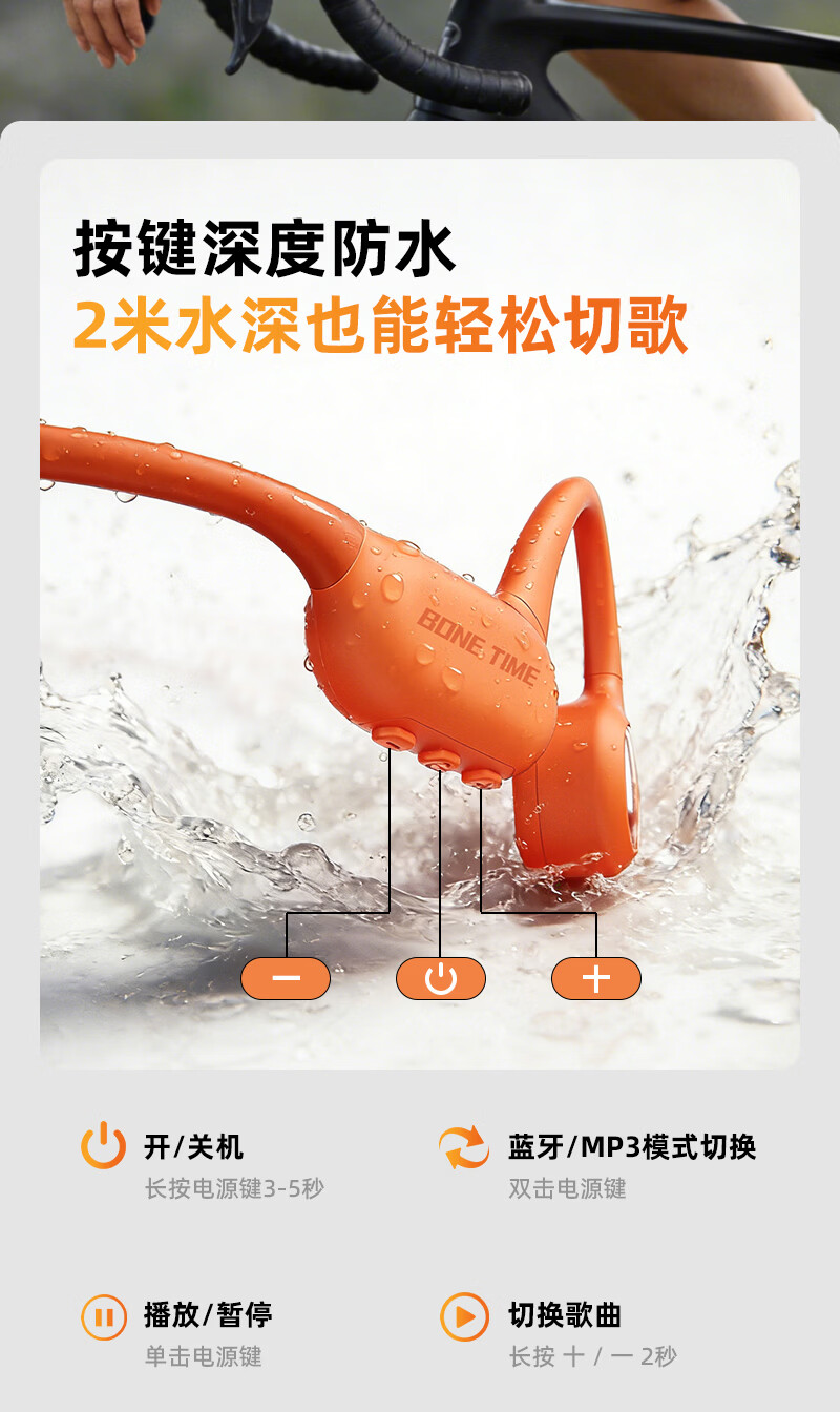 BONETIME【分期免息】骨时X20游泳耳机骨传导IPX8级防水运动自带32G内存耳机跑步骑行长续航蓝牙骨传导耳机 【旗舰版】闪电橙 | 游泳8级防水+32GB内存 赠收纳包+耳塞