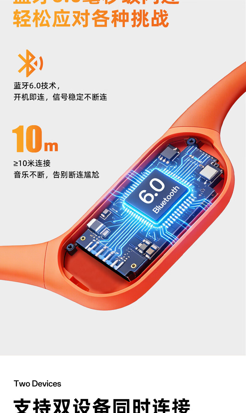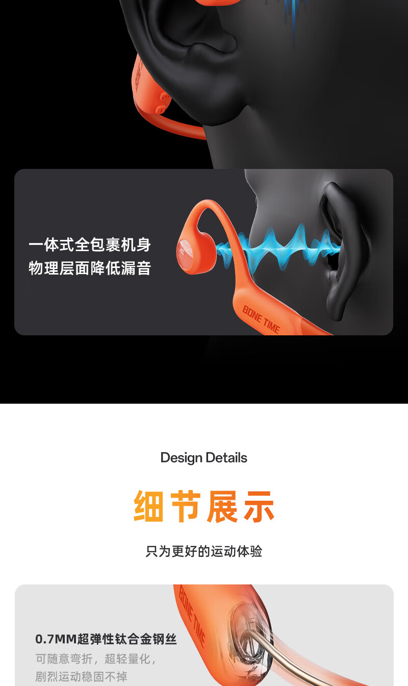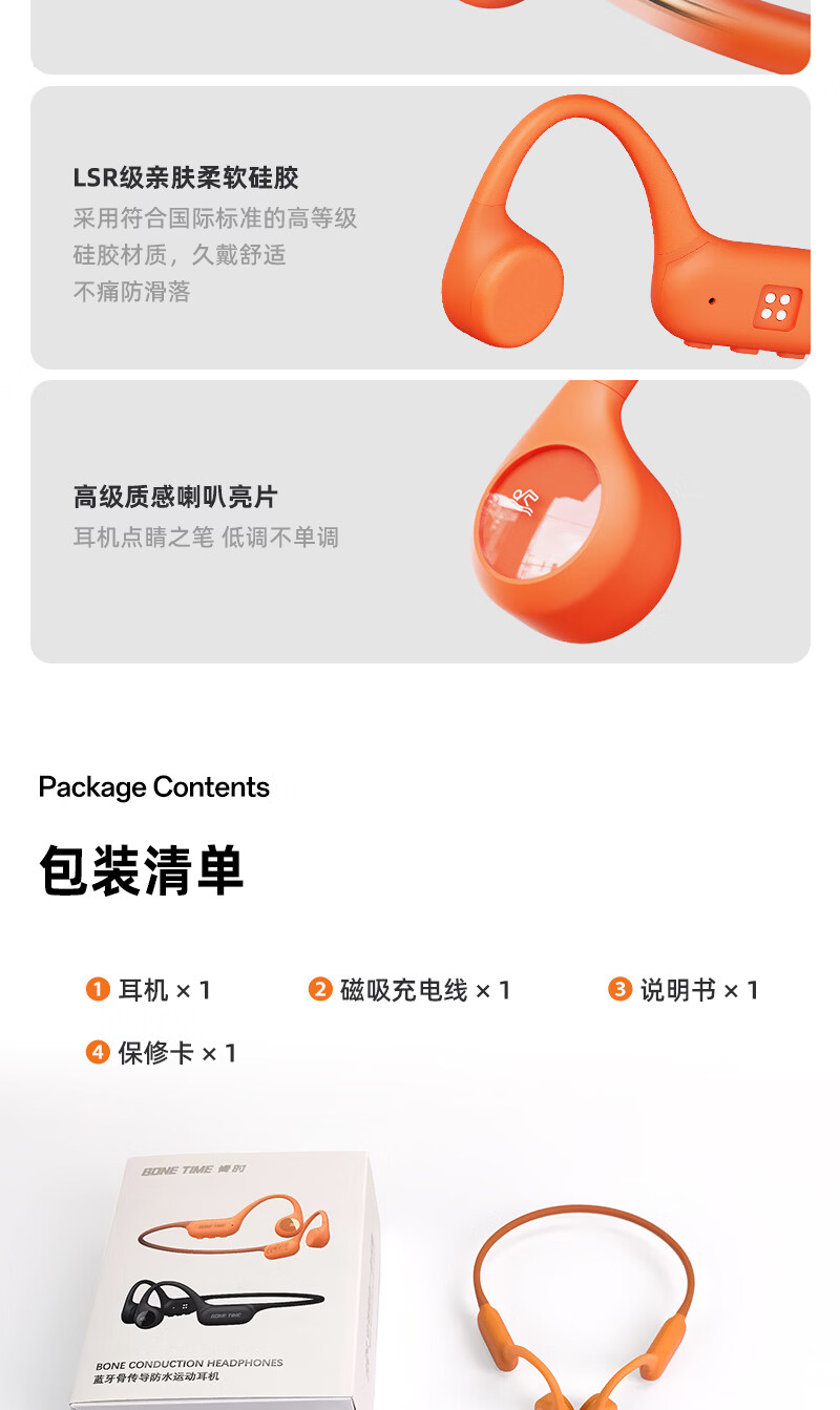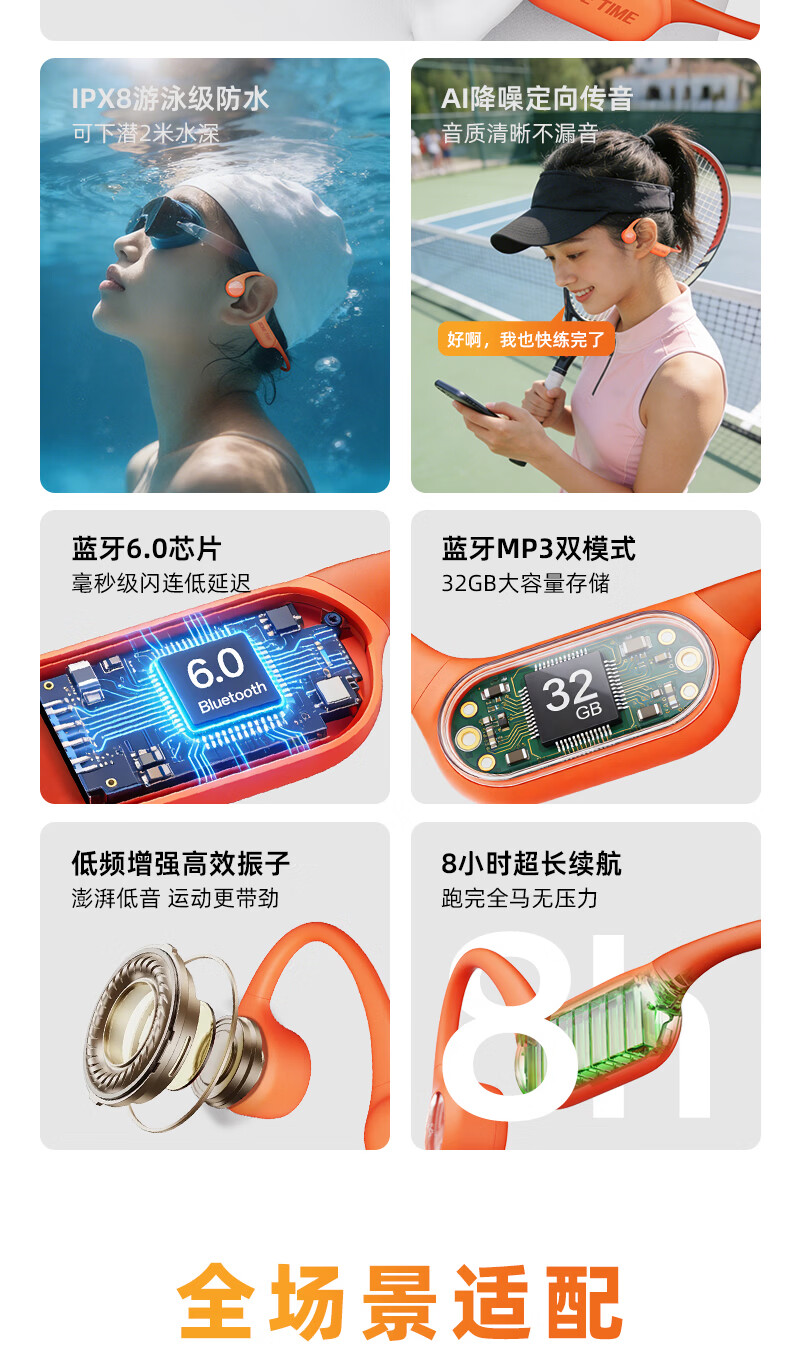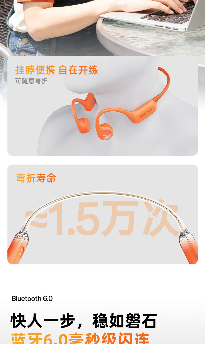 BONETIME【分期免息】骨时X20游泳耳机骨传导IPX8级防水运动自带32G内存耳机跑步骑行长续航蓝牙骨传导耳机 【旗舰版】闪电橙 | 游泳8级防水+32GB内存 赠收纳包+耳塞