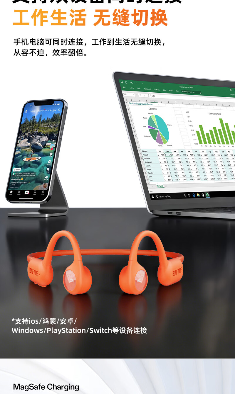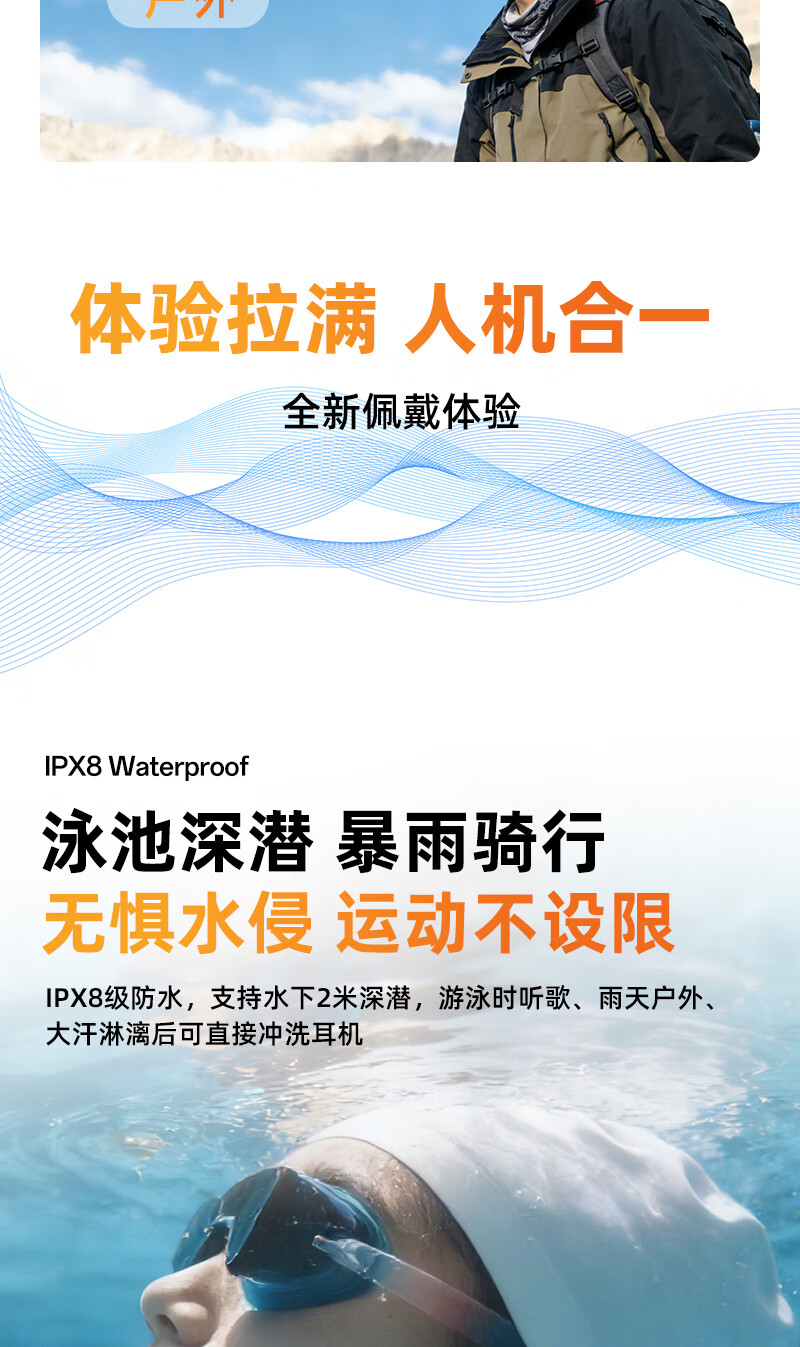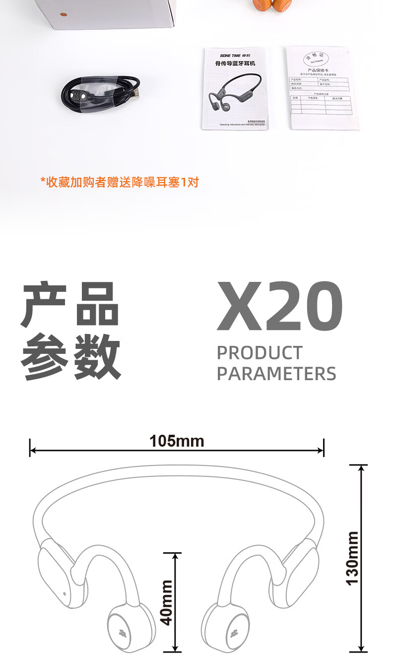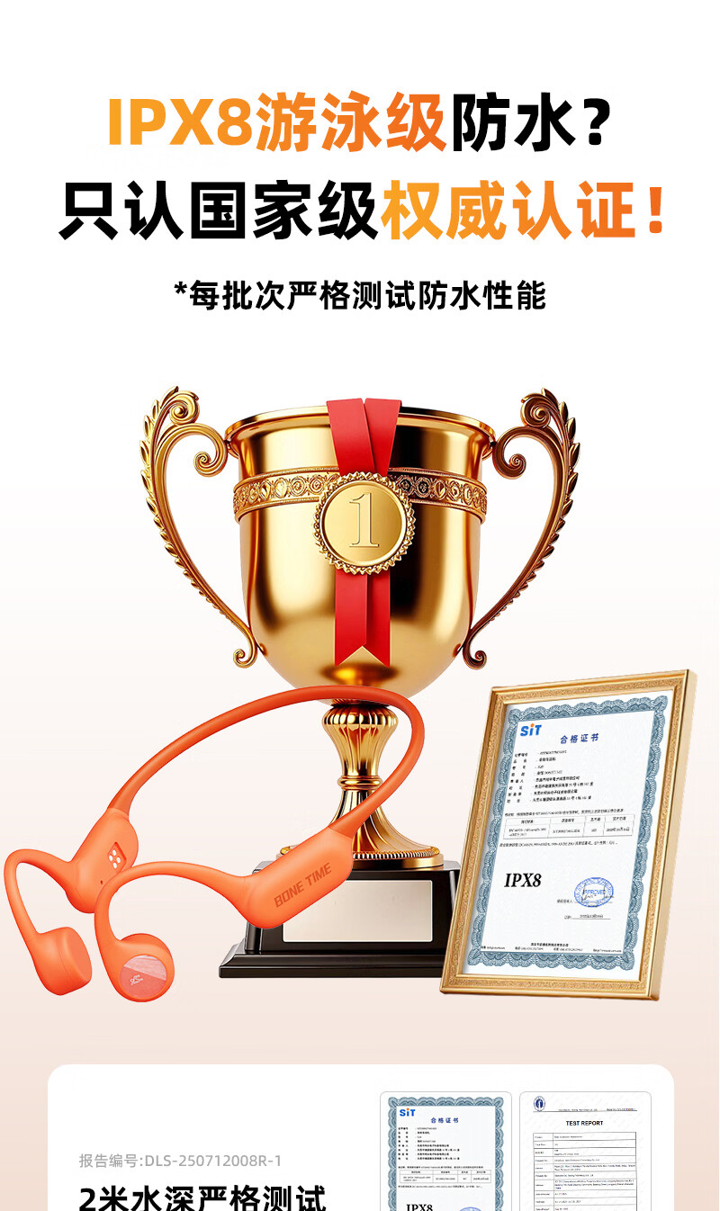 BONETIME【分期免息】骨时X20游泳耳机骨传导IPX8级防水运动自带32G内存耳机跑步骑行长续航蓝牙骨传导耳机 【旗舰版】闪电橙 | 游泳8级防水+32GB内存 赠收纳包+耳塞
