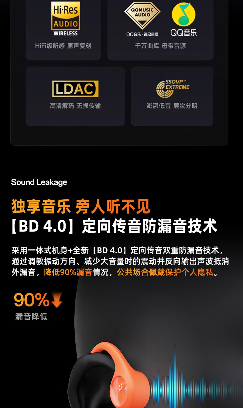弱水时砂OpenFeel【周传雄推荐】蓝牙耳机耳夹式不入耳真无线开放式HIFi气骨传导概念通话降噪挂耳运动跑步