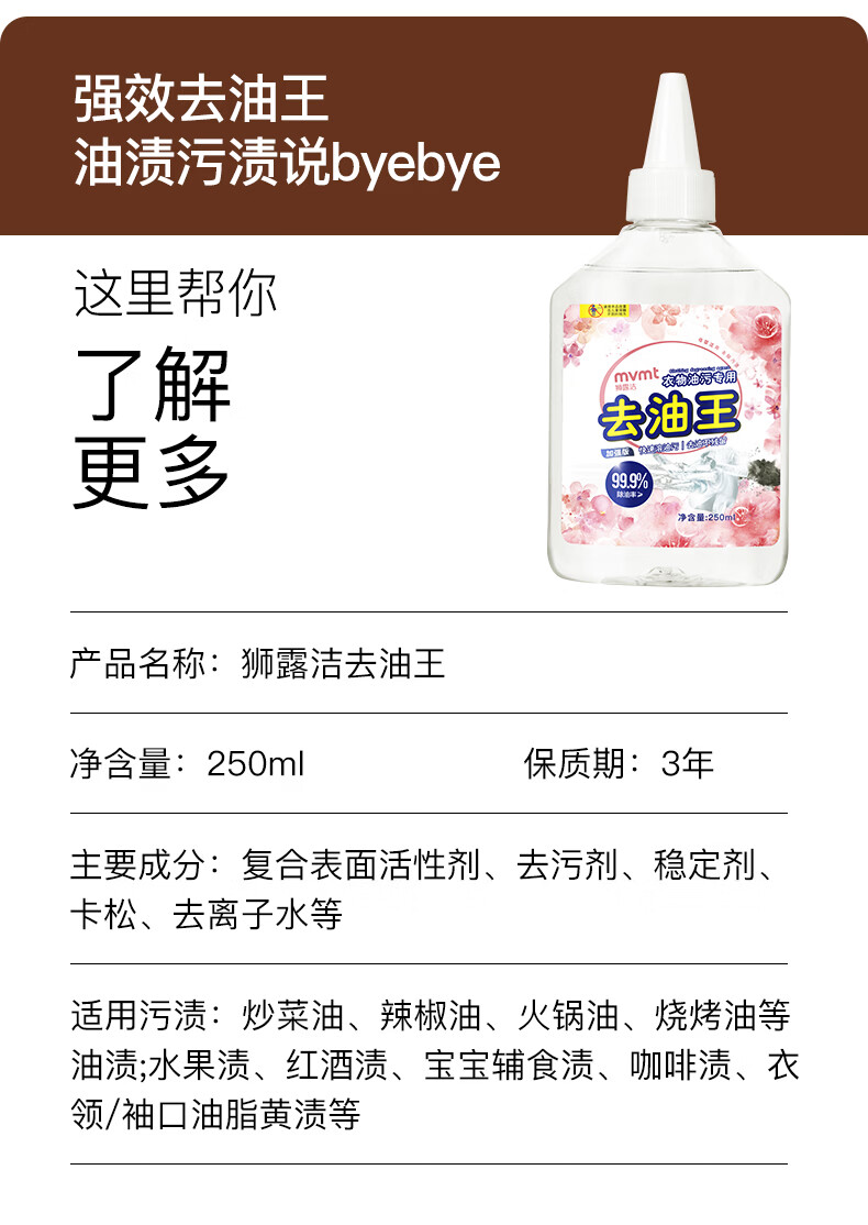 狮露洁去油渍衣服去油王干洗剂洗衣神器衣领净去笔渍渗透剂羽绒服清洗剂 250ml【3瓶装】强力渗透 快速洁净 温和配方