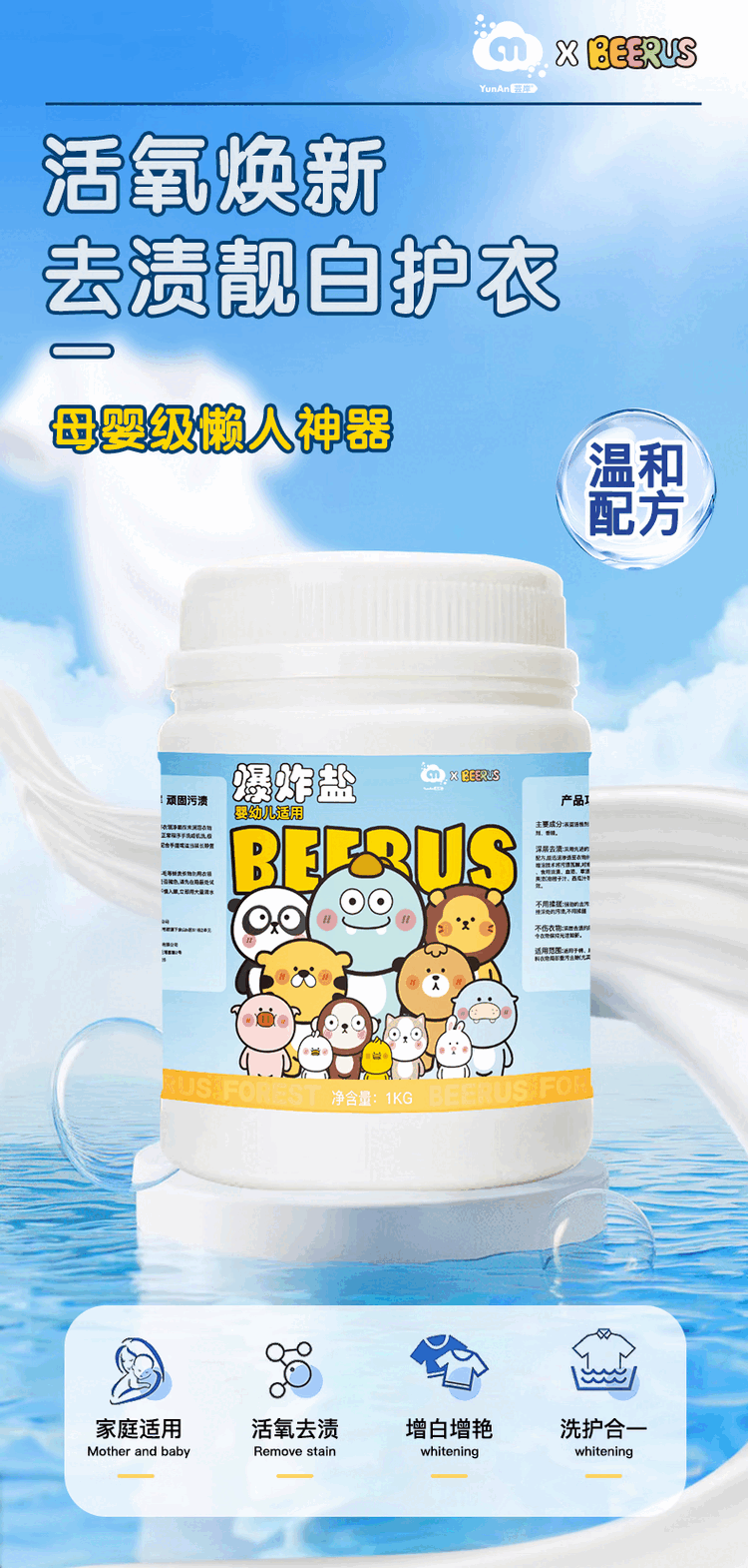 芸岸比鲁斯爆炸盐洗衣服一洗白去污渍强效正品母婴白彩衣鞋通用去霉斑 比鲁斯2桶四斤装品质