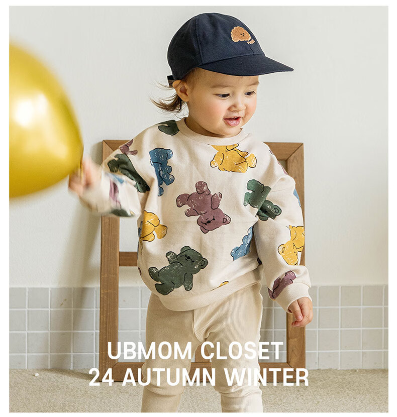 UBMOM韩国进口儿童男女秋季衣服宝宝小熊郁金香长袖长裤套装 米色小熊 110