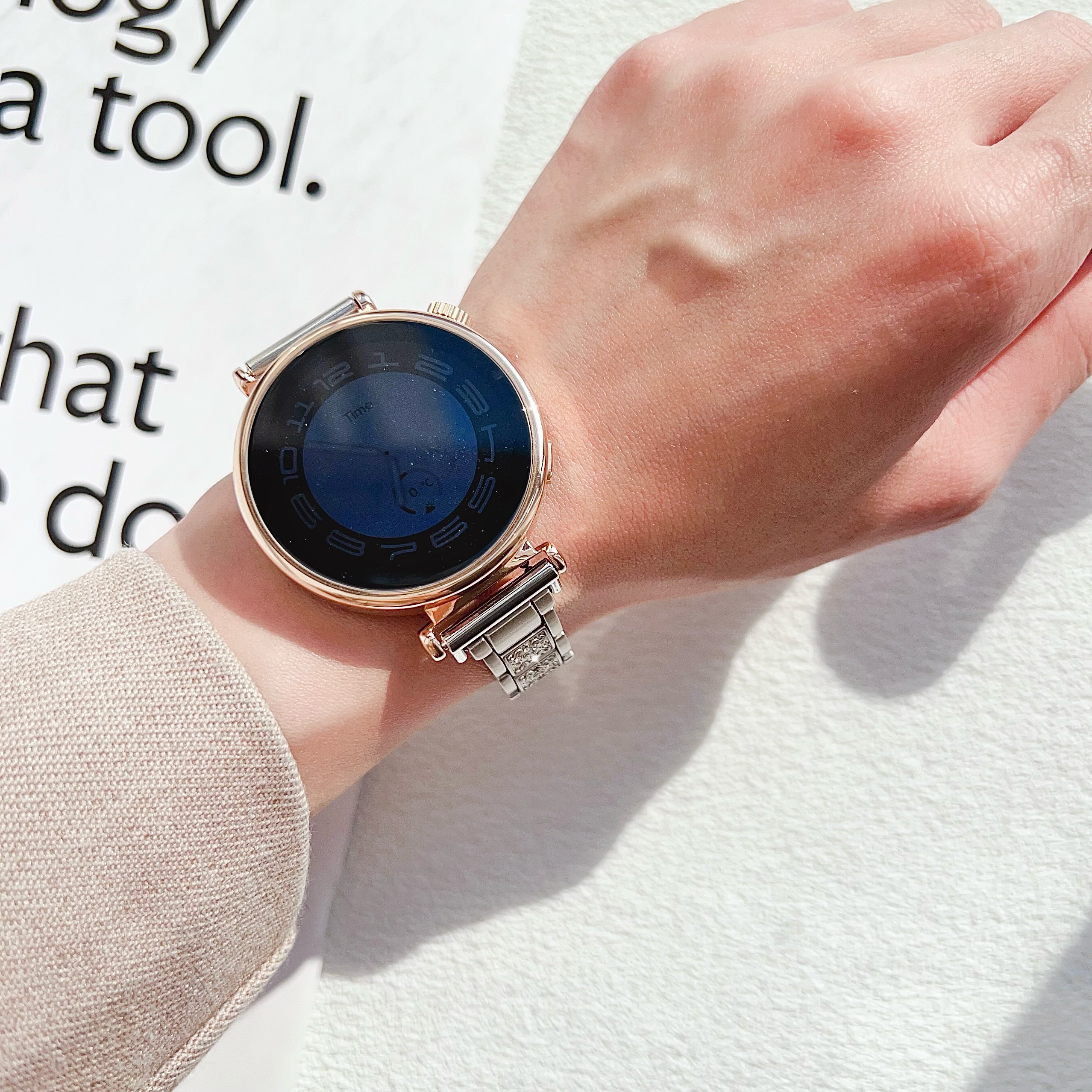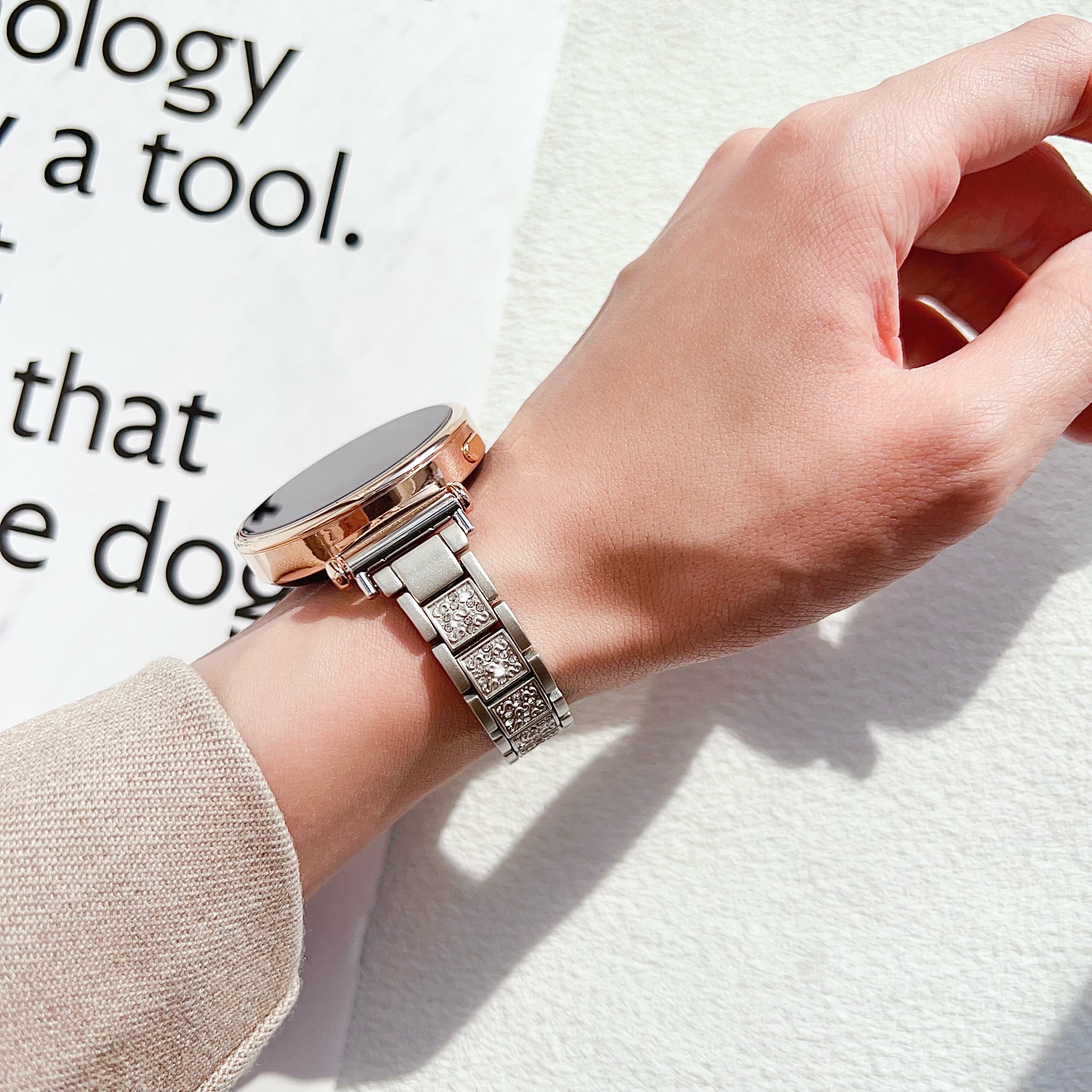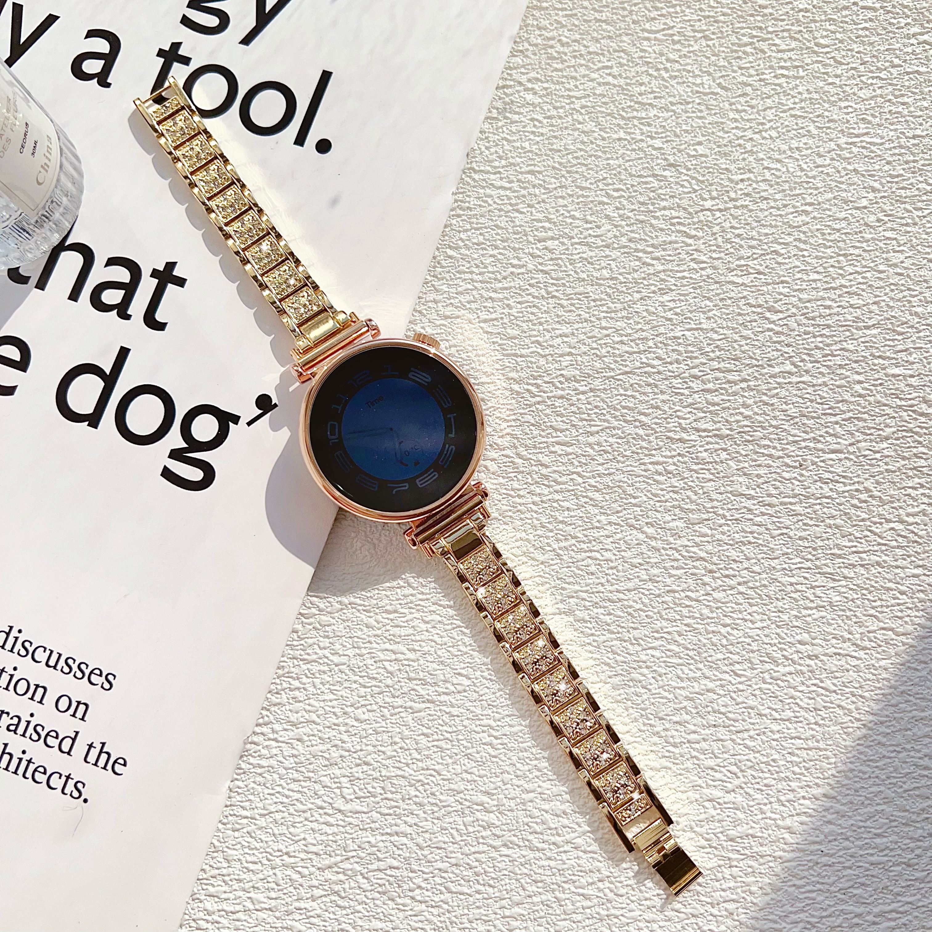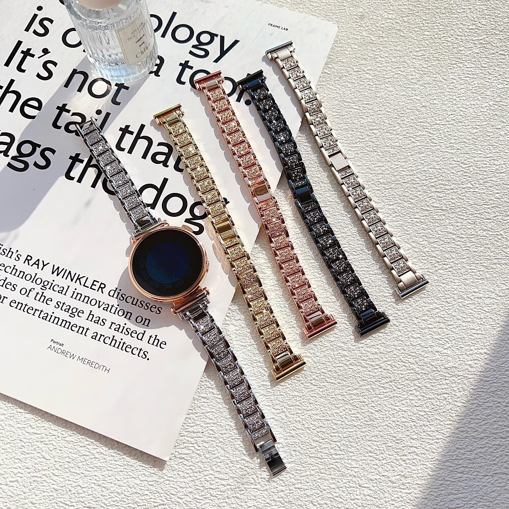 适用华为gt6手表表带GT5pro金属18mm闪钻轻奢满天星gt4表配件41mm手watch5/4pro女GT3腕带透气夏 金色锌合金三株闪钻 华为 GT4/GT5/GT6【41mm】