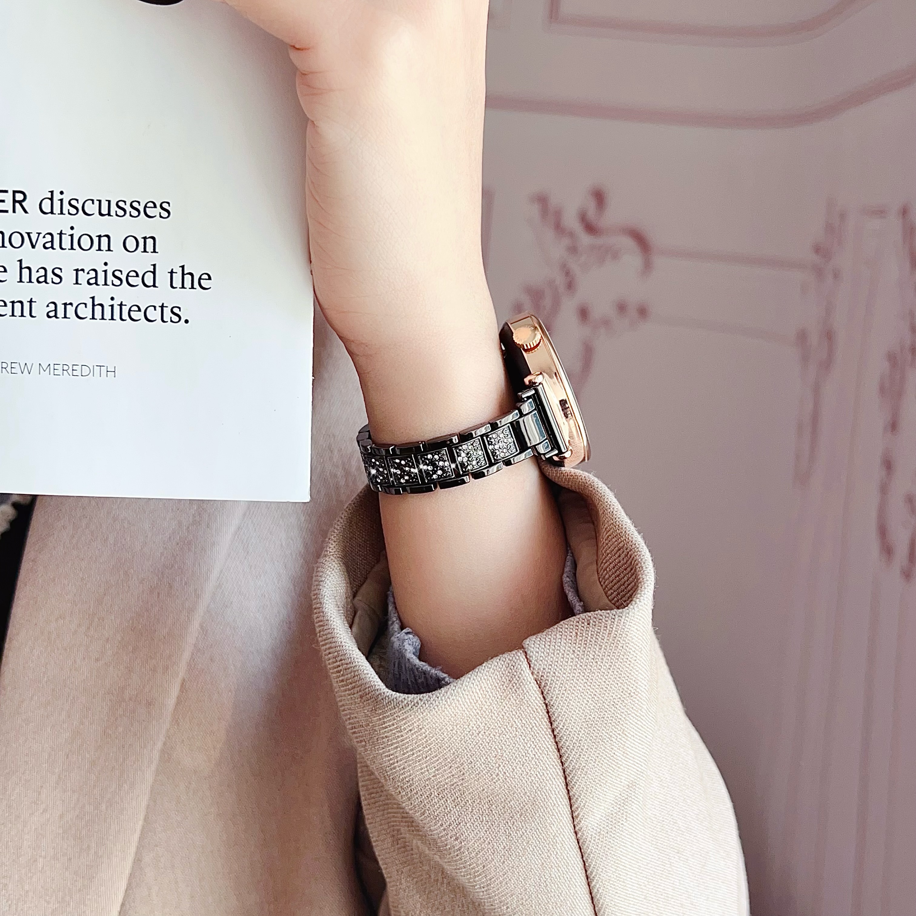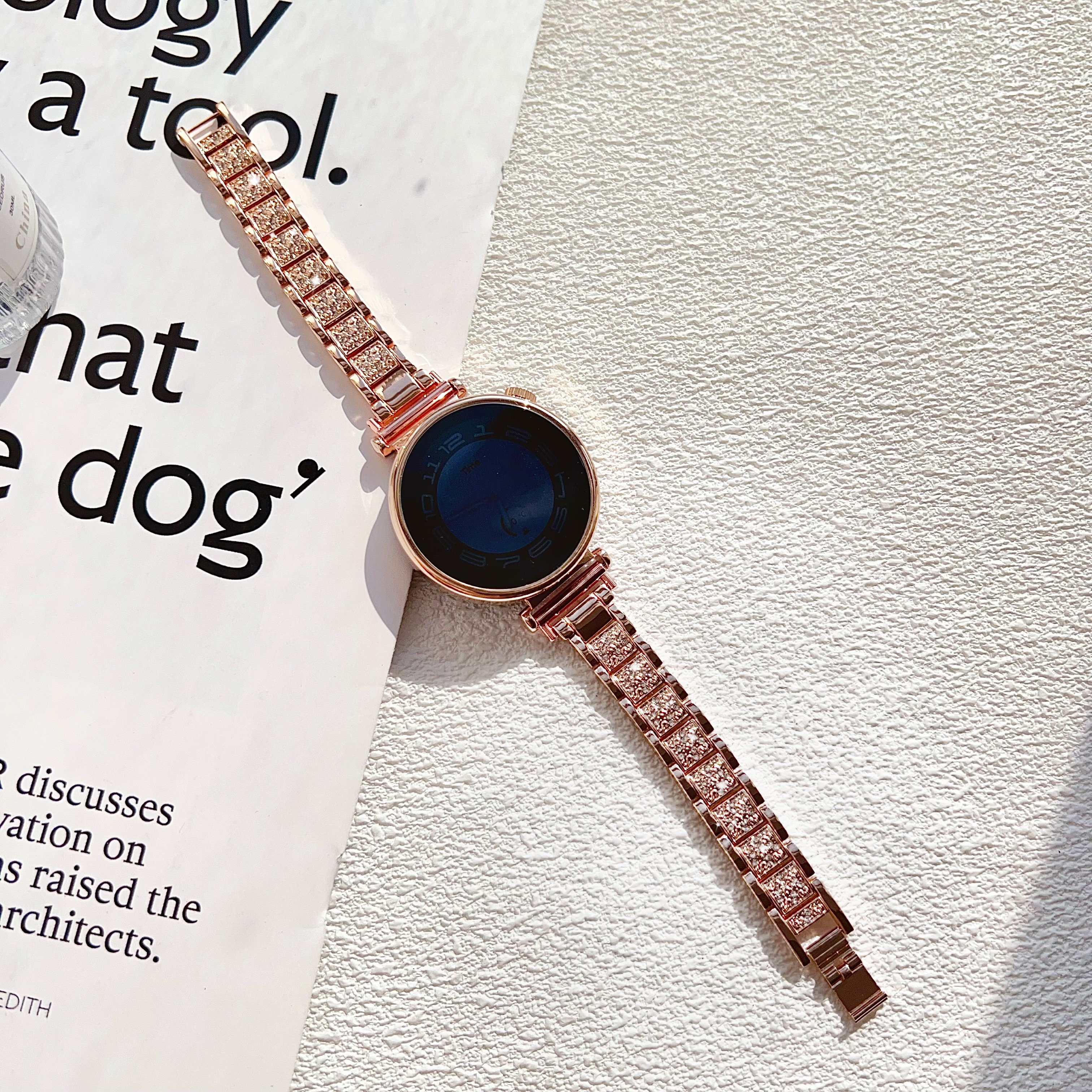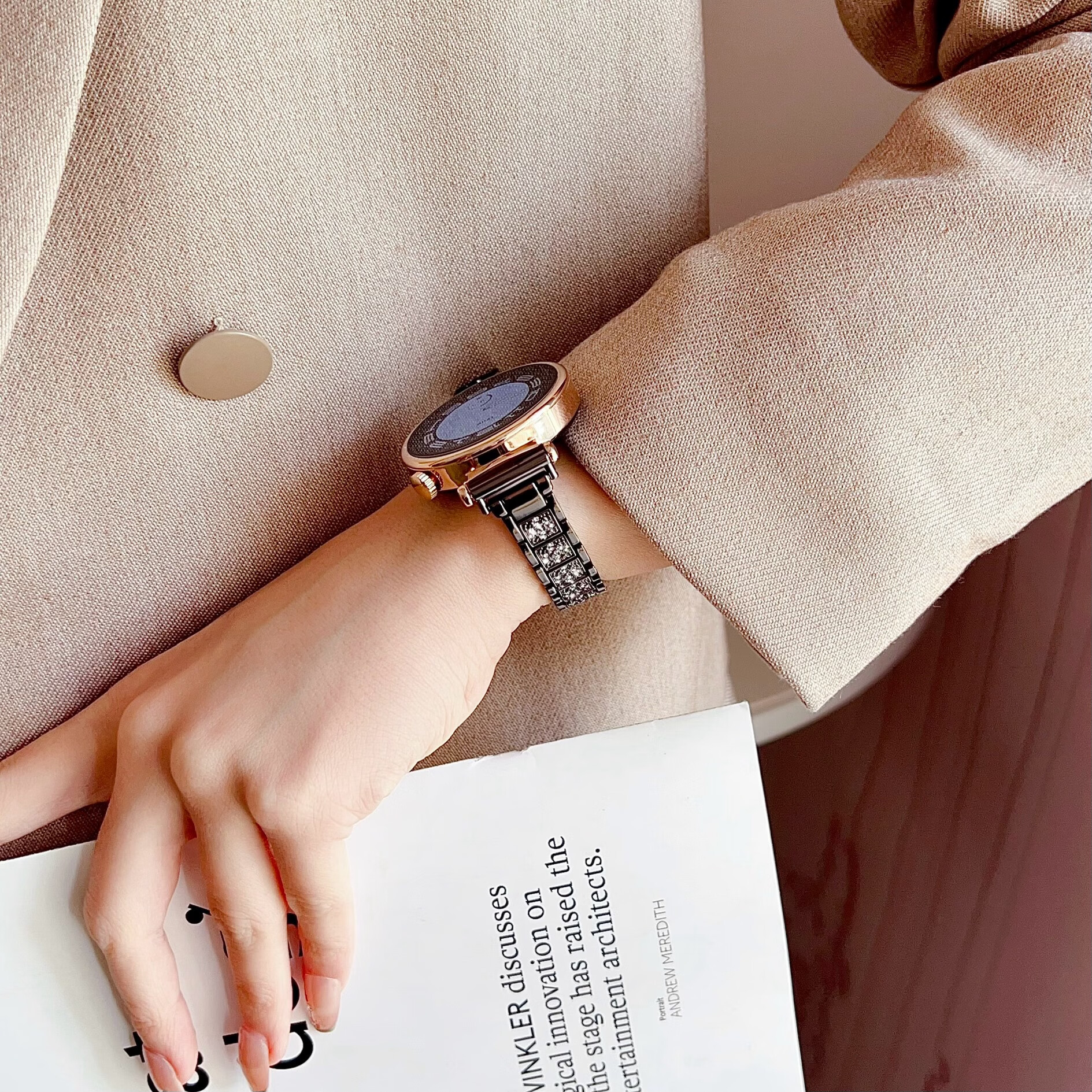 适用华为gt6手表表带GT5pro金属18mm闪钻轻奢满天星gt4表配件41mm手watch5/4pro女GT3腕带透气夏 金色锌合金三株闪钻 华为 GT4/GT5/GT6【41mm】