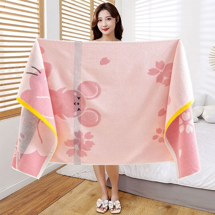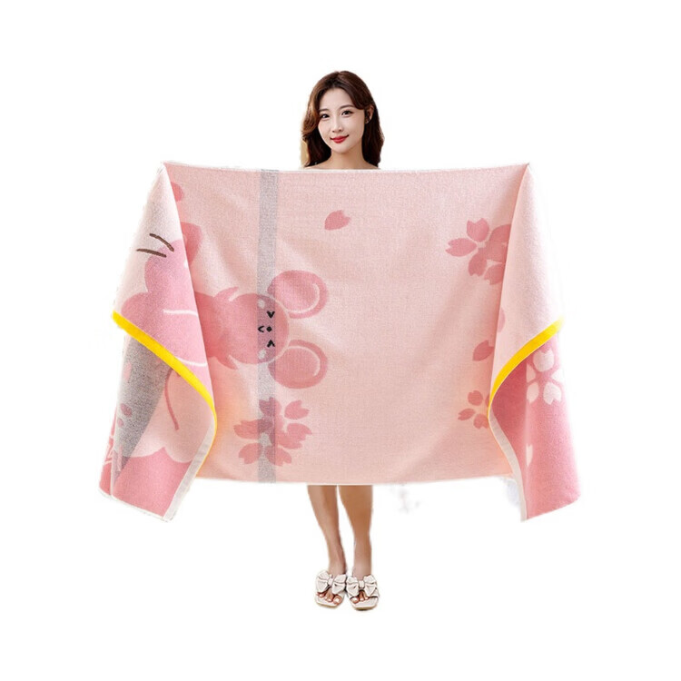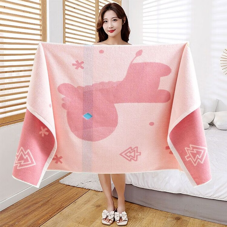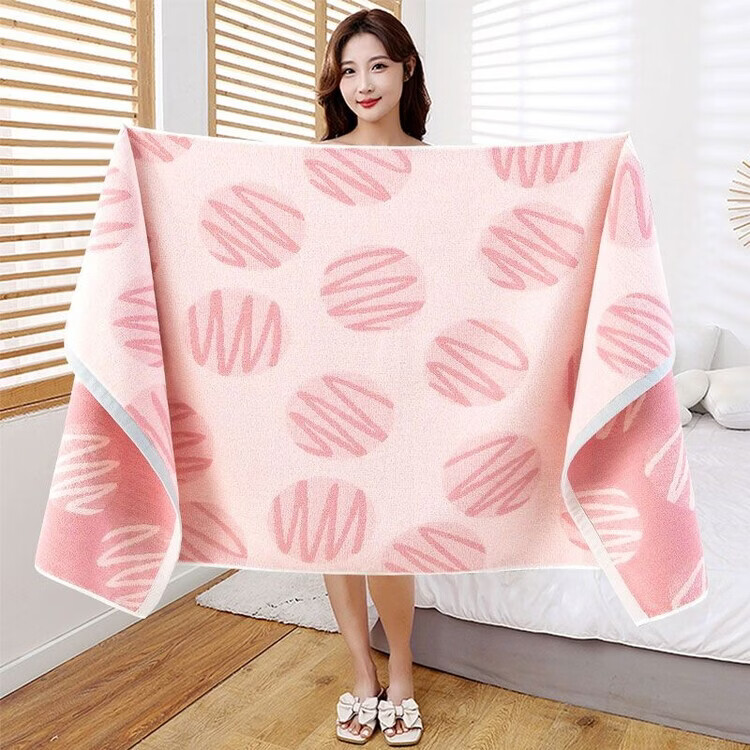 BEYZK纯棉100%浴巾男女专用成人全棉吸水柔软洗澡大毛巾裹巾儿童高档 团团圆圆粉色 百分百纯棉 70*140厘米