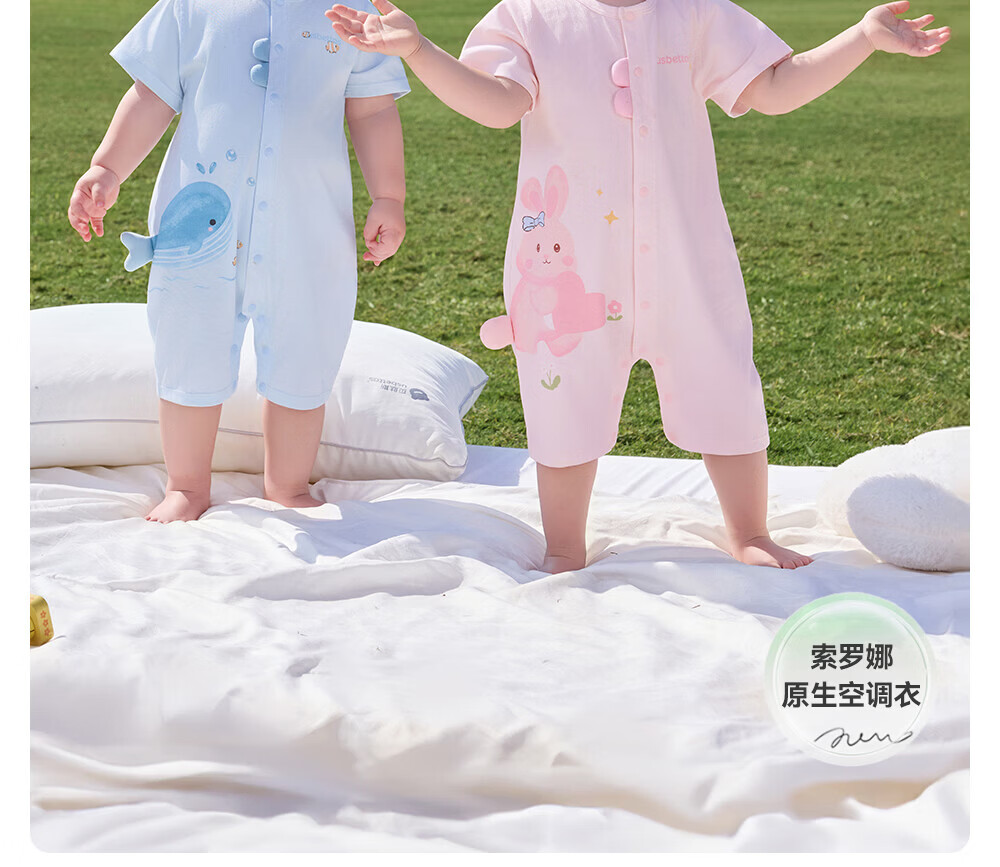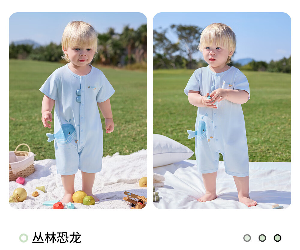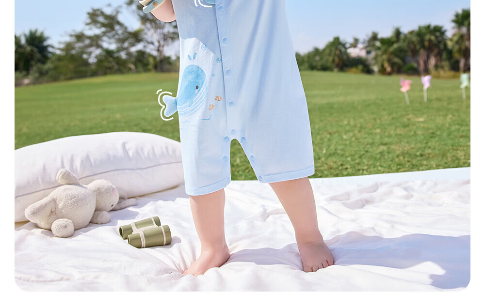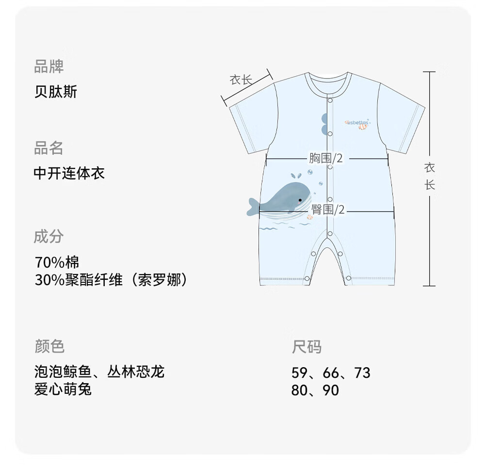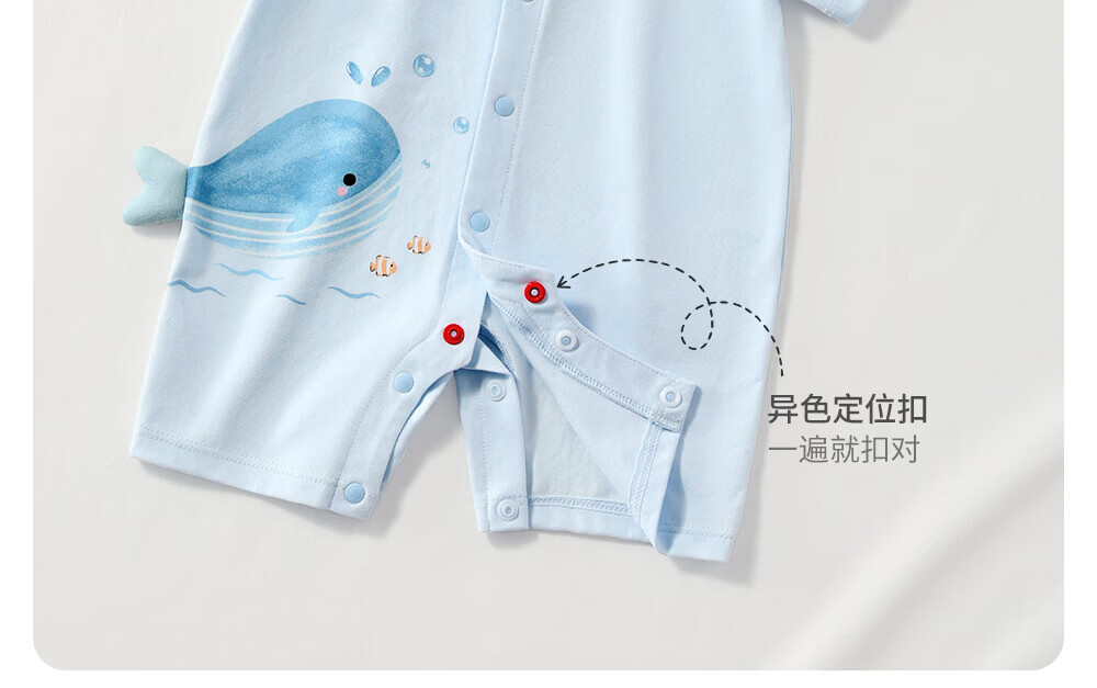 贝肽斯婴儿短袖连体衣夏季薄款婴幼儿男女宝宝衣服外出爬服透气 泡泡鲸鱼 80cm