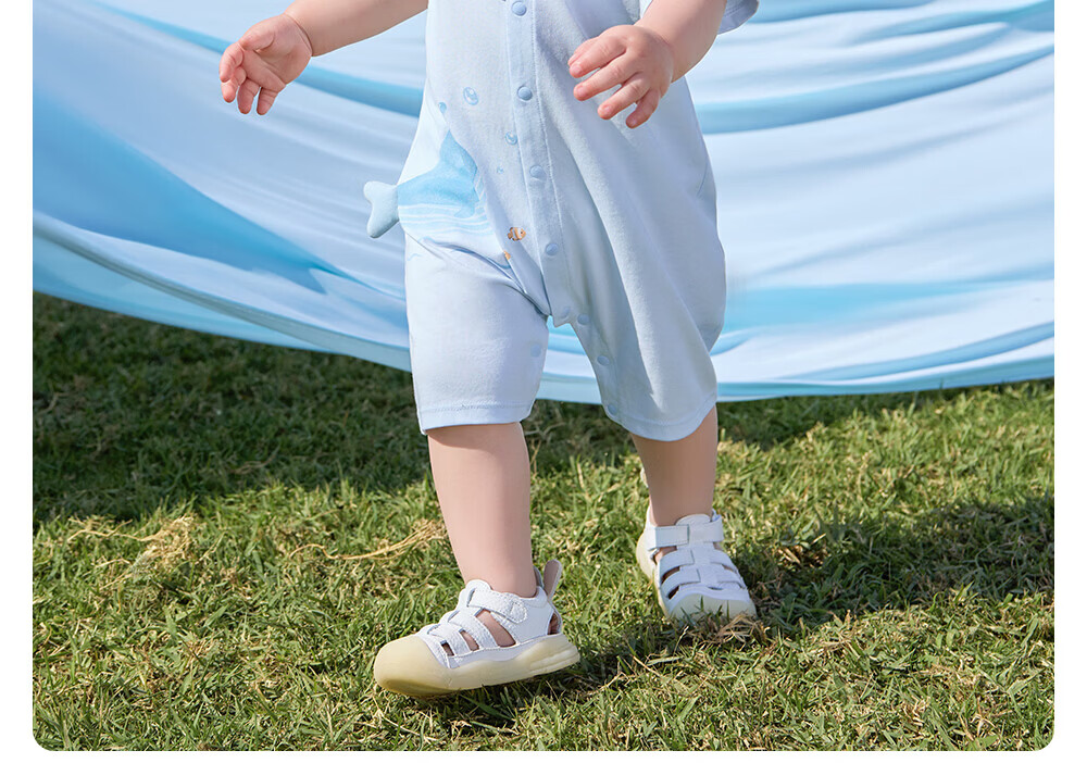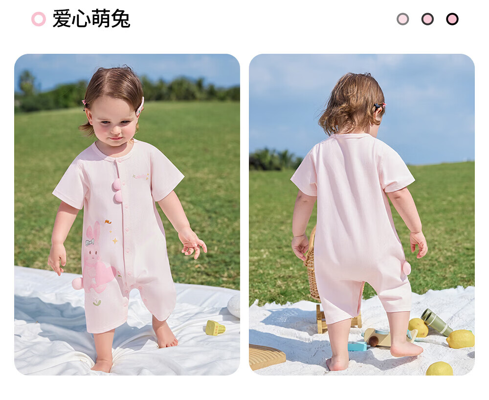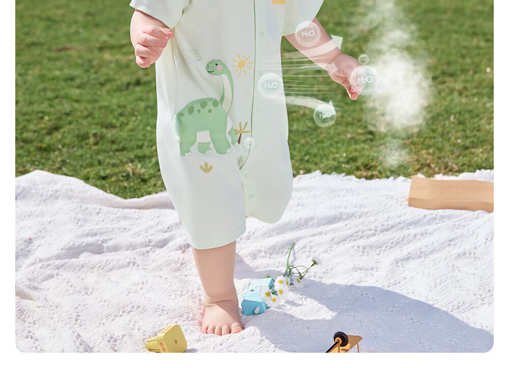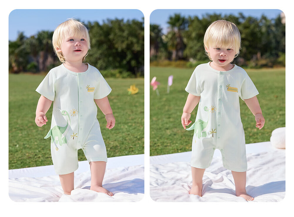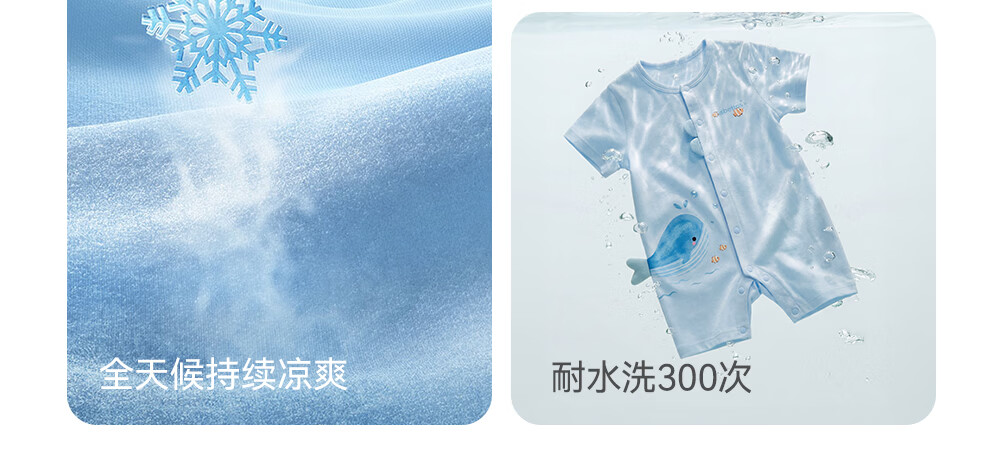 贝肽斯婴儿短袖连体衣夏季薄款婴幼儿男女宝宝衣服外出爬服透气 泡泡鲸鱼 80cm