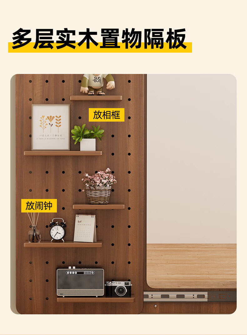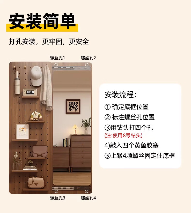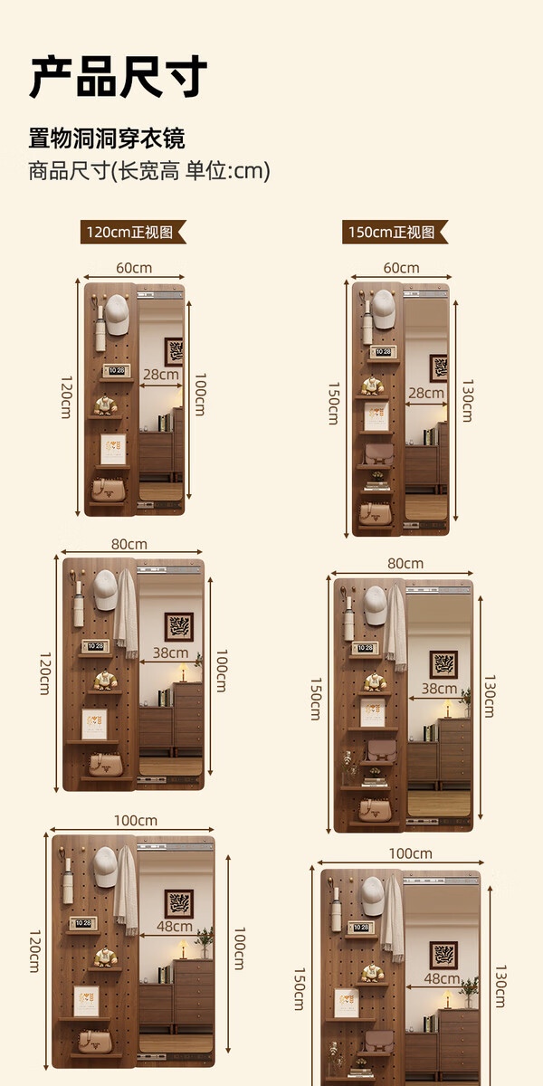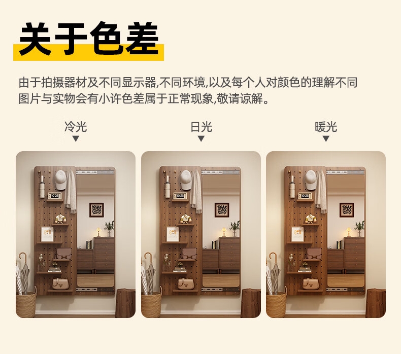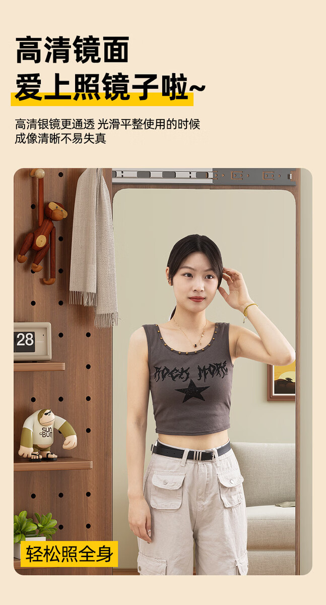 溥畔隐藏式洞洞板穿衣镜推拉全身镜子家用衣帽架一体壁挂墙玄关试衣镜 [上门包安装]宽50X高150cm 原木色 (左右