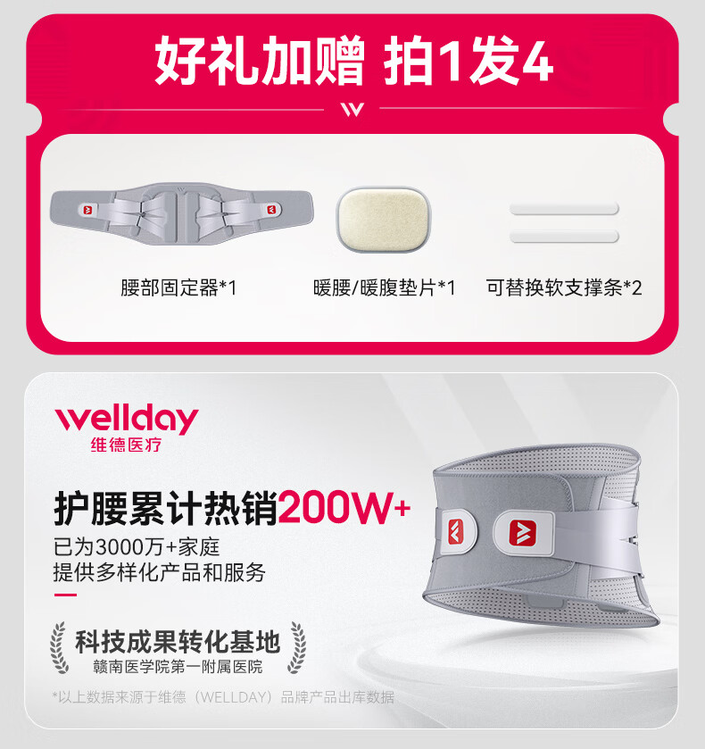 维德(WELLDAY)护腰带医用腰间盘突出腰肌劳损腰部矫形器突出护腰椎疼痛透气保暖 升级门型支撑护腰+气动牵引垫 L码