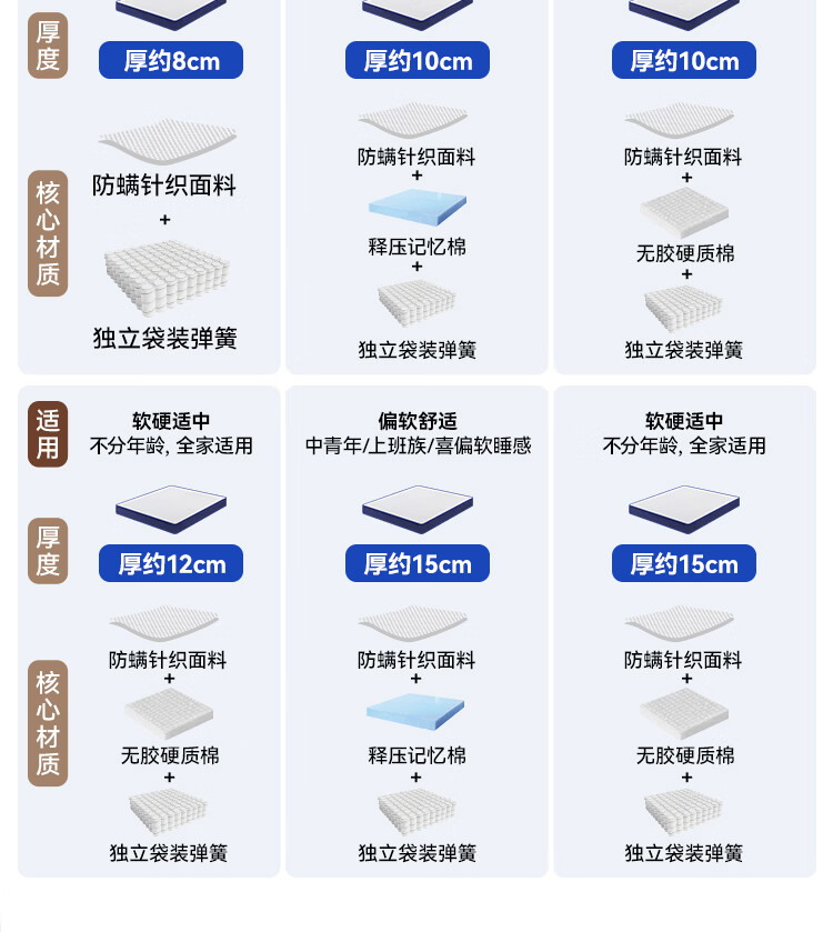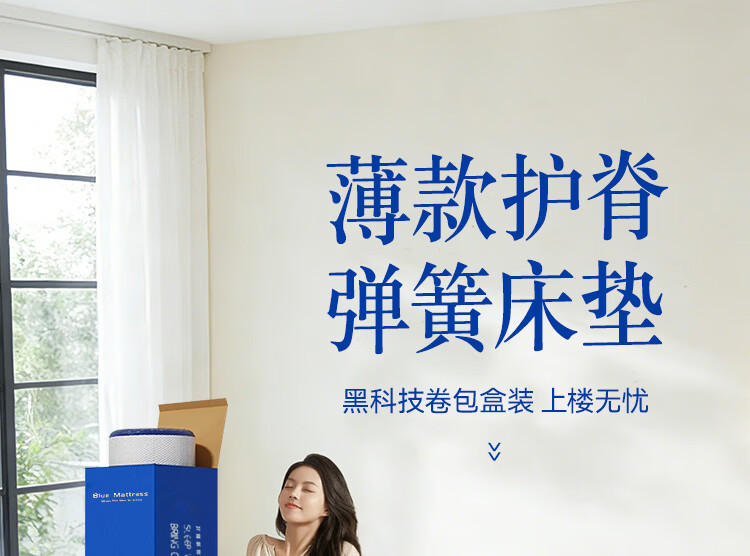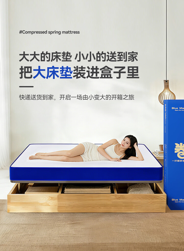 海马席梦思记忆棉盒子床垫1.8x2米压缩卷包独立袋弹簧家用床垫 静音舒睡:厚度15CM 2*2.2米