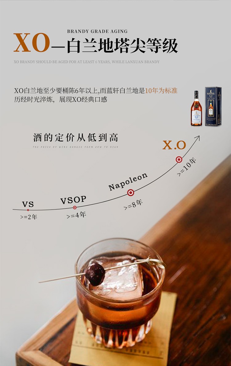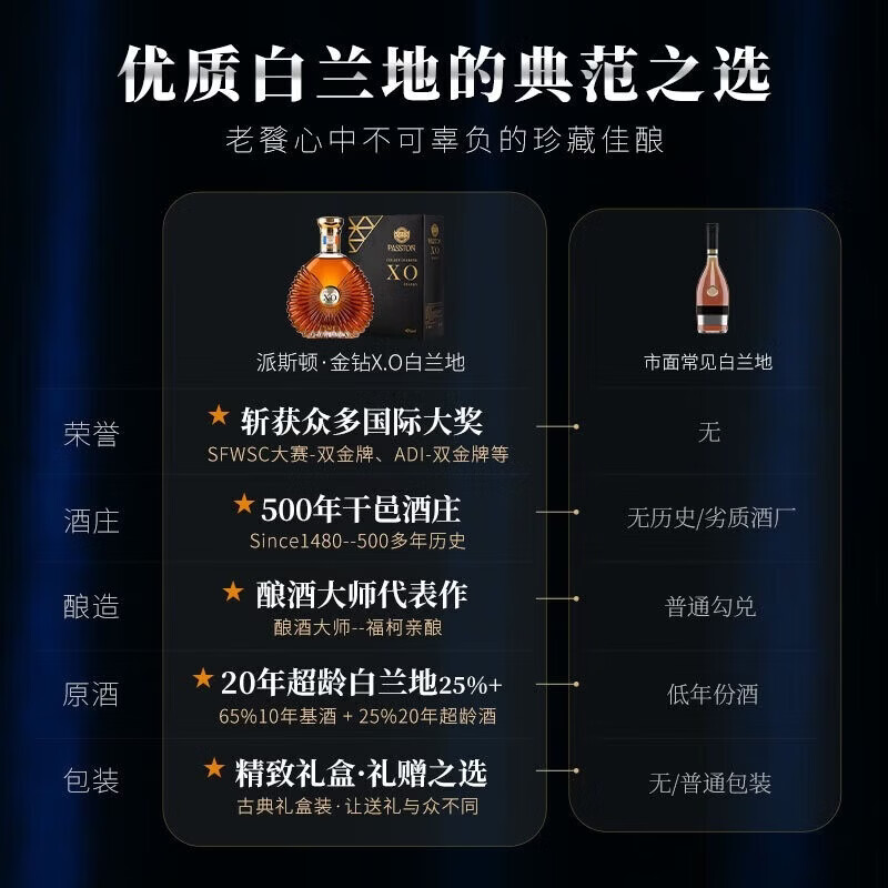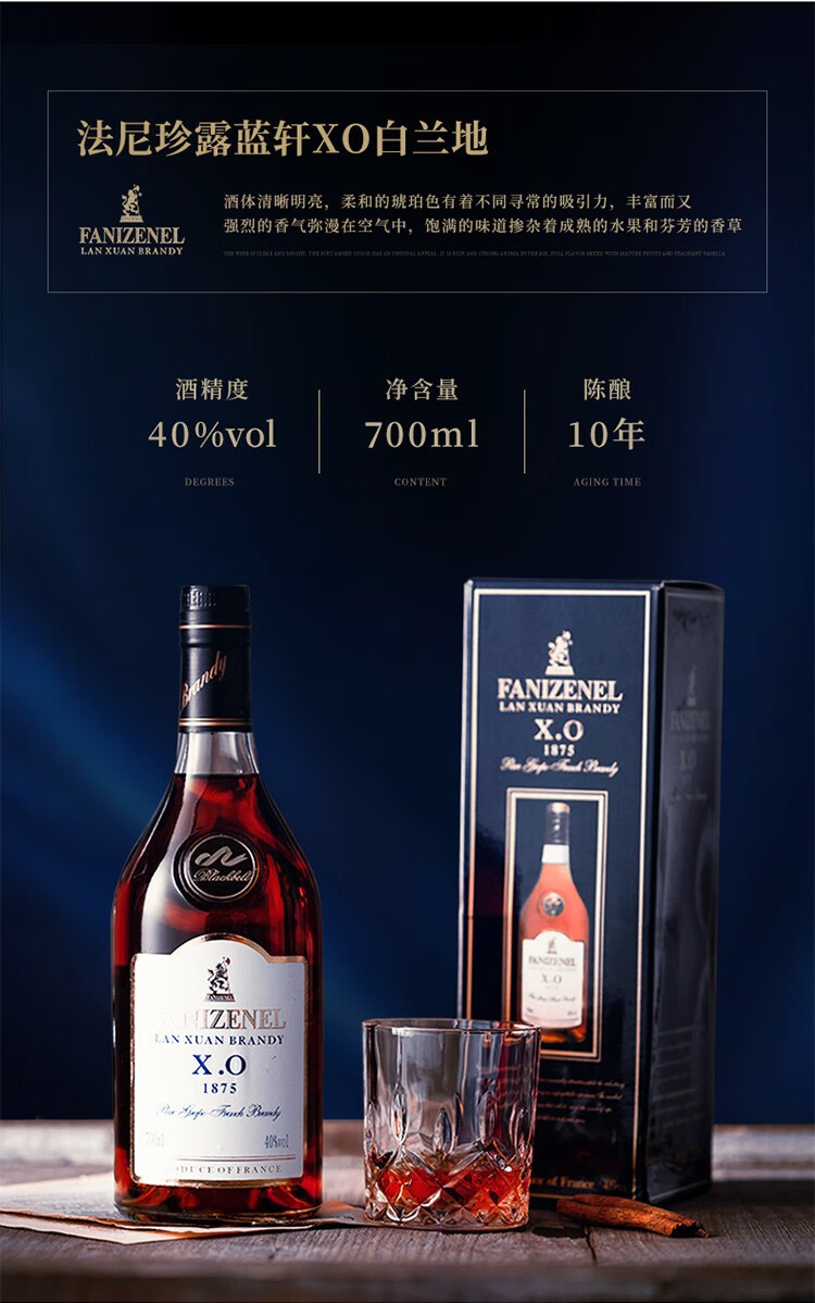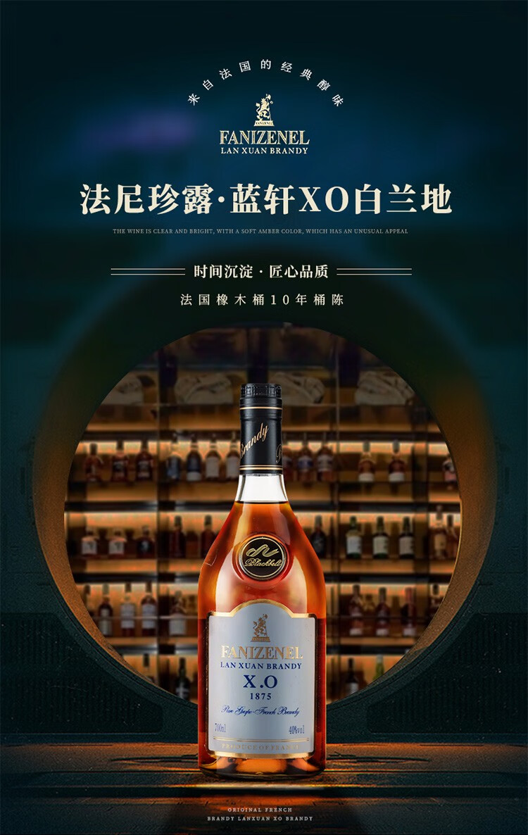 派斯顿法国白兰地XO洋酒微醺便利店调酒原酒进口基酒调配鸡尾酒礼盒装 蓝轩单支装 700mL 1瓶