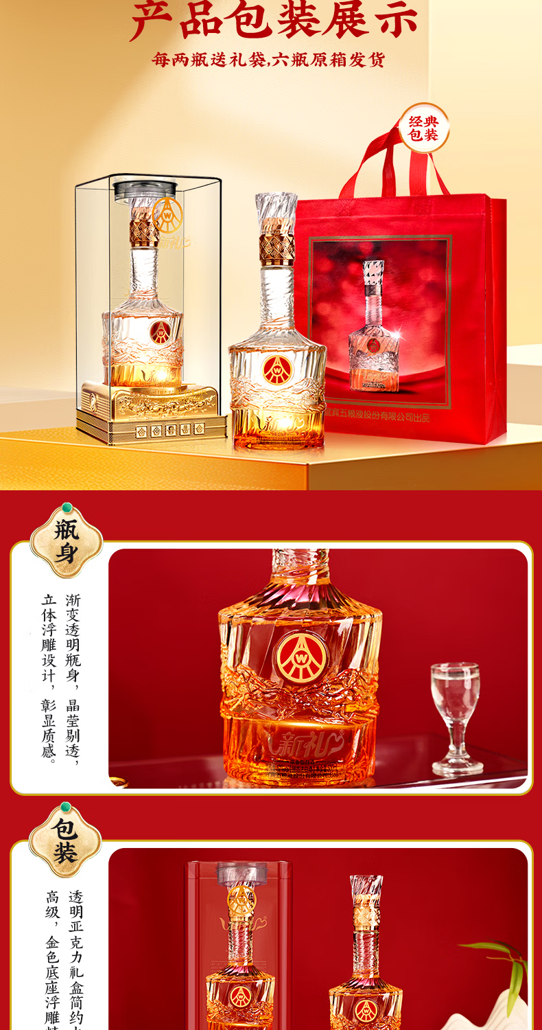 五粮液新礼礼遇祥韵 浓香型白酒 52度 500mL 2瓶