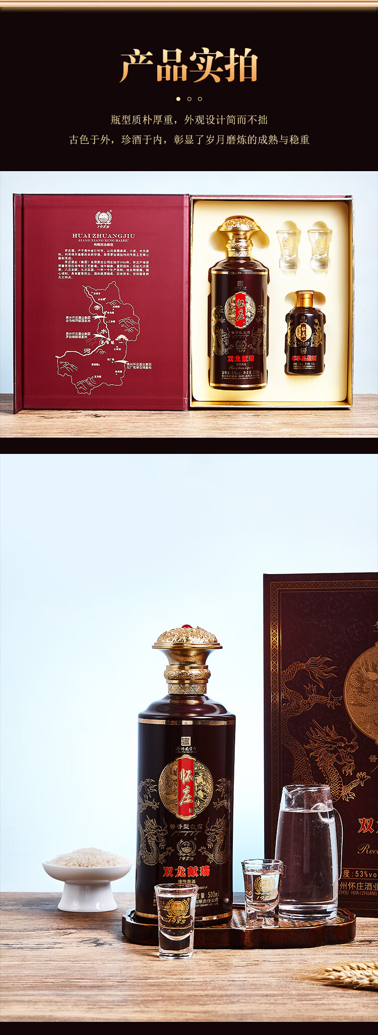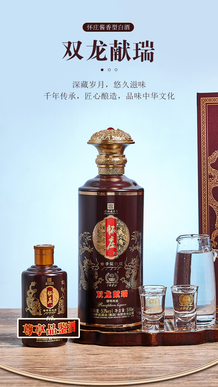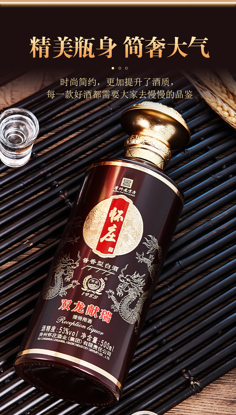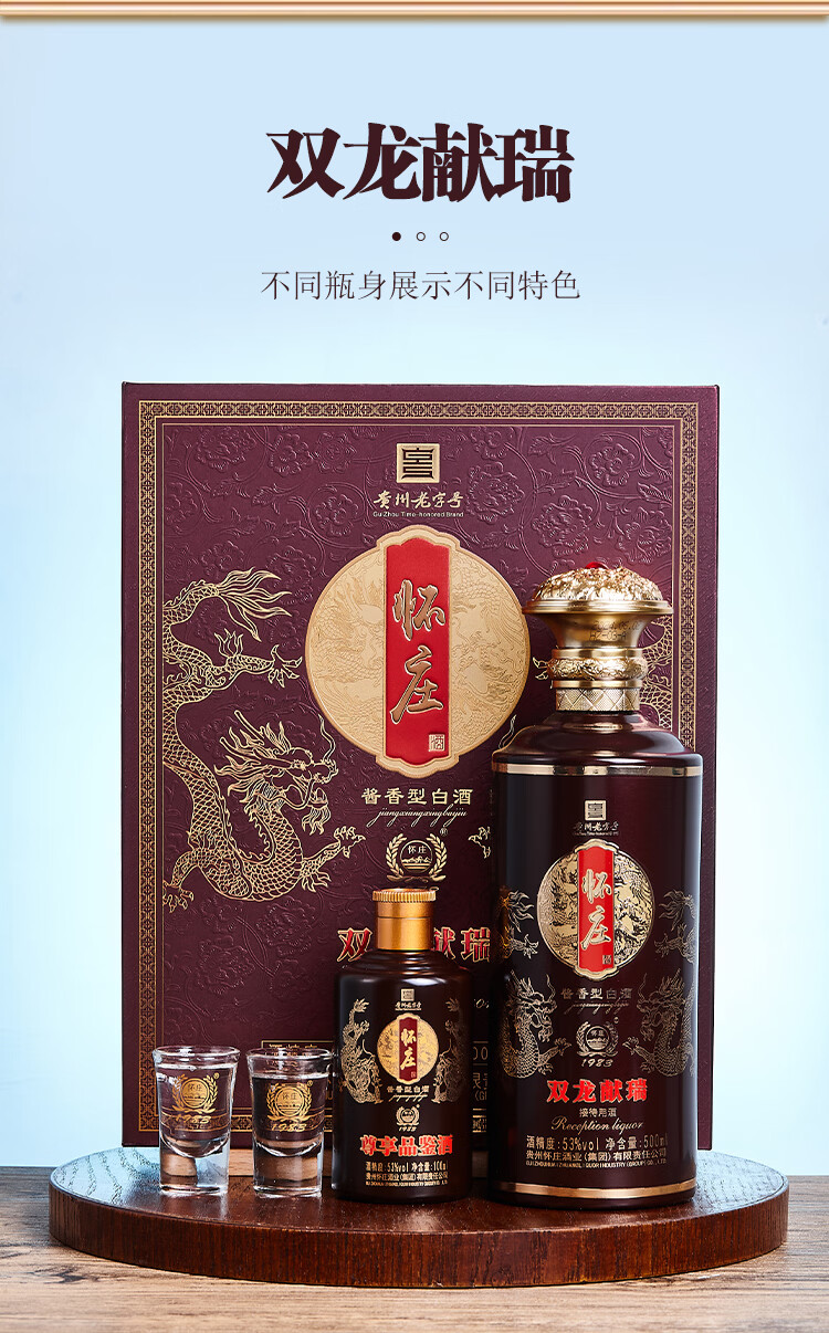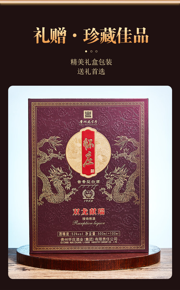 怀庄198353度 双龙献瑞 酱香型白酒礼盒装 商务礼赠 送酒具 53%vol 600mL 4盒