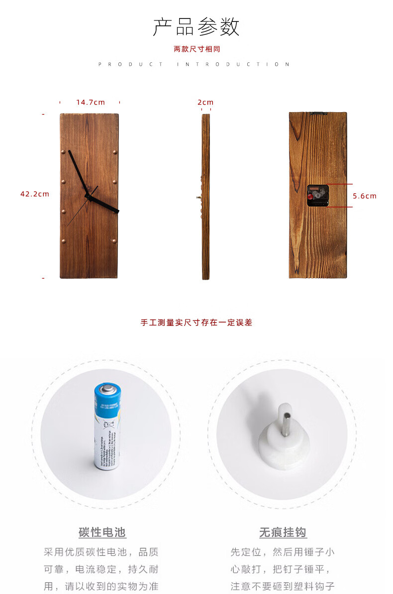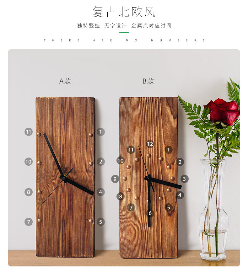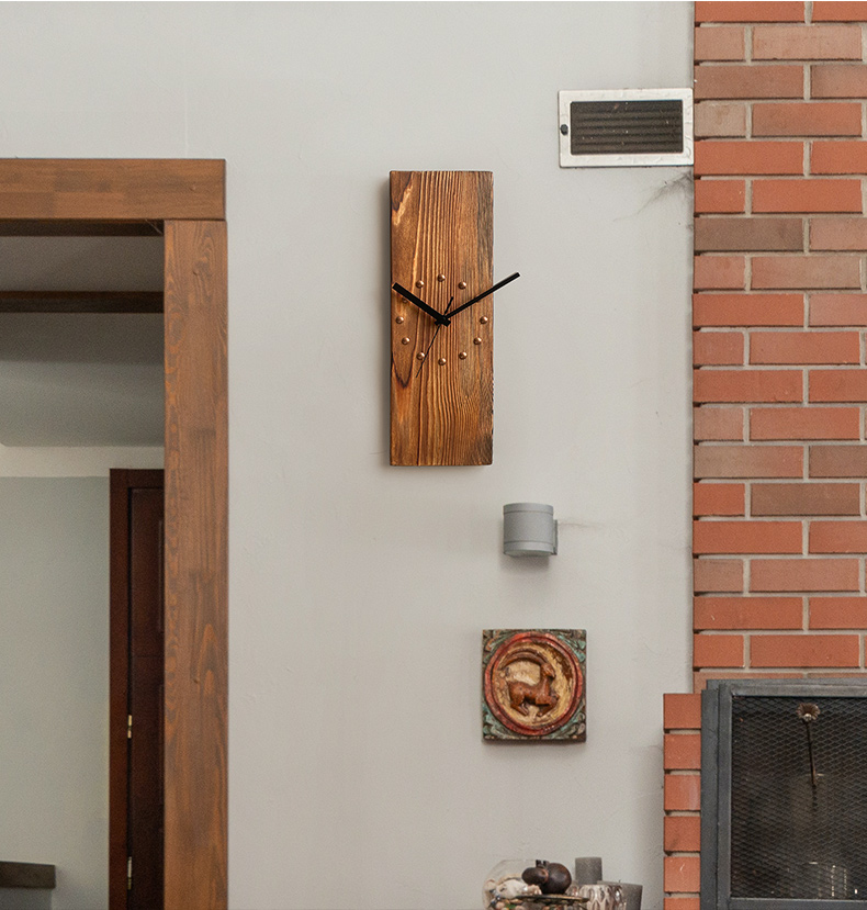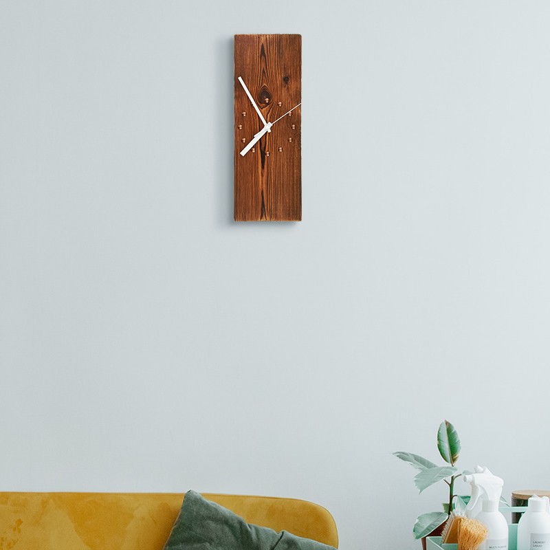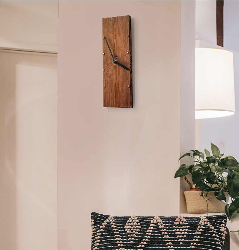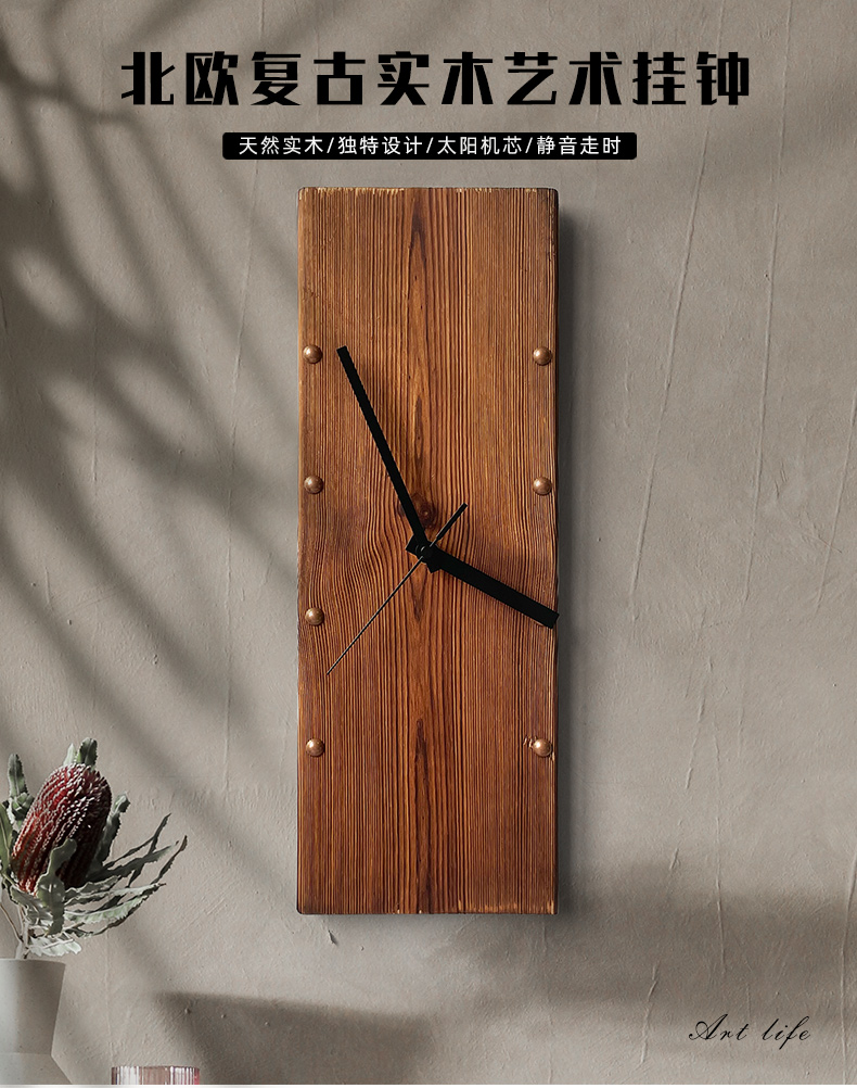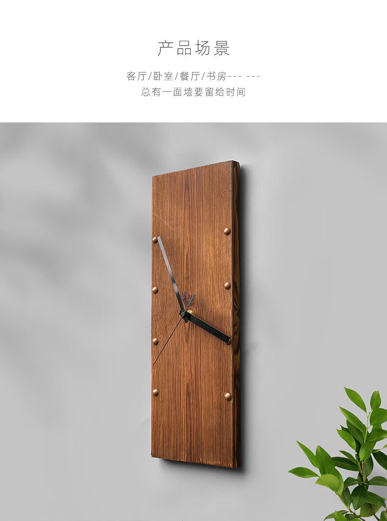KOLYMAX北欧实木方形挂钟创意艺术挂墙钟表客厅电视背景墙挂表桌面时钟 白色指针款 14.7*42.2CM*2CM厚 长方形