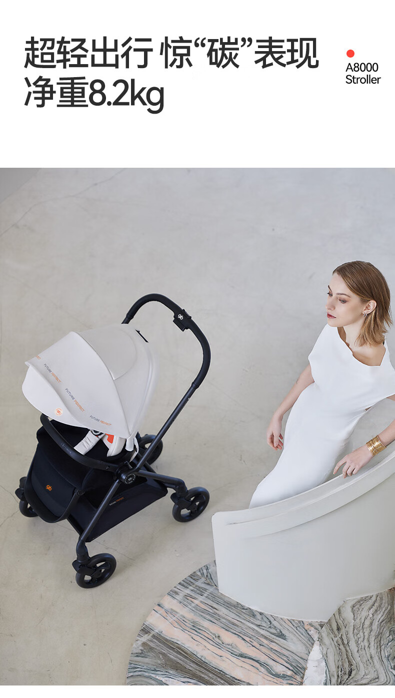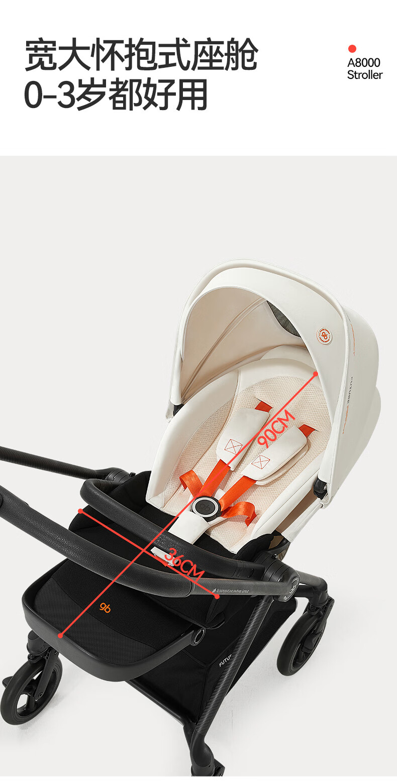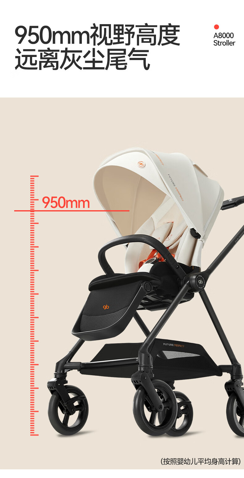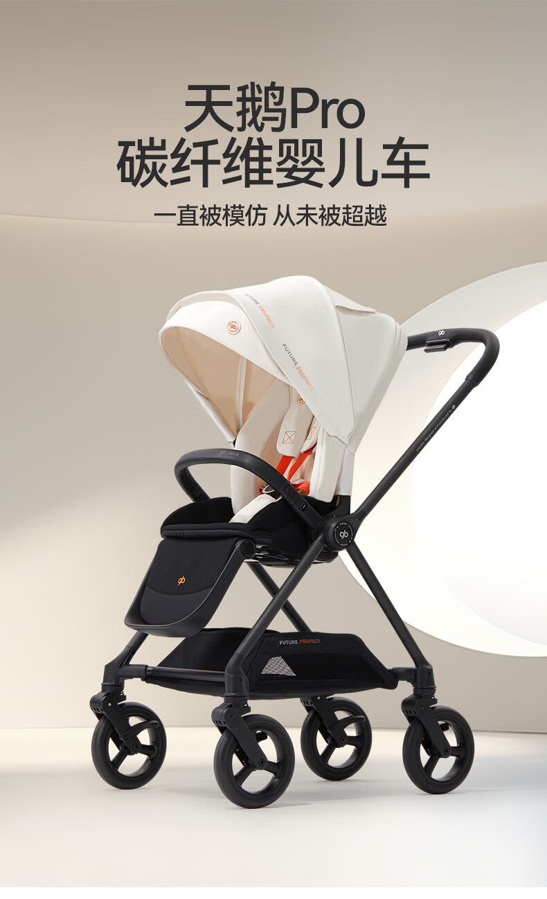 gb好孩子安全婴儿车高景观碳纤维四轮万向双向遛娃推车天鹅proA8000 奶昔白 天鹅Pro