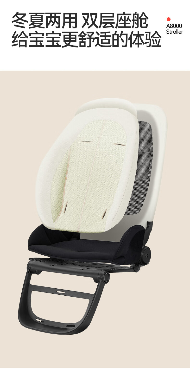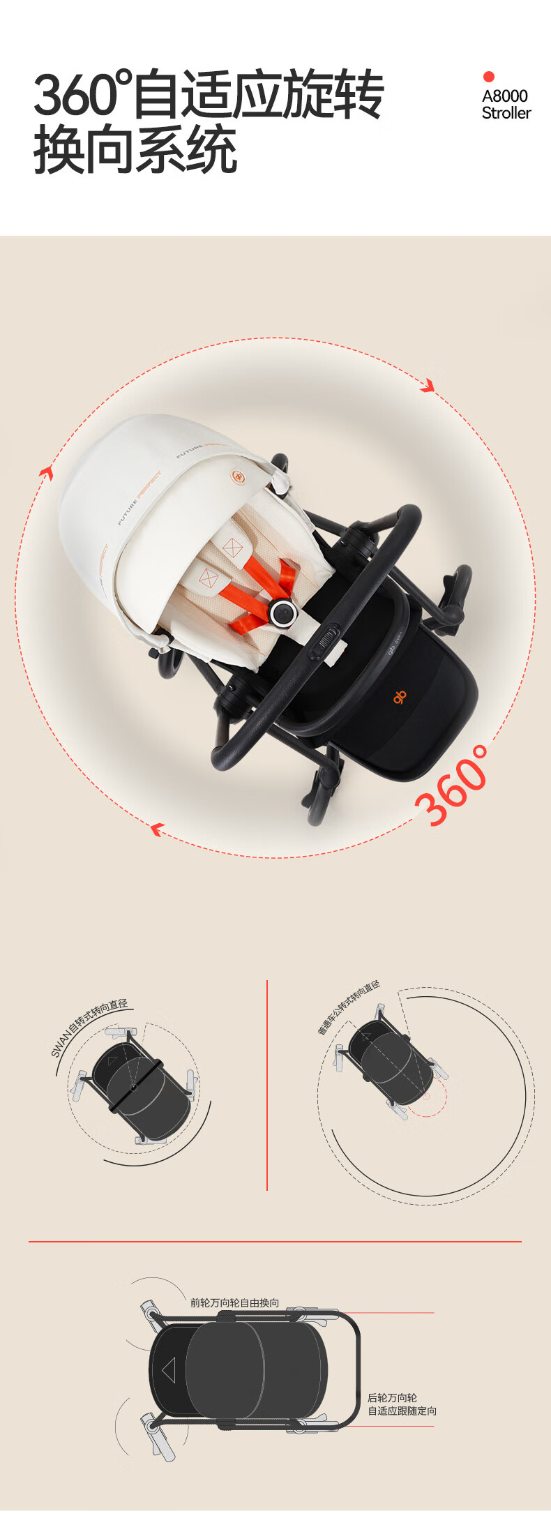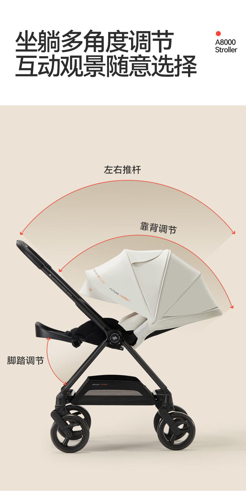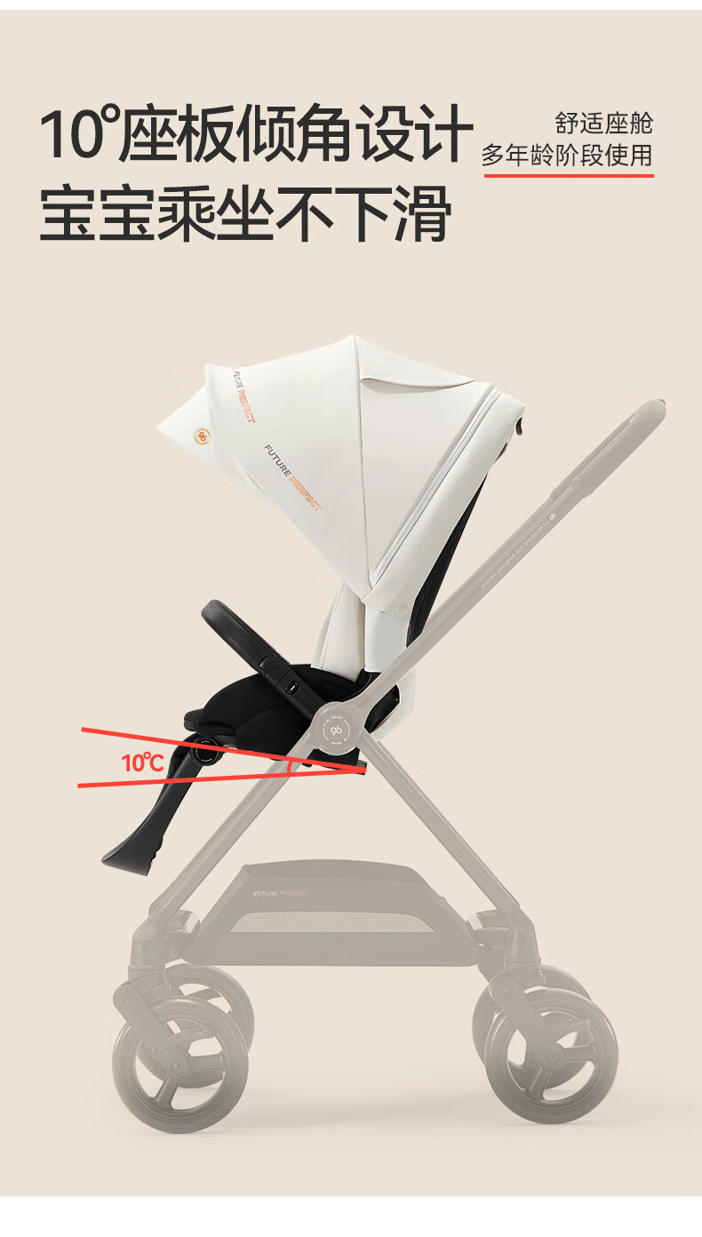 gb好孩子安全婴儿车高景观碳纤维四轮万向双向遛娃推车天鹅proA8000 奶昔白 天鹅Pro