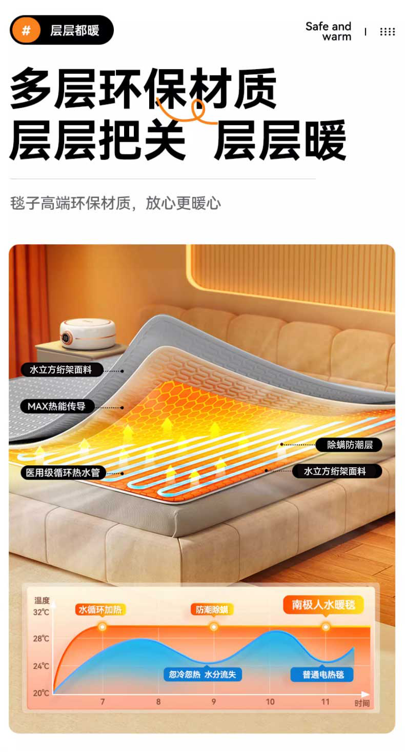 南极人水暖电热毯双单人恒温水循环除螨静音家炕用水暖电褥子正品水暖毯 镇店旗舰【语音智控款+灰色毯】手机控制+直流变频 180cm*120cm 单人毯(±5cm)