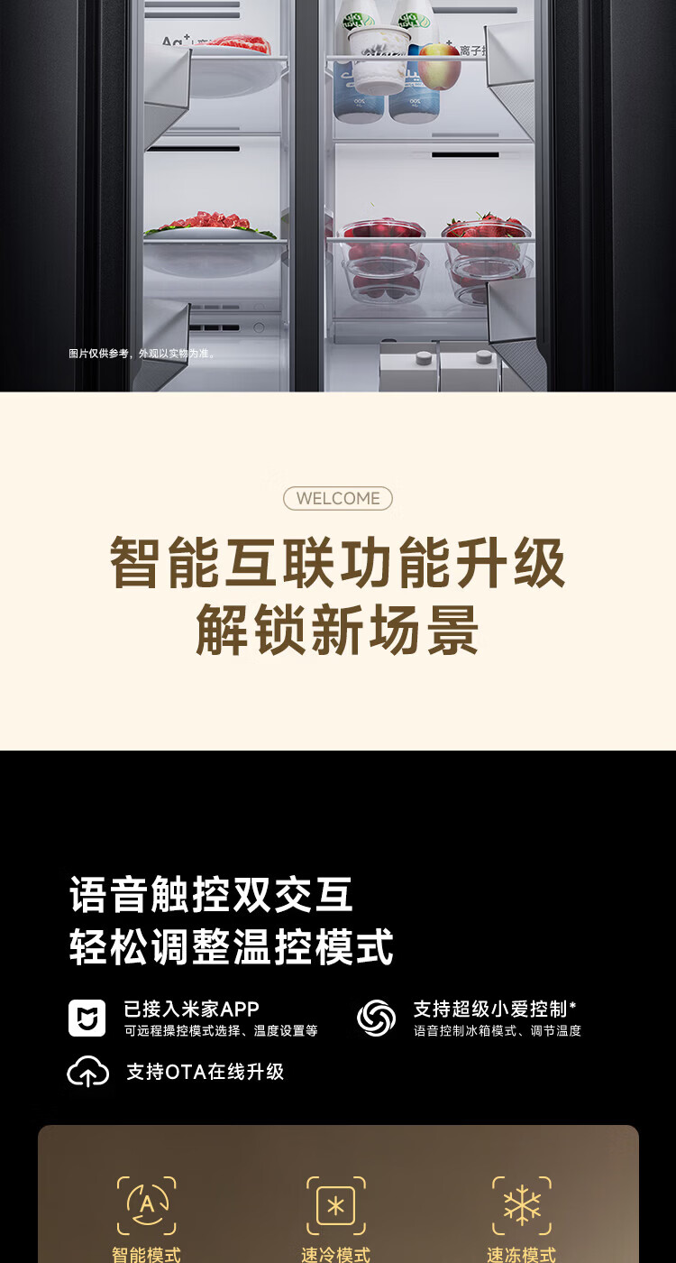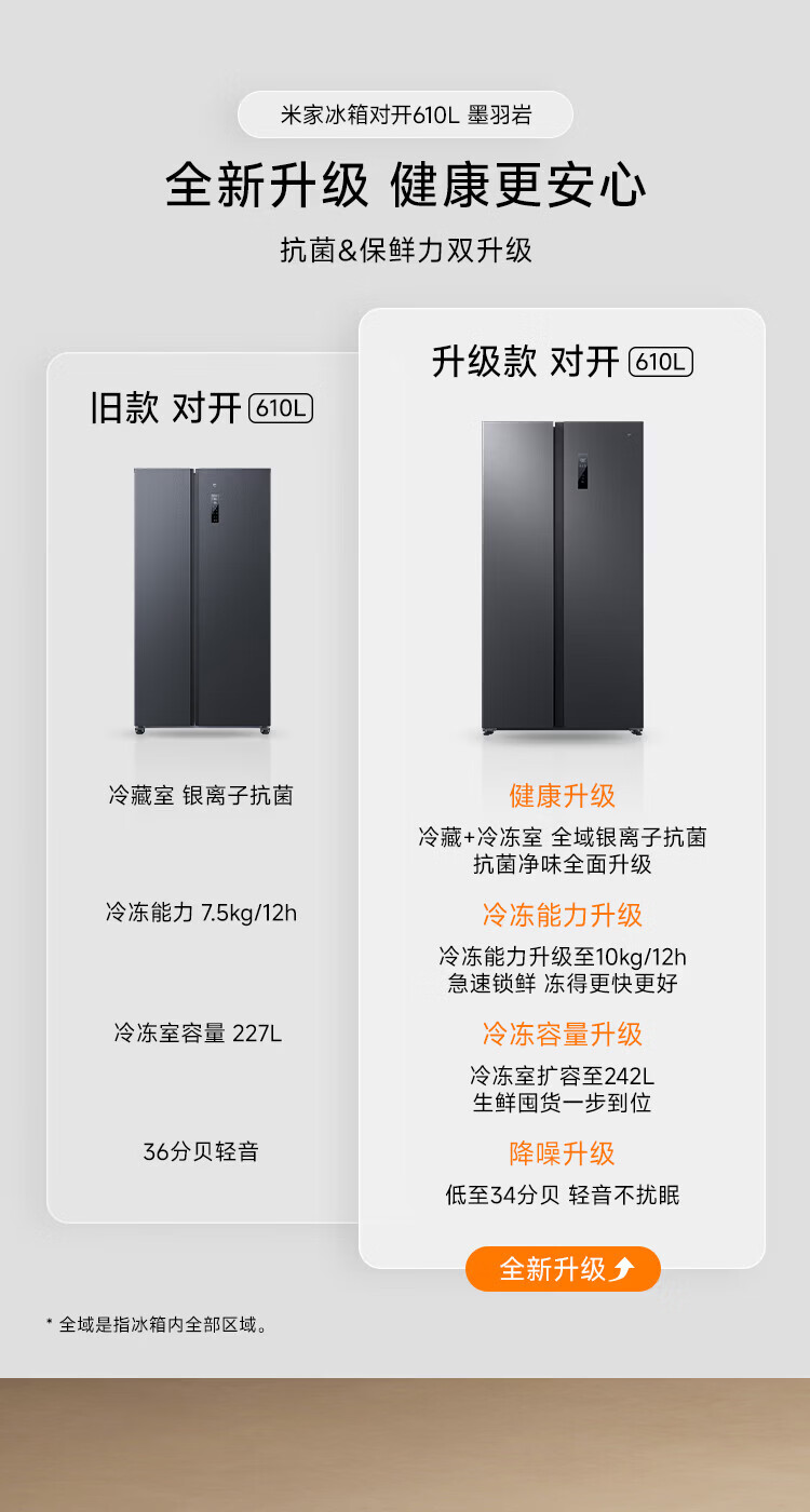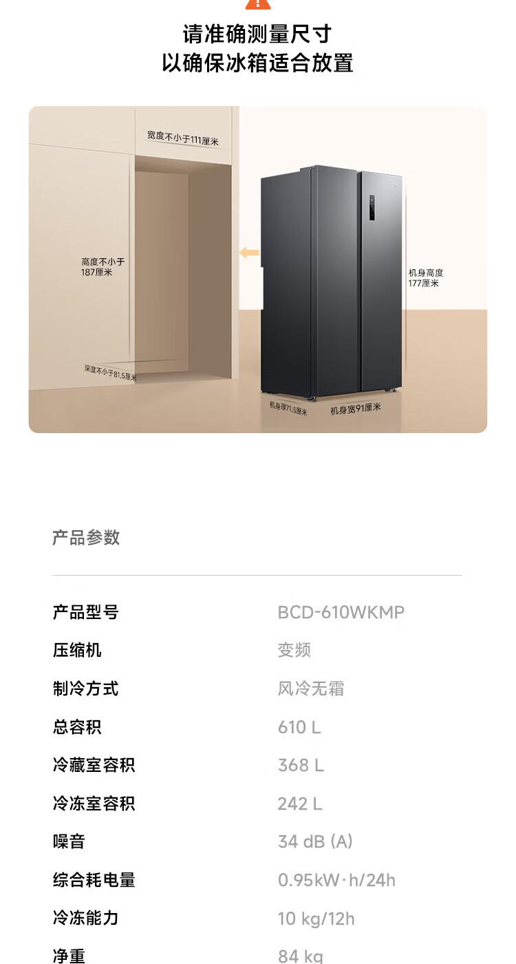 米家小米冰箱对开门610L大容量节能省电风冷无霜一级能效BCD-610WKMP米家冰箱对开门610【升级款】 610L对开门 新款