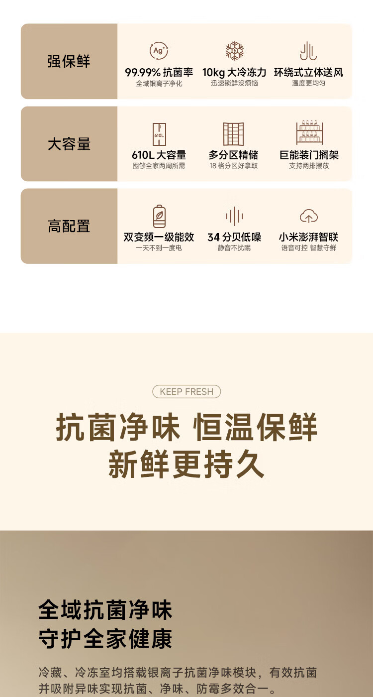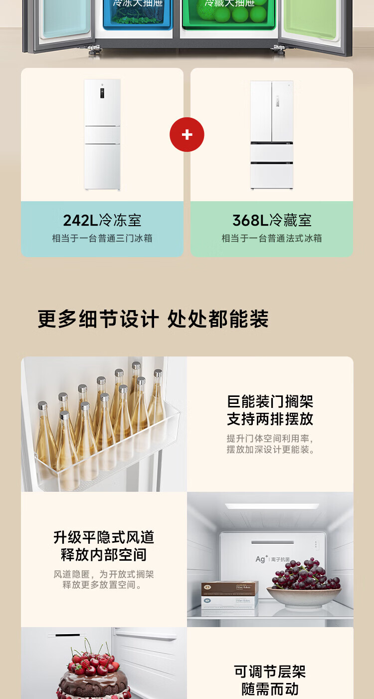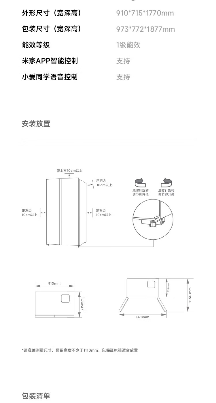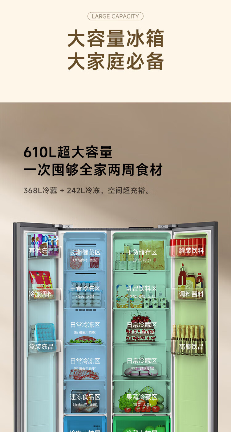 米家小米冰箱对开门610L大容量节能省电风冷无霜一级能效BCD-610WKMP米家冰箱对开门610【升级款】 610L对开门 新款