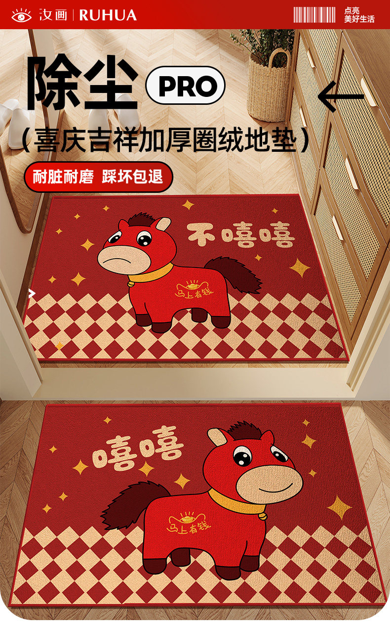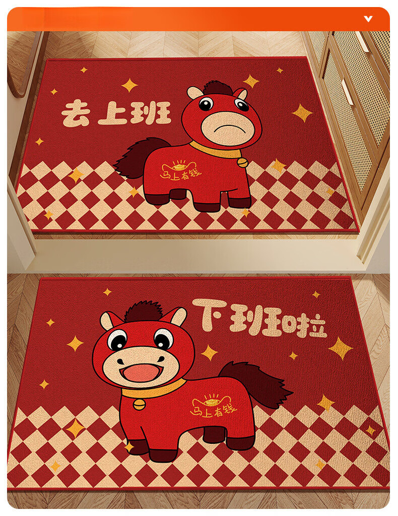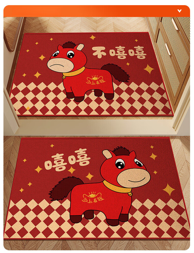 DONOYA 多罗亚哭哭马马年入户门地垫脚垫2025新款门垫地垫入户门垫玄关门口地垫 不嘻嘻马【比利时圈绒】 60cm*90cm 【硅胶矩阵防滑底】