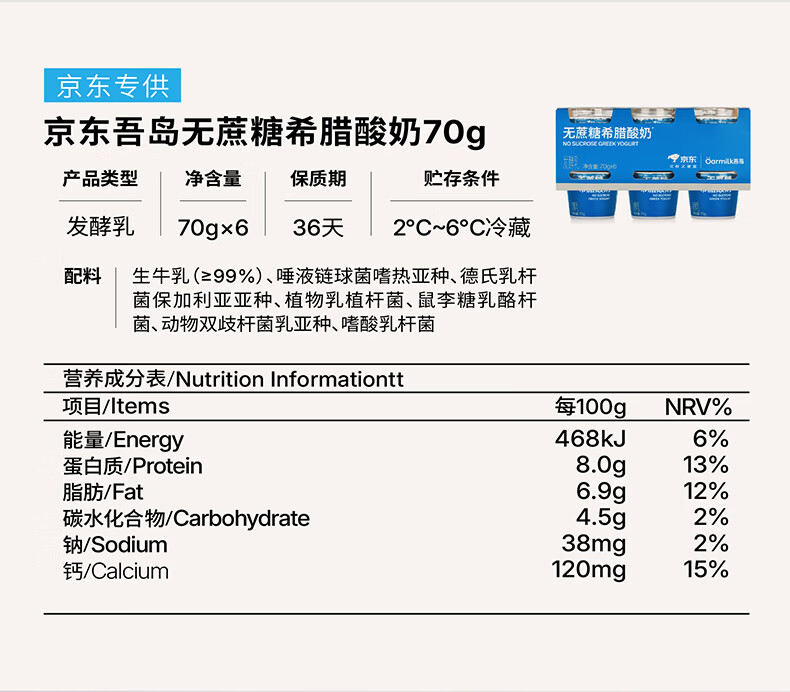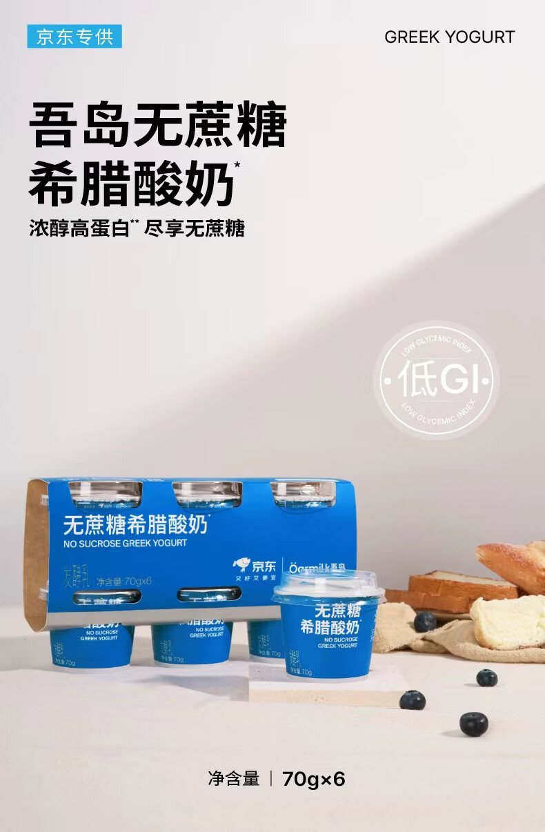 OarmiLk吾岛【关晓彤推荐】无蔗糖希腊酸奶低温酸奶70gX6京东专供