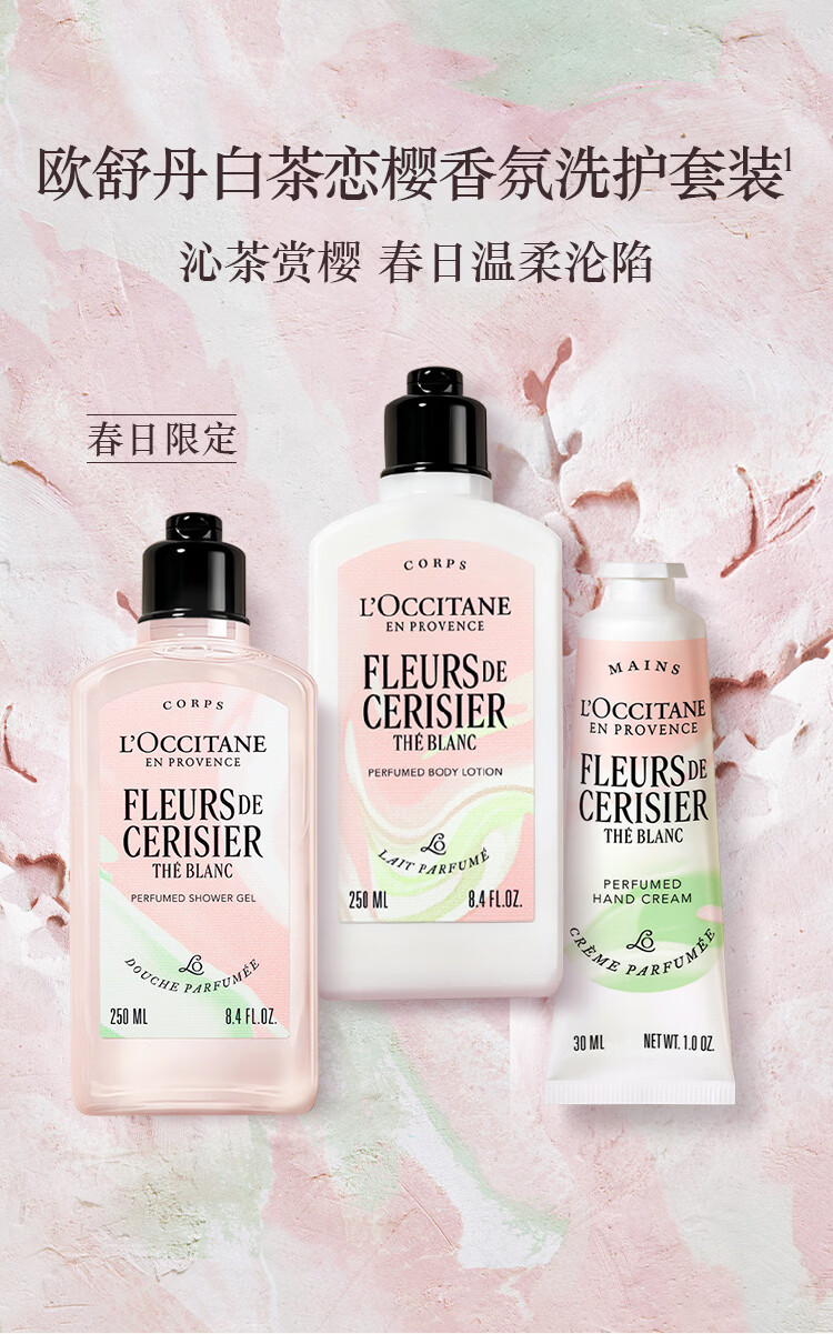 欧舒丹新品白茶恋樱身体乳沐浴露护手霜礼盒水润保湿生日礼物伴手礼女友