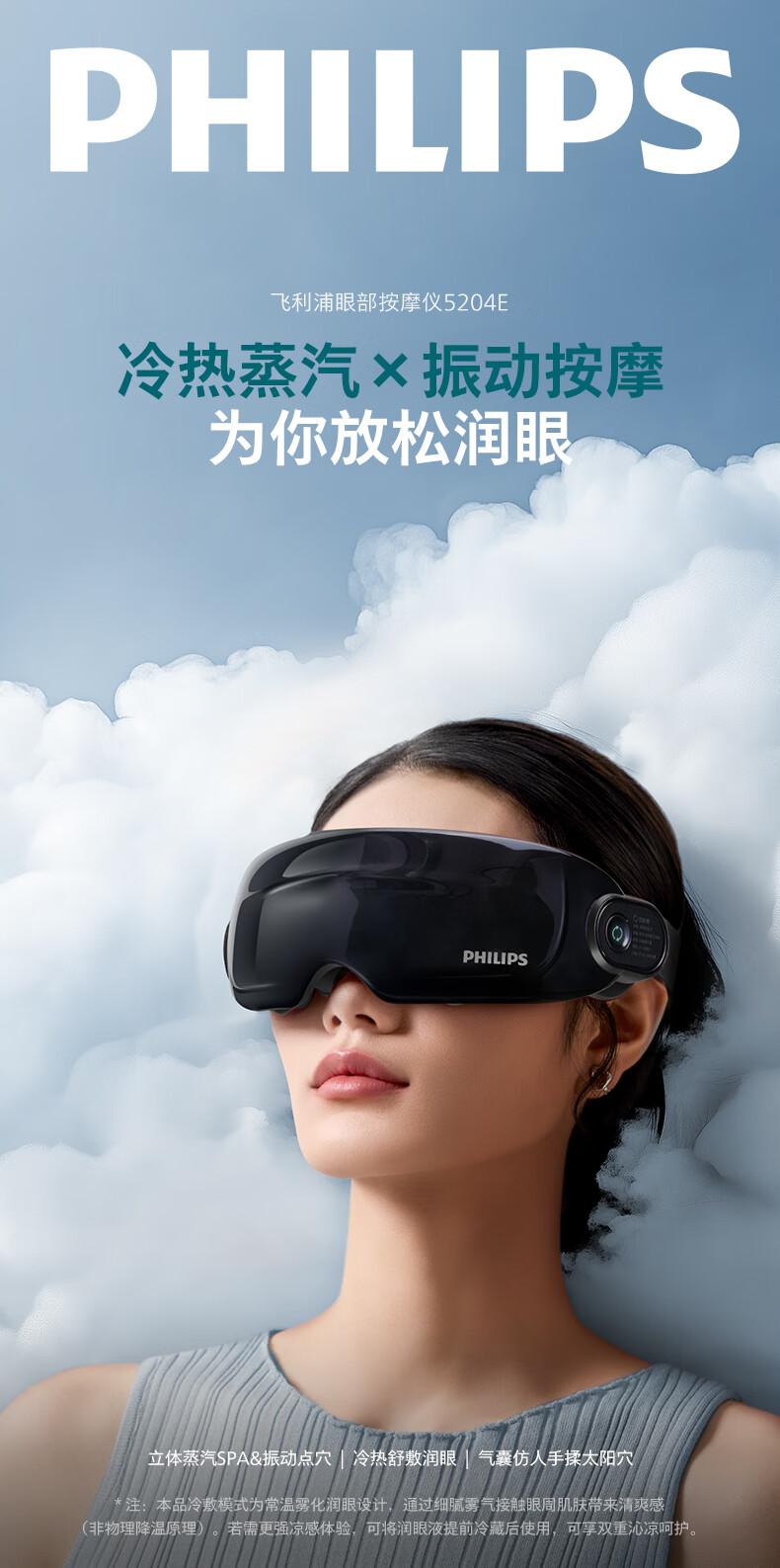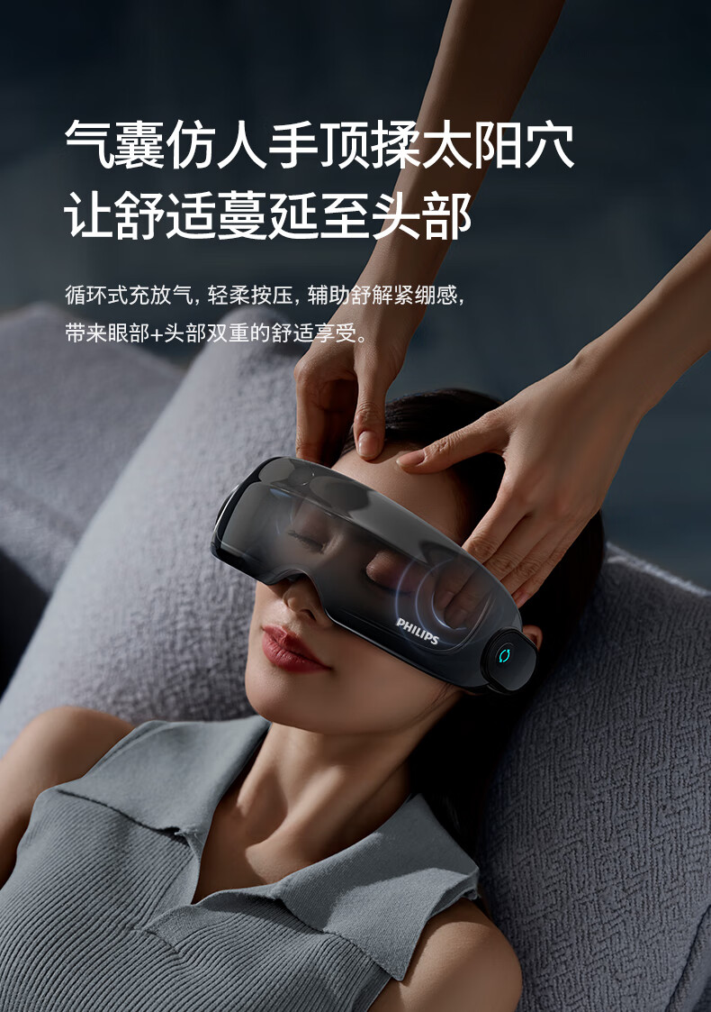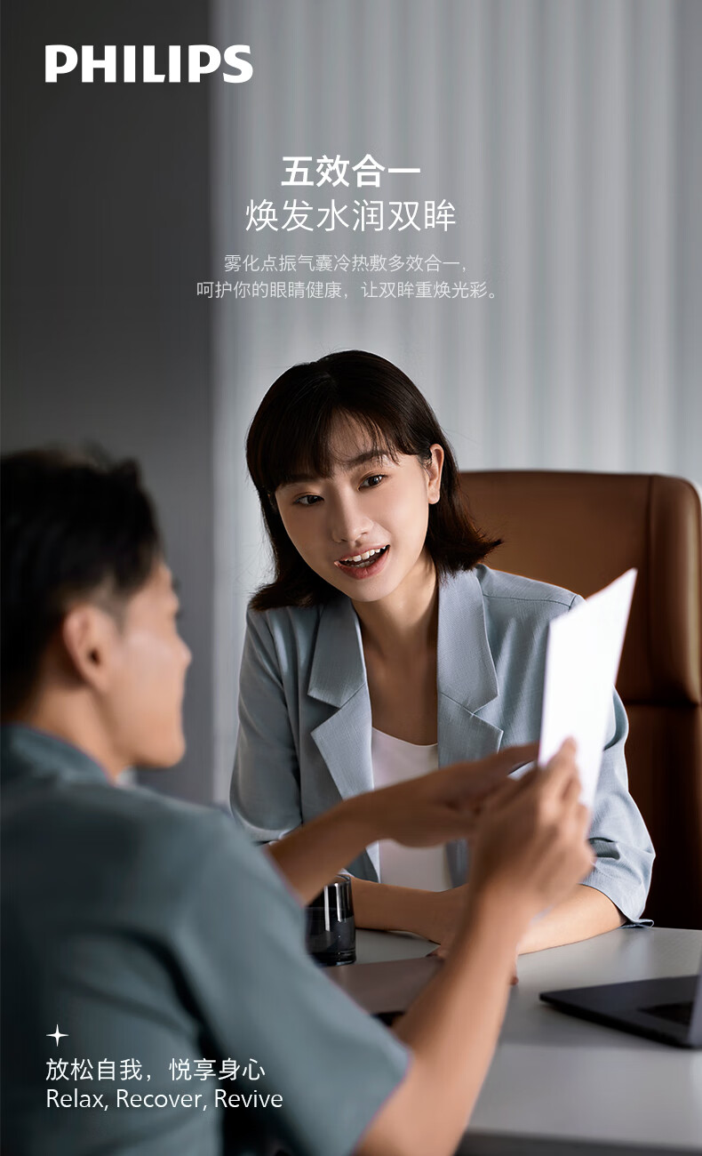 飞利浦(PHILIPS)美眼宝【重磅新品】眼部按摩仪蒸汽眼罩热敷雾化护润眼按摩护眼仪送男友老公新年生日礼物5204E灰