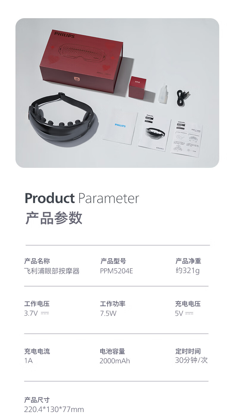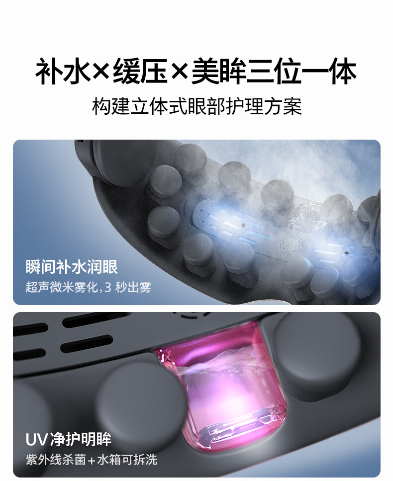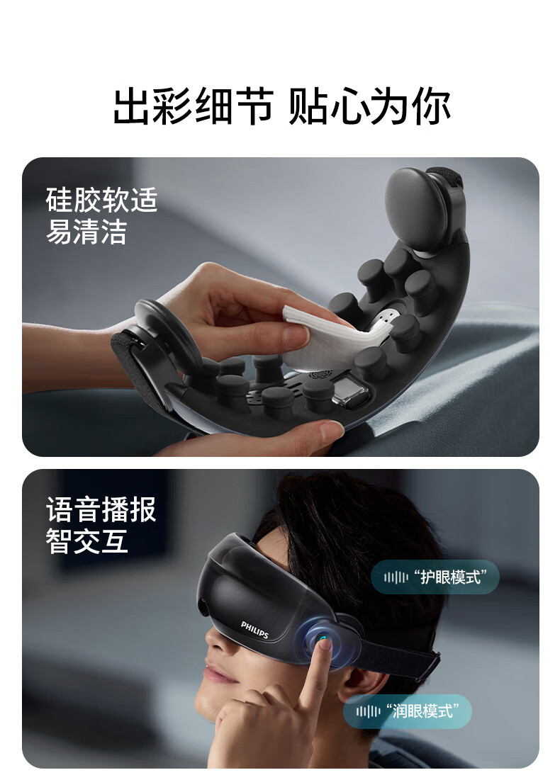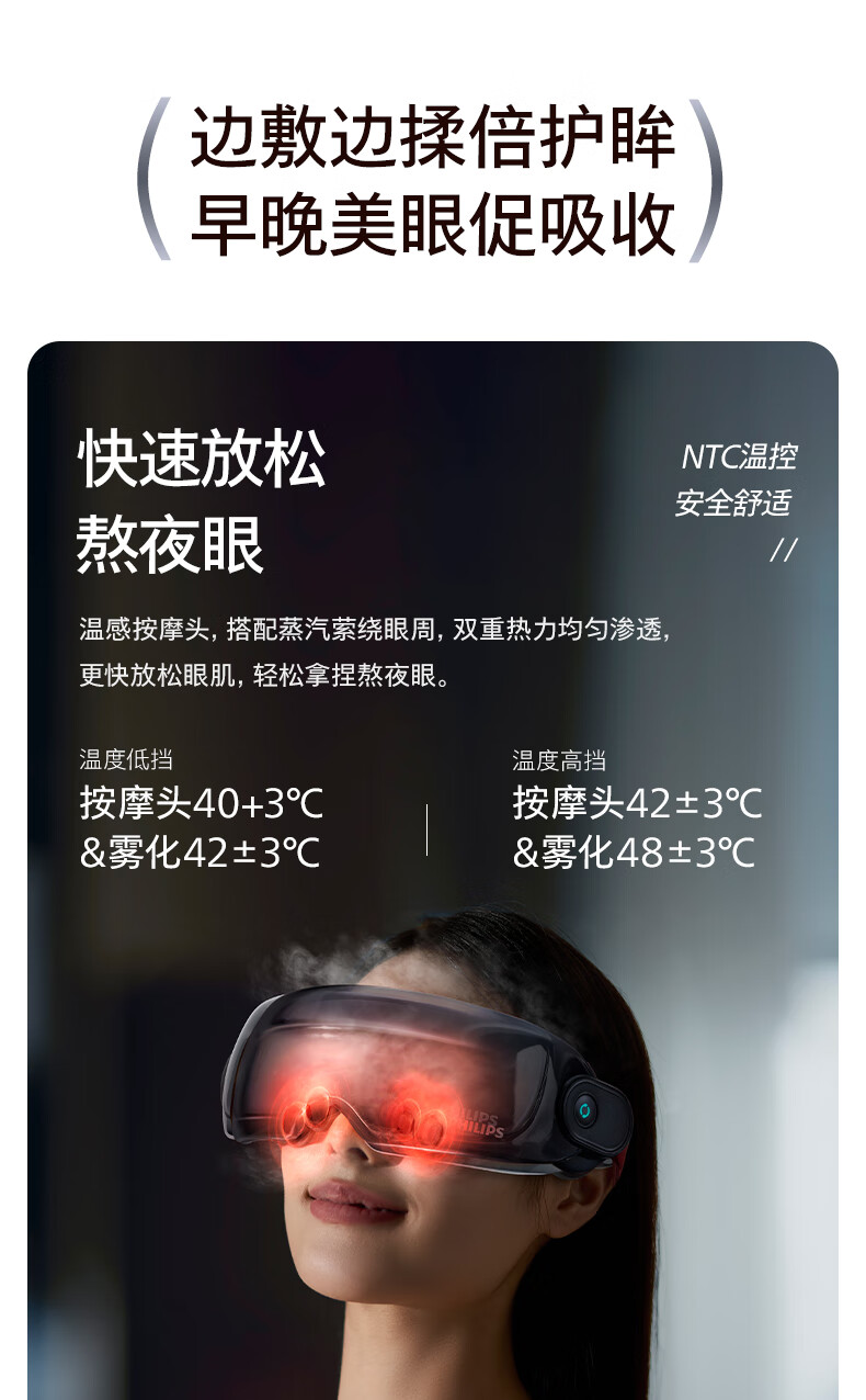 飞利浦(PHILIPS)美眼宝【重磅新品】眼部按摩仪蒸汽眼罩热敷雾化护润眼按摩护眼仪送男友老公新年生日礼物5204E灰