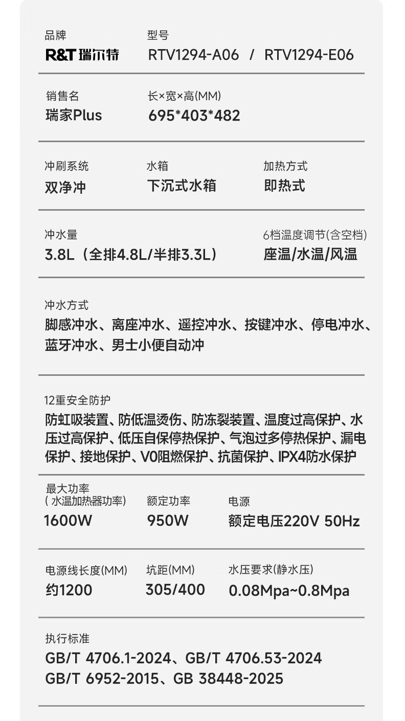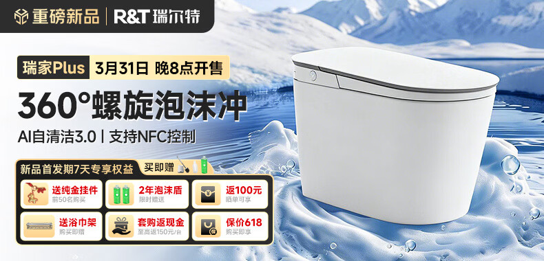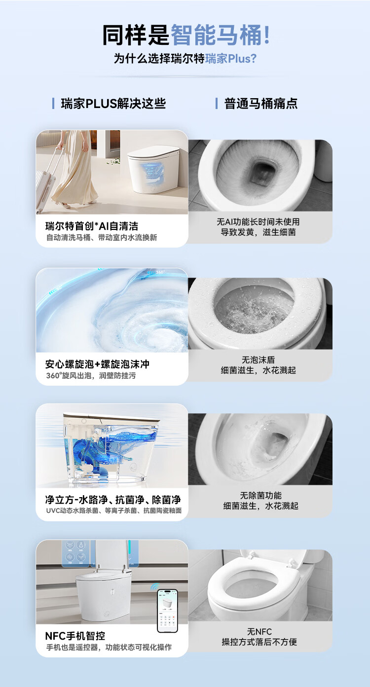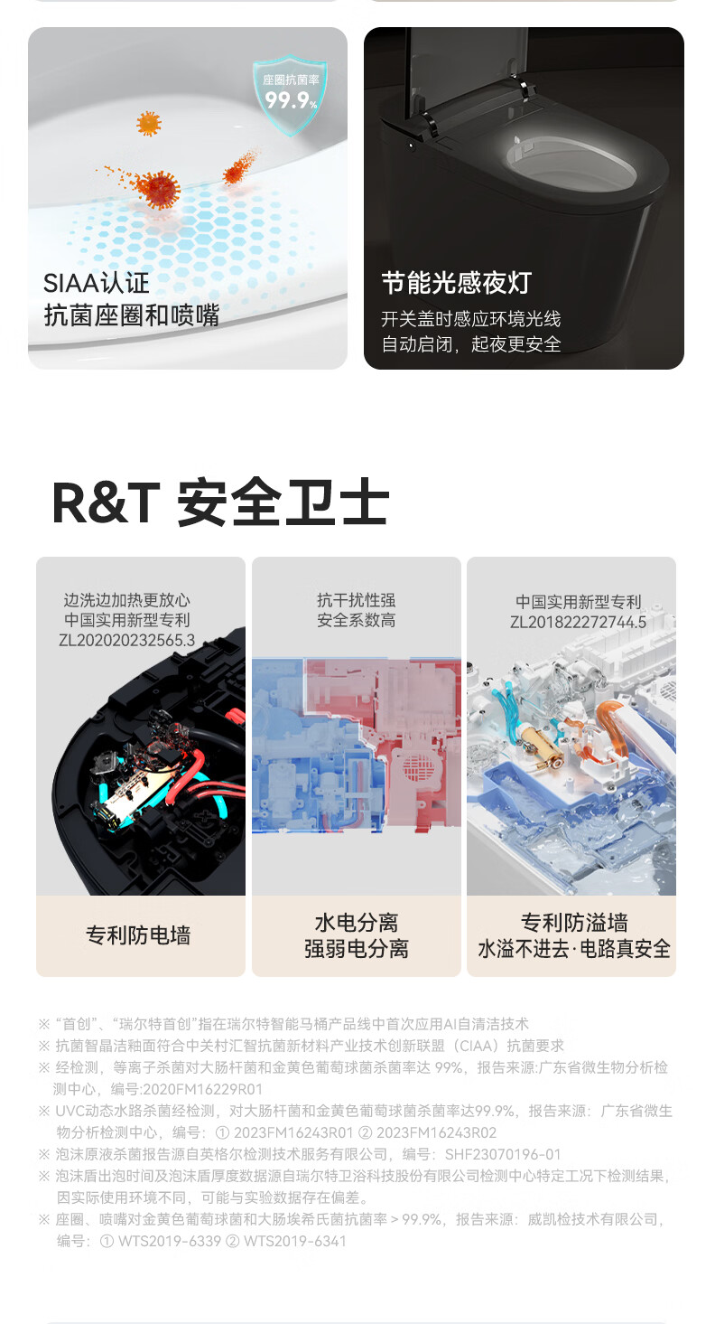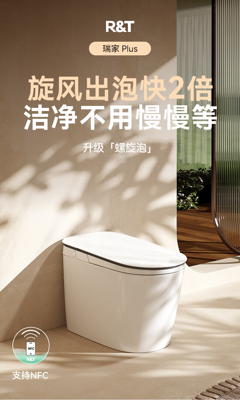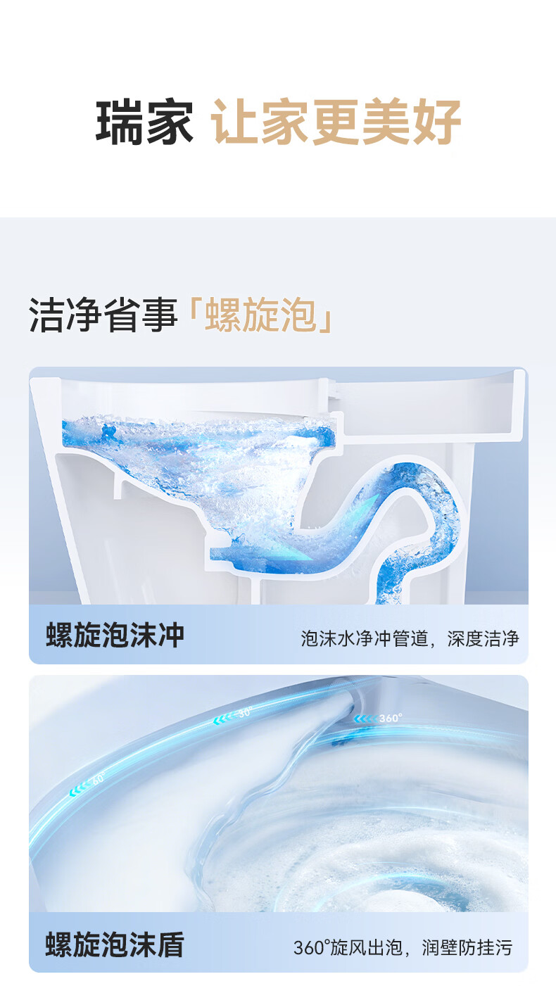 瑞尔特(R&T)智能马桶螺旋泡沫冲瑞家系列脚感翻盖翻圈AI自清洁3.0坐便器 【到手按3698退差】瑞家Plus【螺旋泡+自翻+支持NFC】 305/400坑距下单备注 305/400坑距下单备注