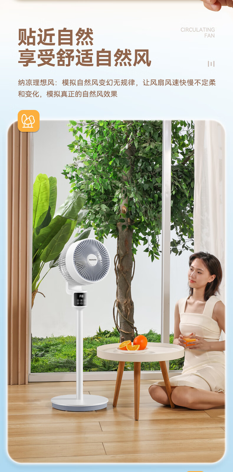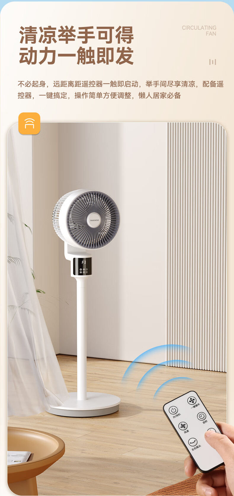 大宇大宇空气循环扇遥控电风扇落地家用摇头电扇涡轮换气扇循环对流风扇落地扇台地两用 XF16遥控款
