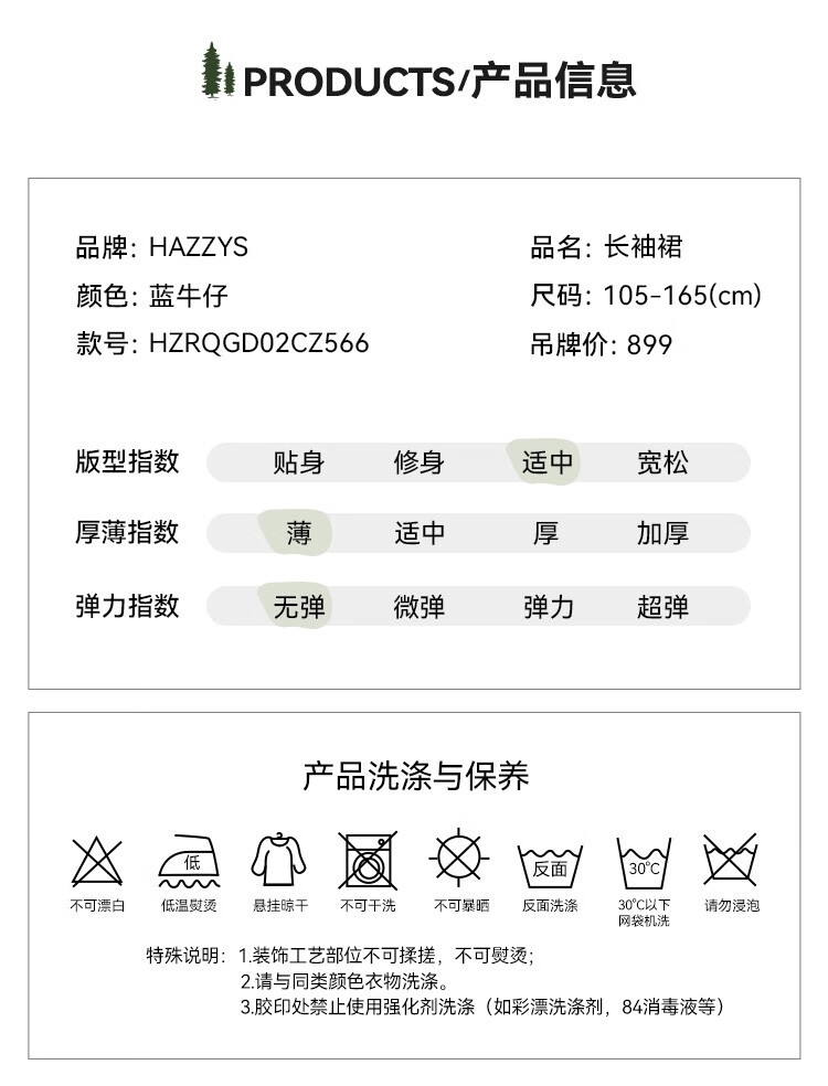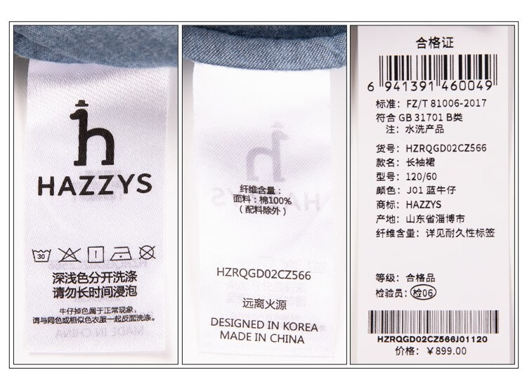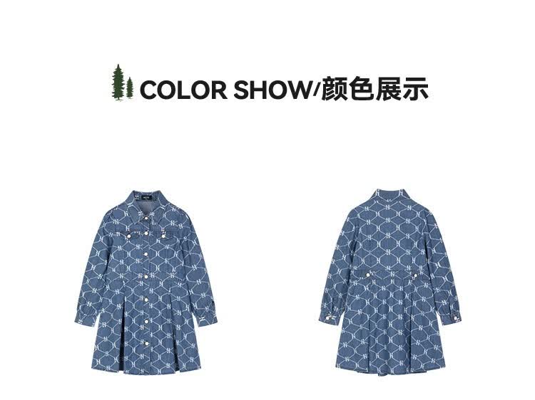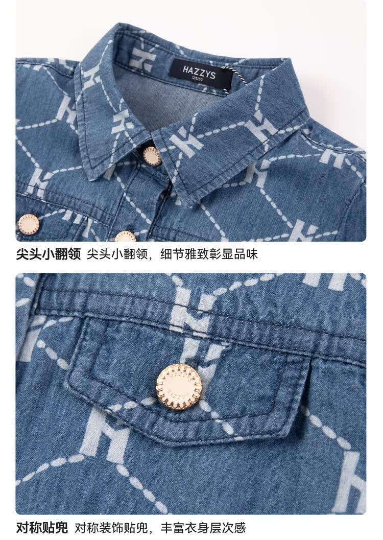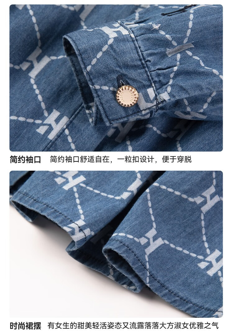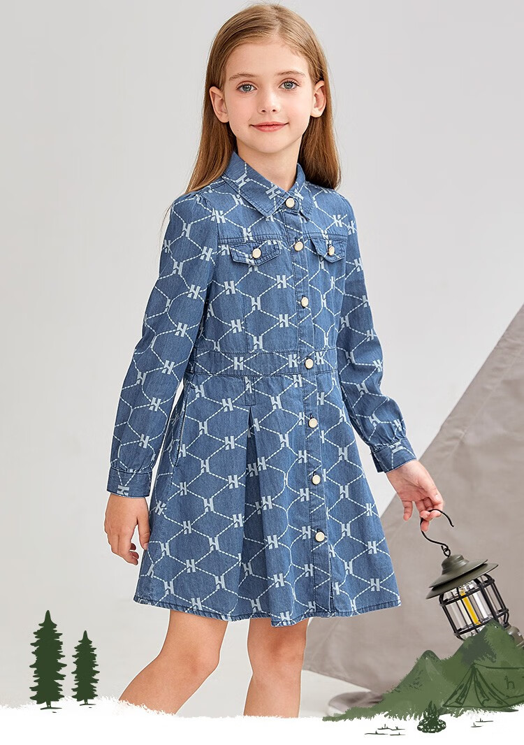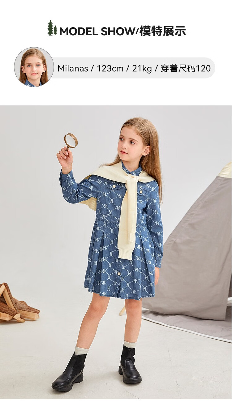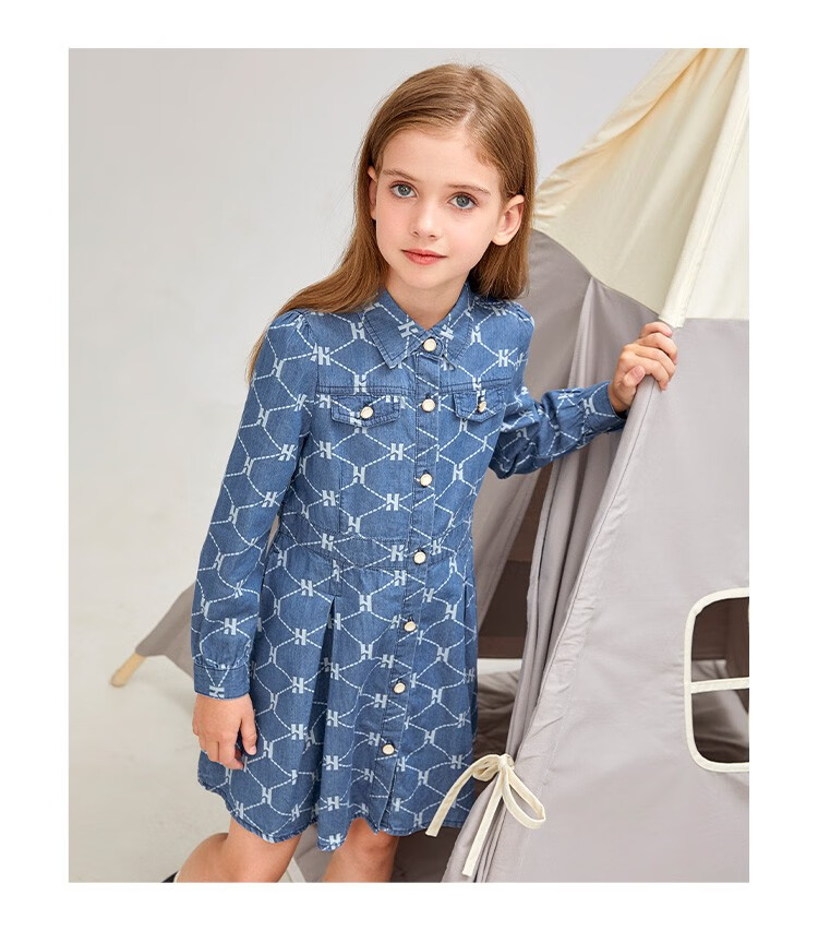 哈吉斯(HAZZYS)品牌童装女童连衣裙秋新品柔软舒适翻领简约甜美牛仔长袖裙 蓝牛仔 145