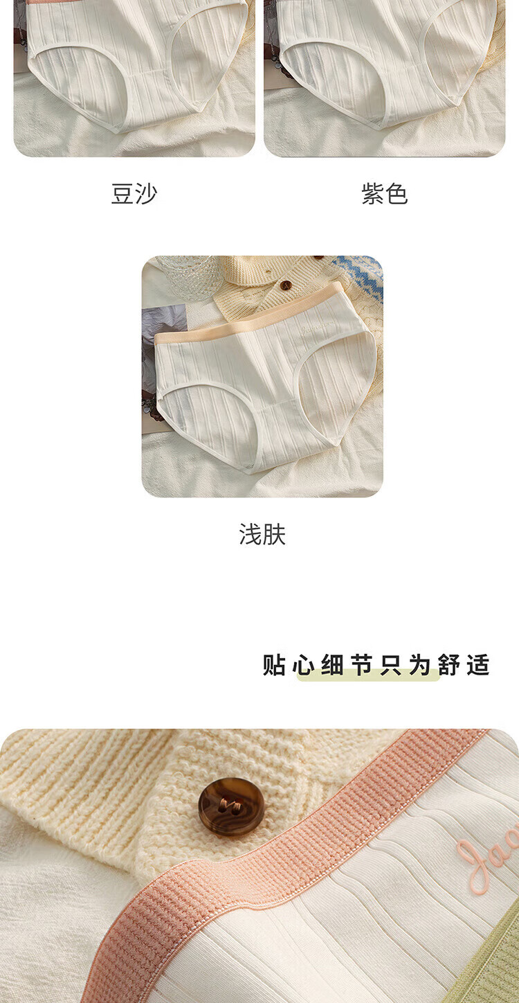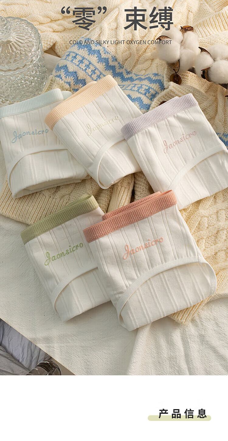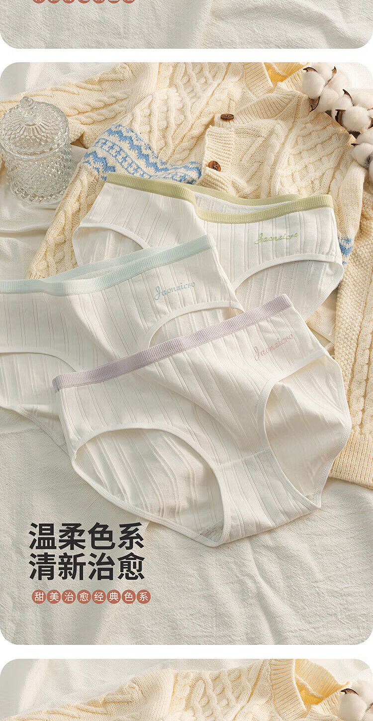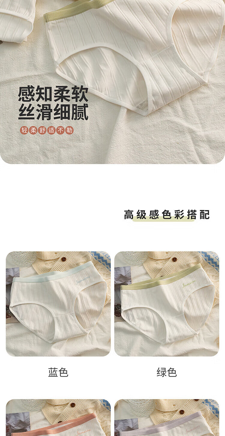 宜而爽7A纯棉婴儿棉裆女士内裤中腰甜美日系可爱薄款性感学生三角裤 2浅蓝+2绿色+2紫色+1肤色 7条 L 【建议95-115斤】