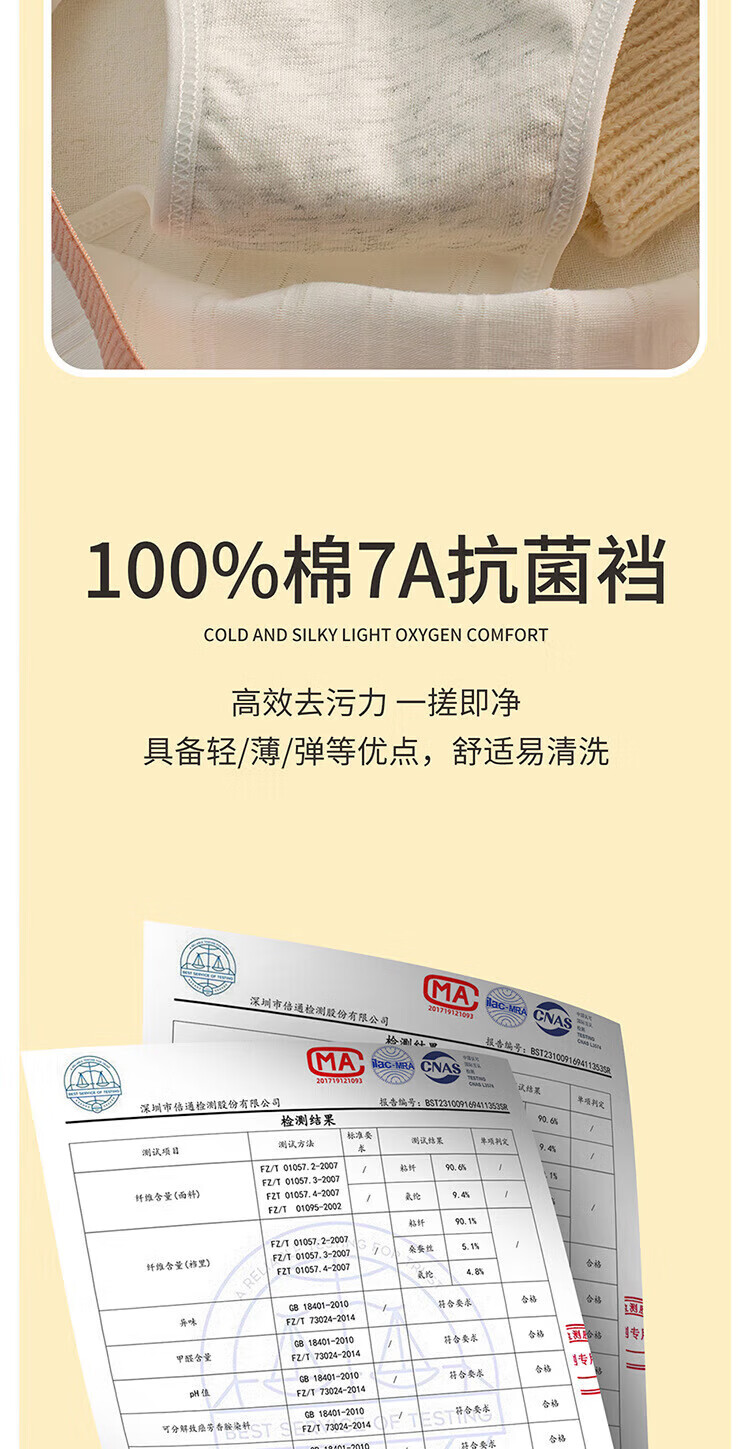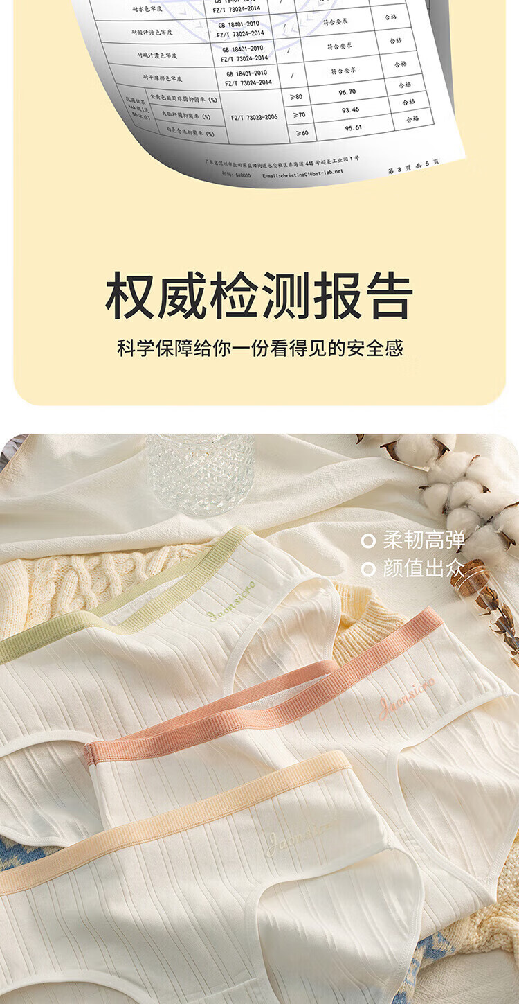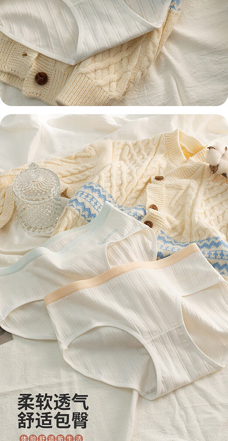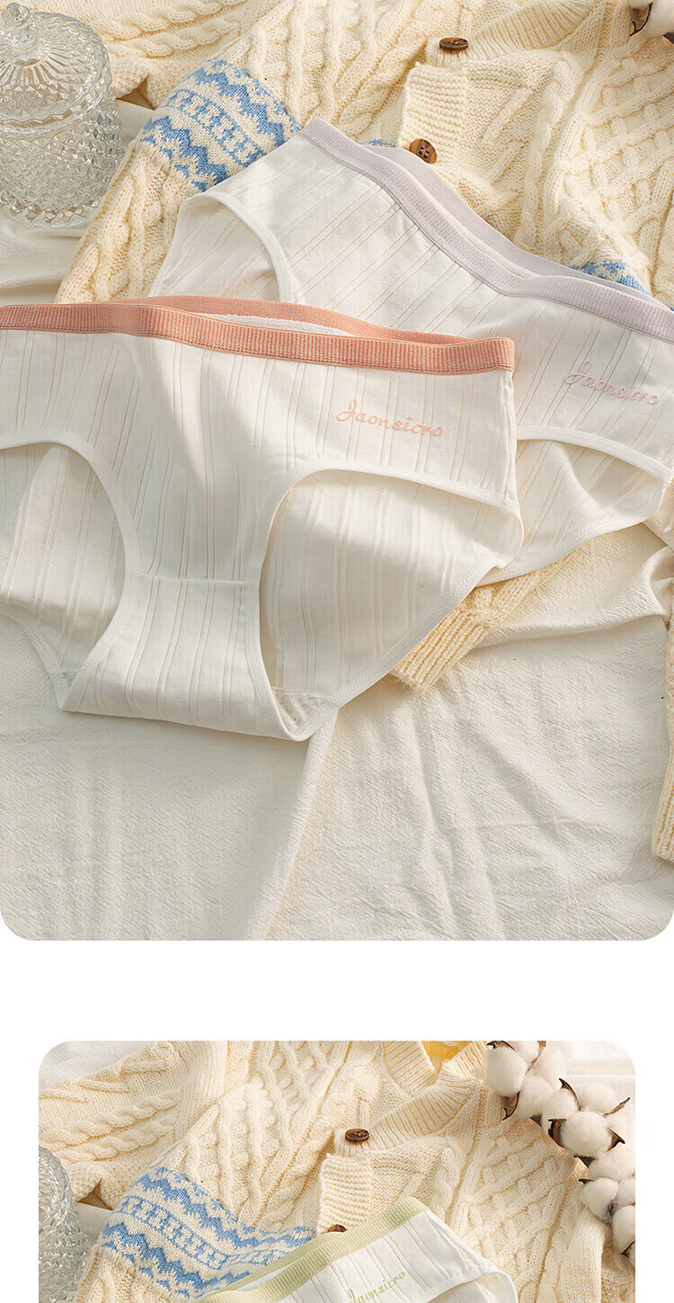 宜而爽7A纯棉婴儿棉裆女士内裤中腰甜美日系可爱薄款性感学生三角裤 2浅蓝+2绿色+2紫色+1肤色 7条 L 【建议95-115斤】