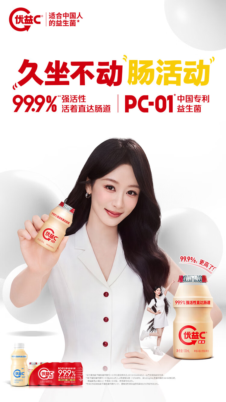 蒙牛(MENGNIU)杨紫推荐 优益C乳酸菌饮品0脂肪原味100ml*10瓶