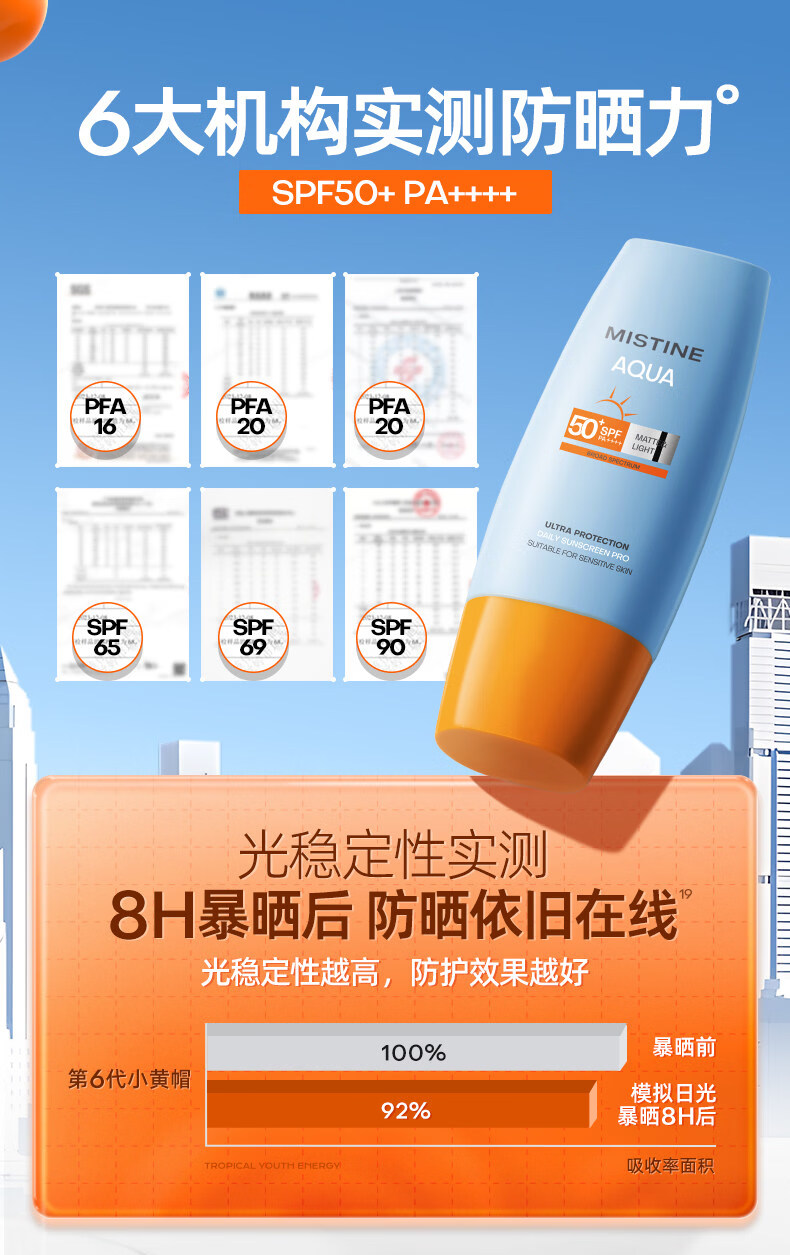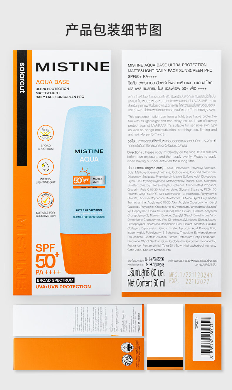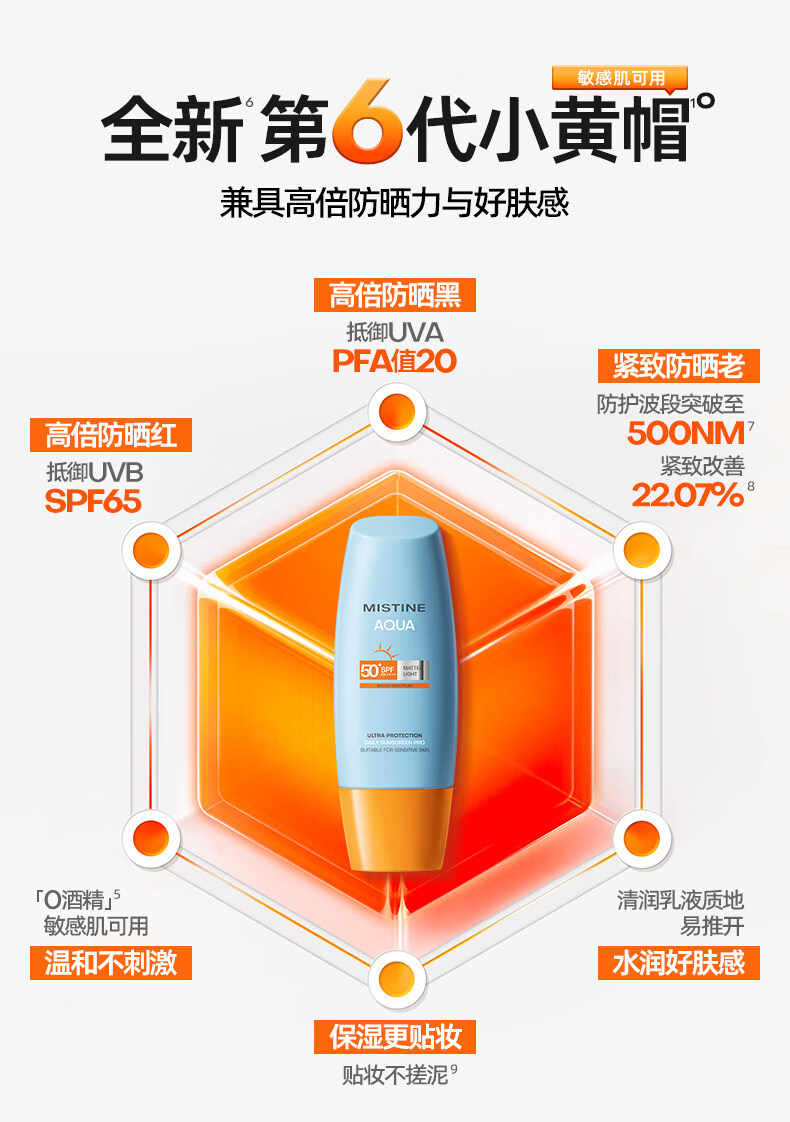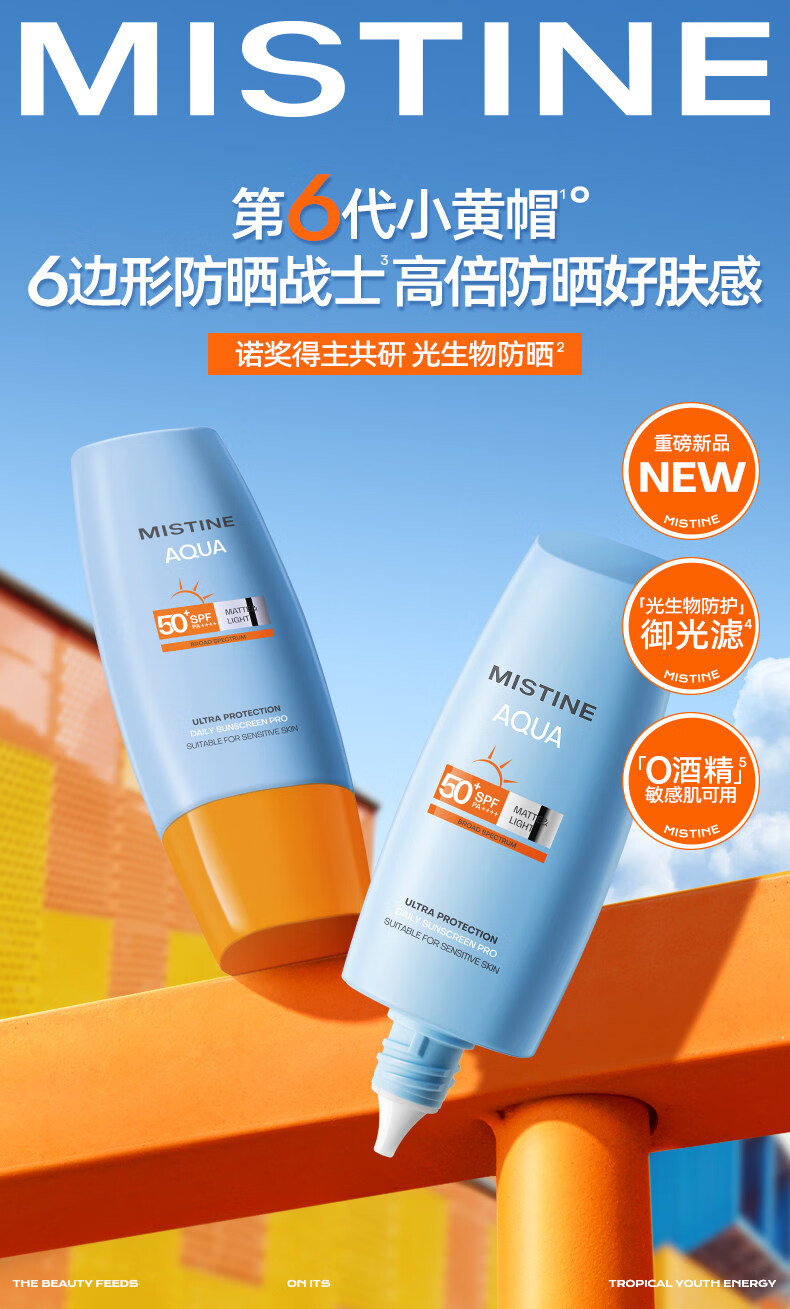 Mistine蜜丝婷 新版小黄帽防晒霜乳60ml 水感养肤高倍防晒