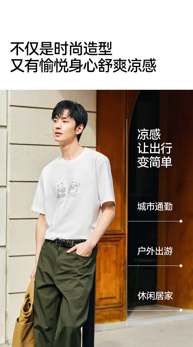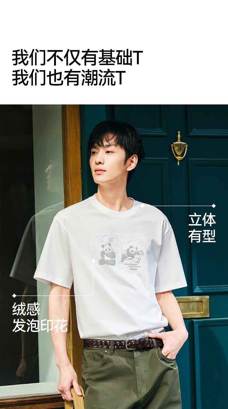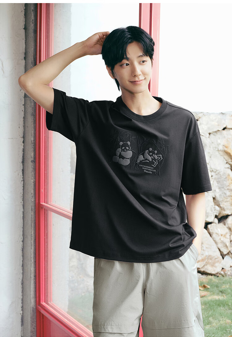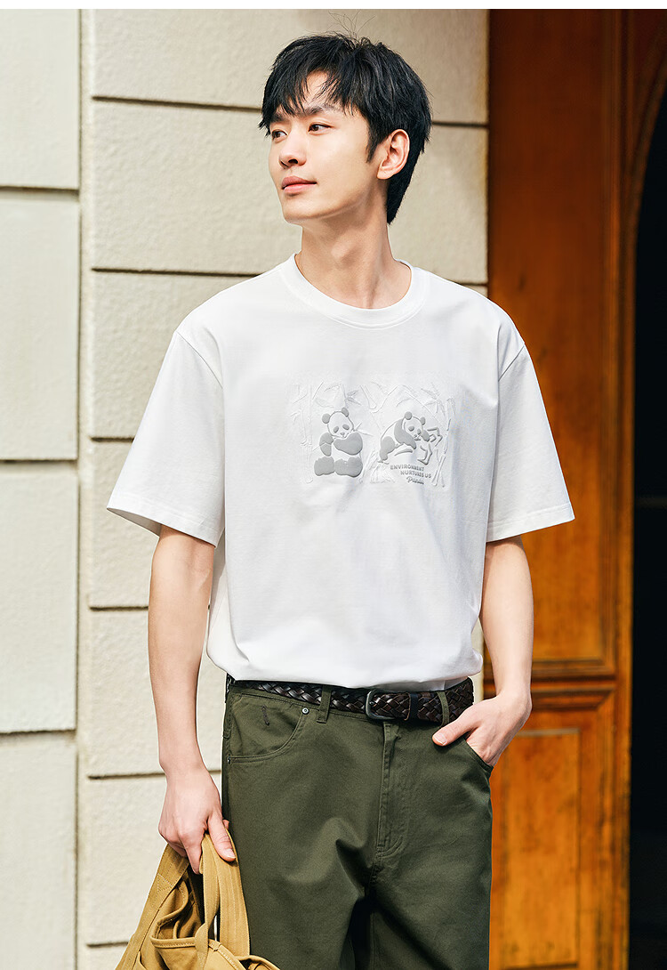 森马(Semir)短袖T恤男装熊猫国风印花刺绣2025夏季凉感t宽松上衣109325100113