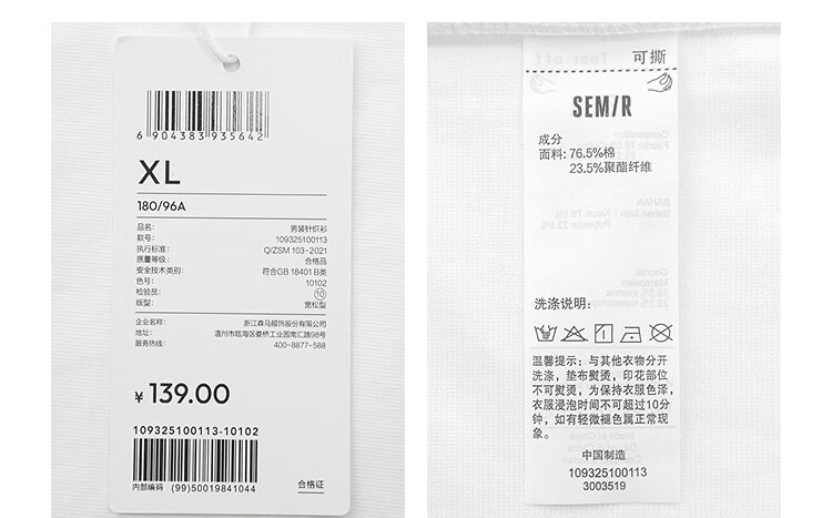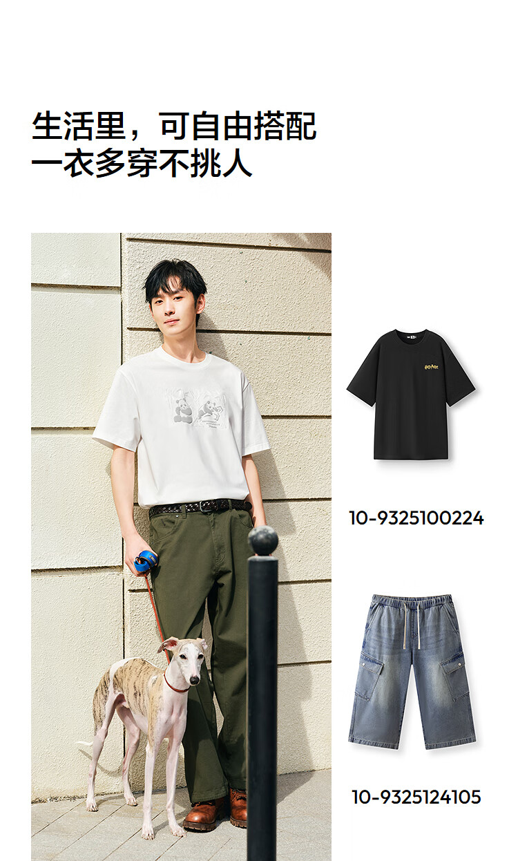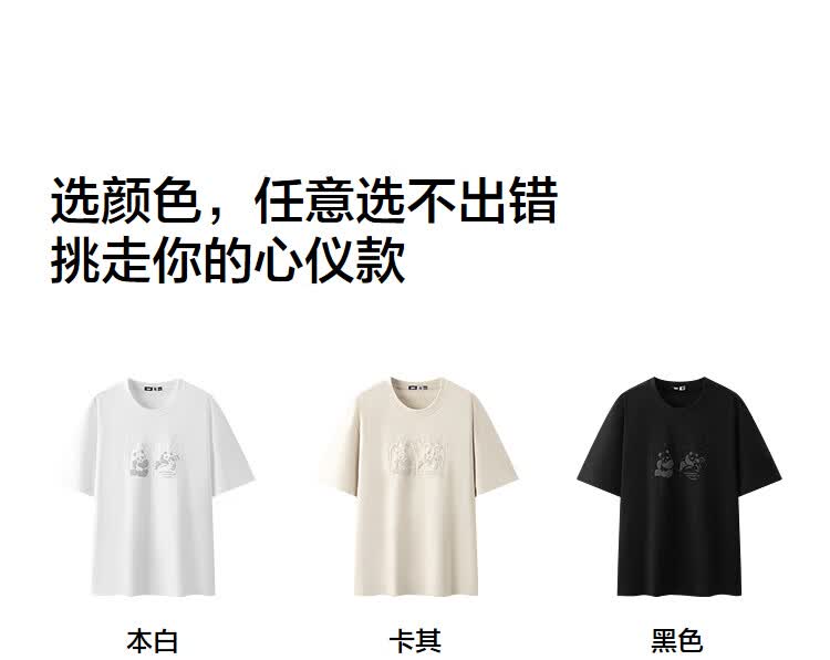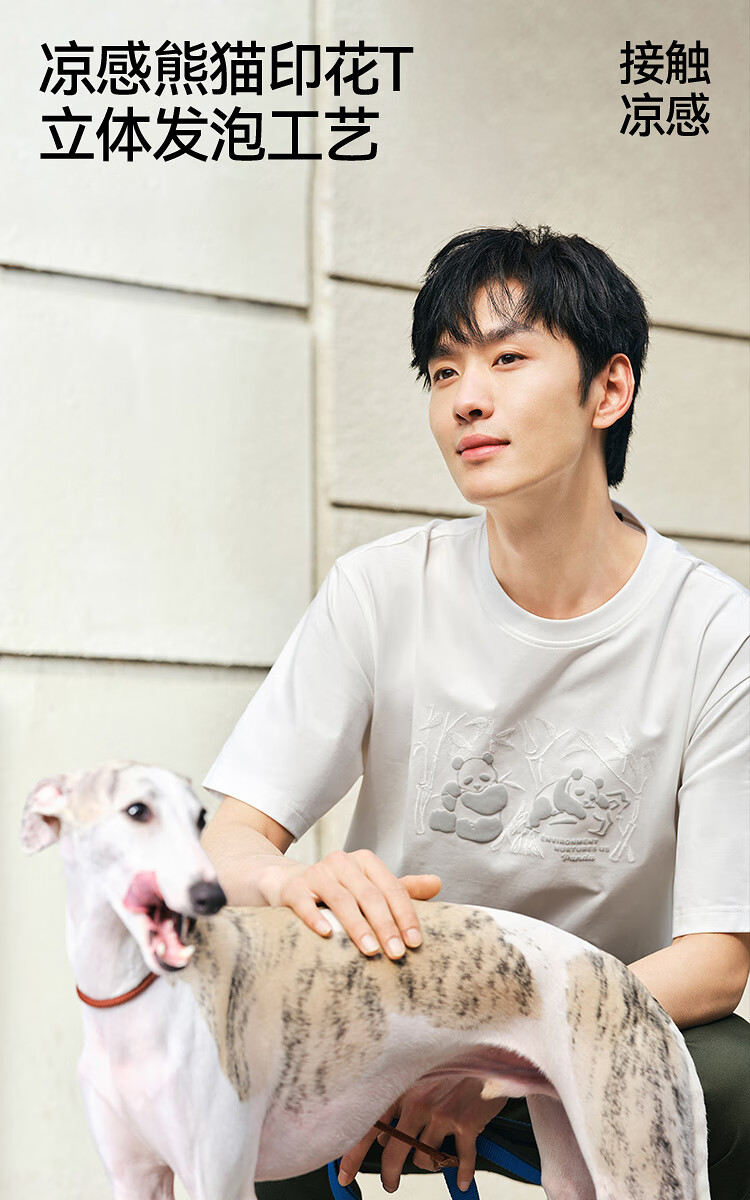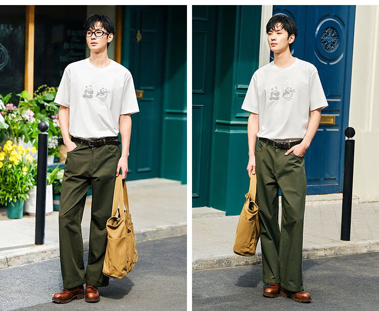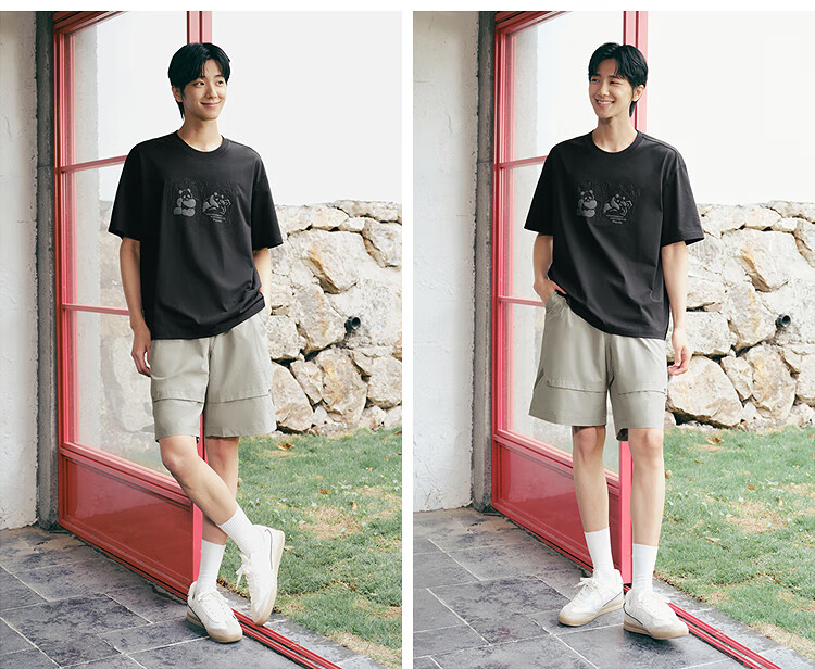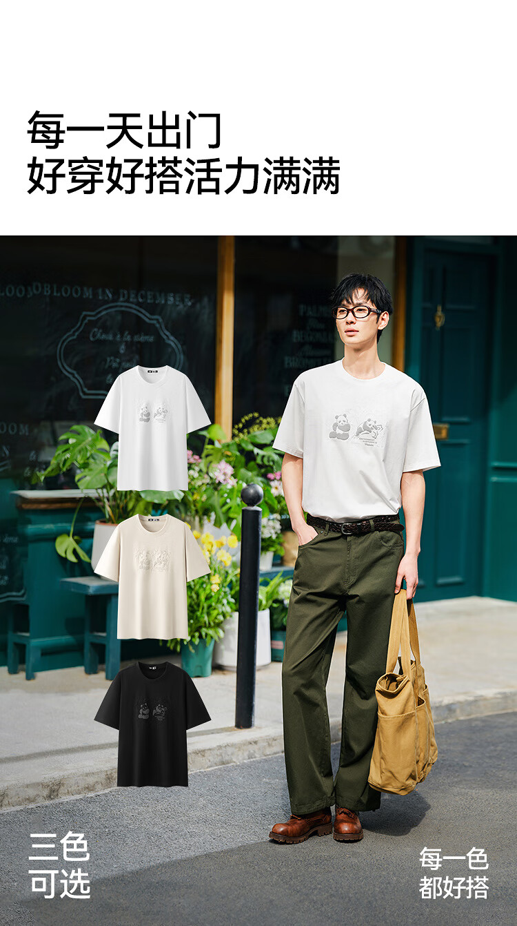 森马(Semir)短袖T恤男装熊猫国风印花刺绣2025夏季凉感t宽松上衣109325100113