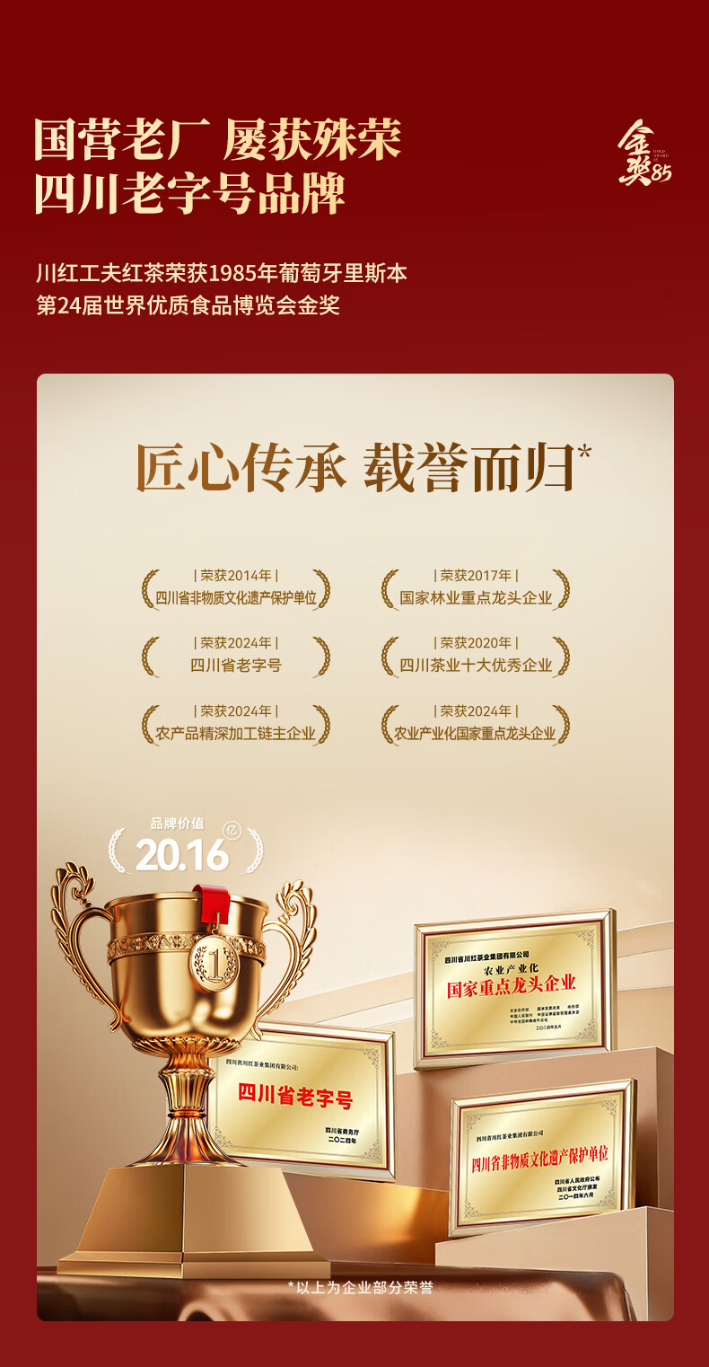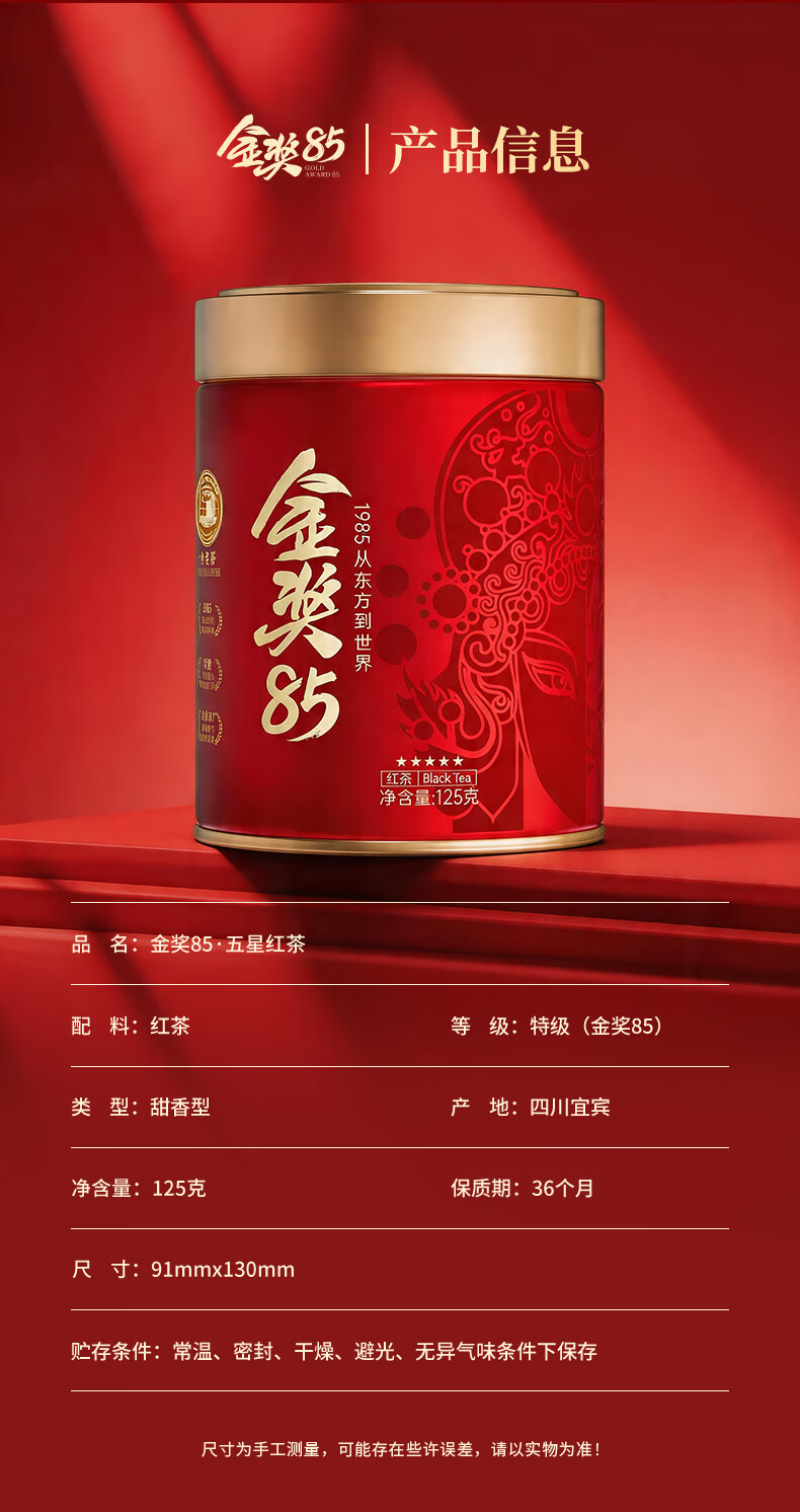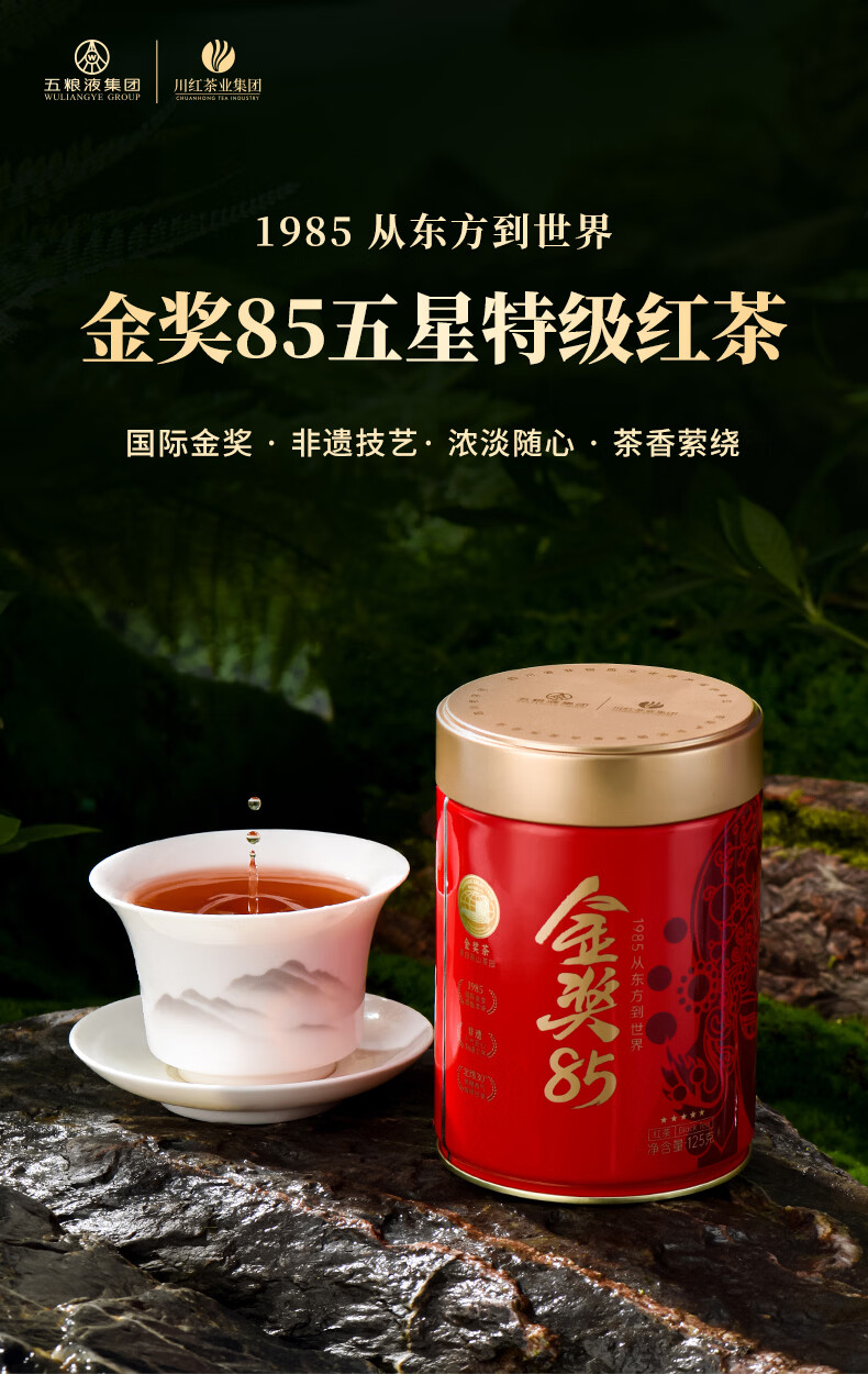 川红 买1发2特级金奖85红茶 四川特产橘糖香工夫非遗技艺茶自己喝 金奖85红茶五星新款125g