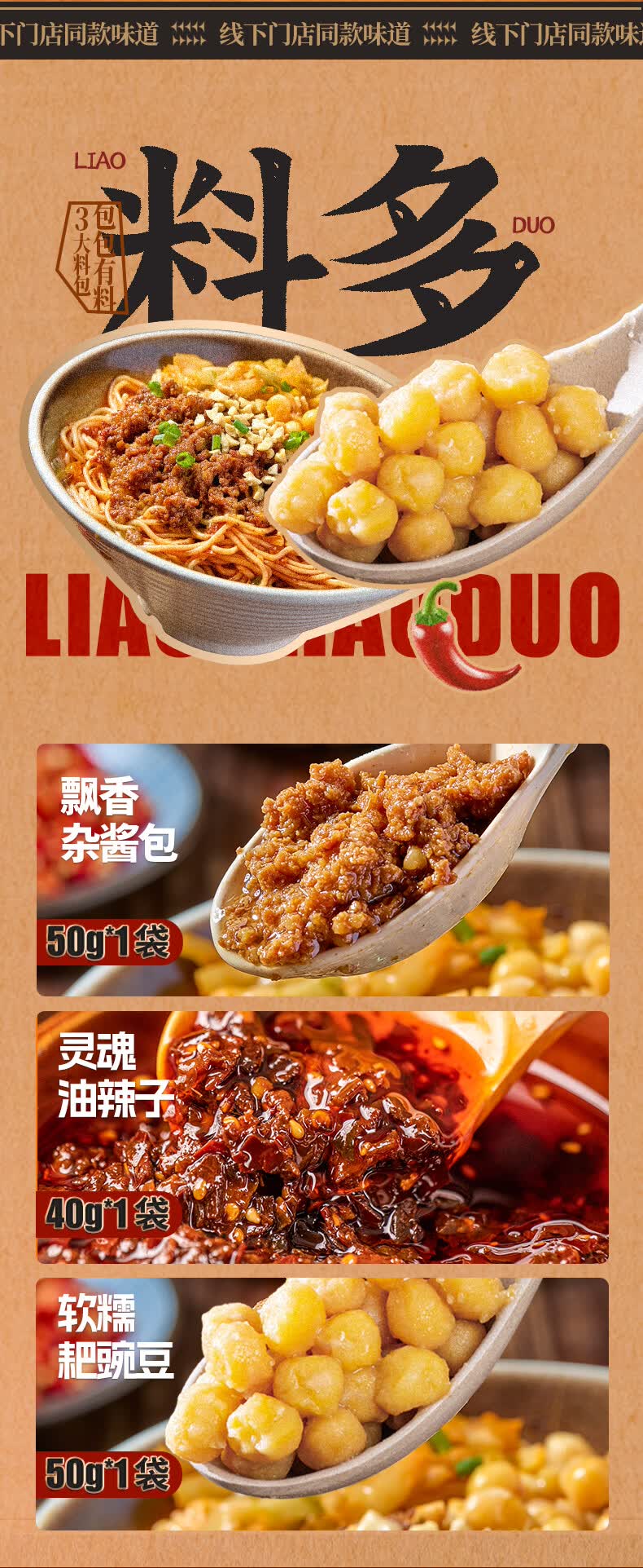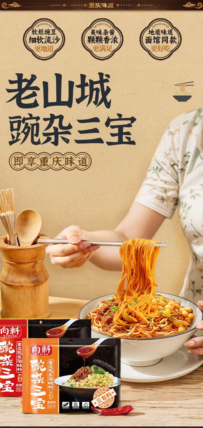 向料杂酱面调料重庆特产豌杂三宝140g杂酱包豌豆包调料包3包料