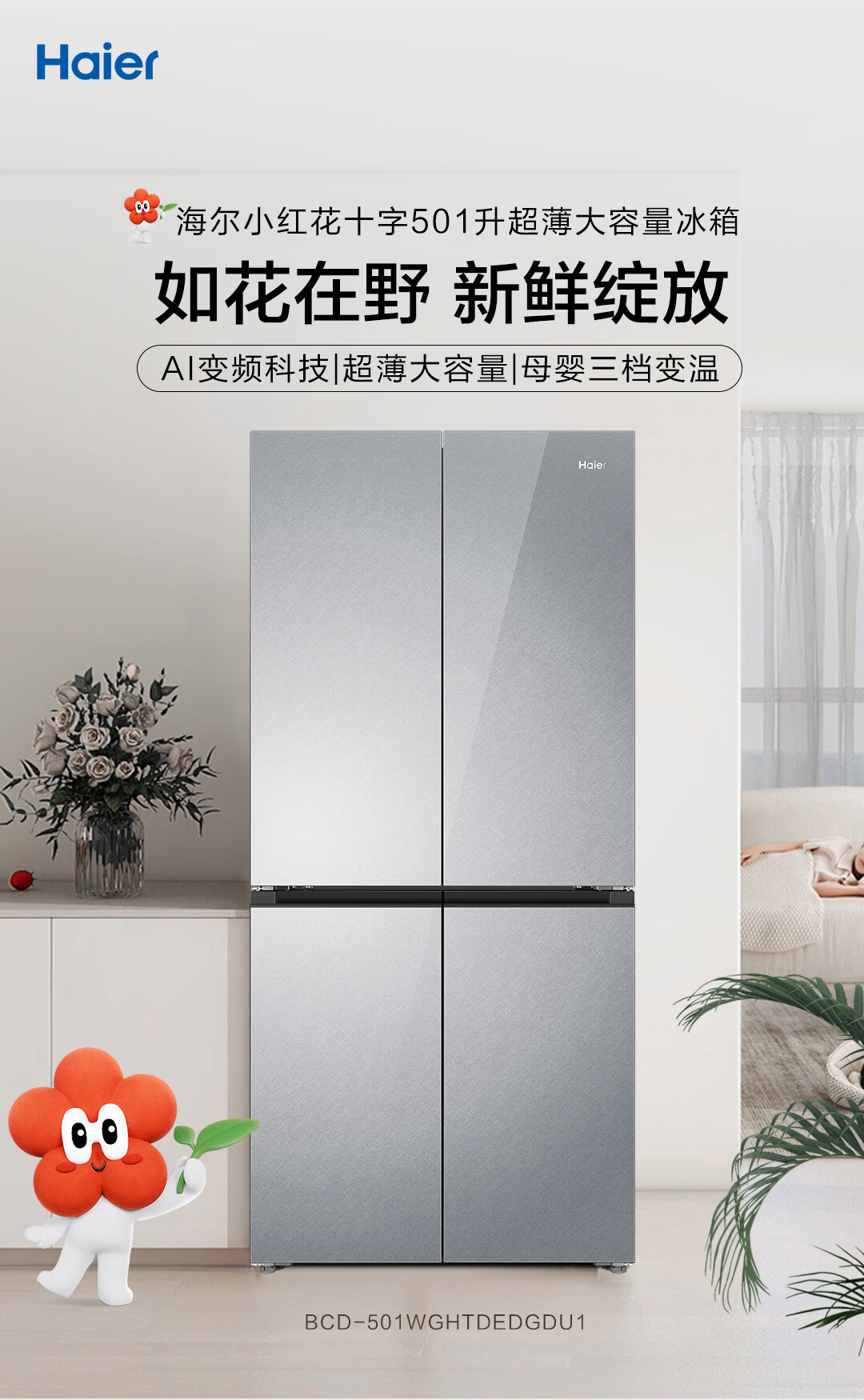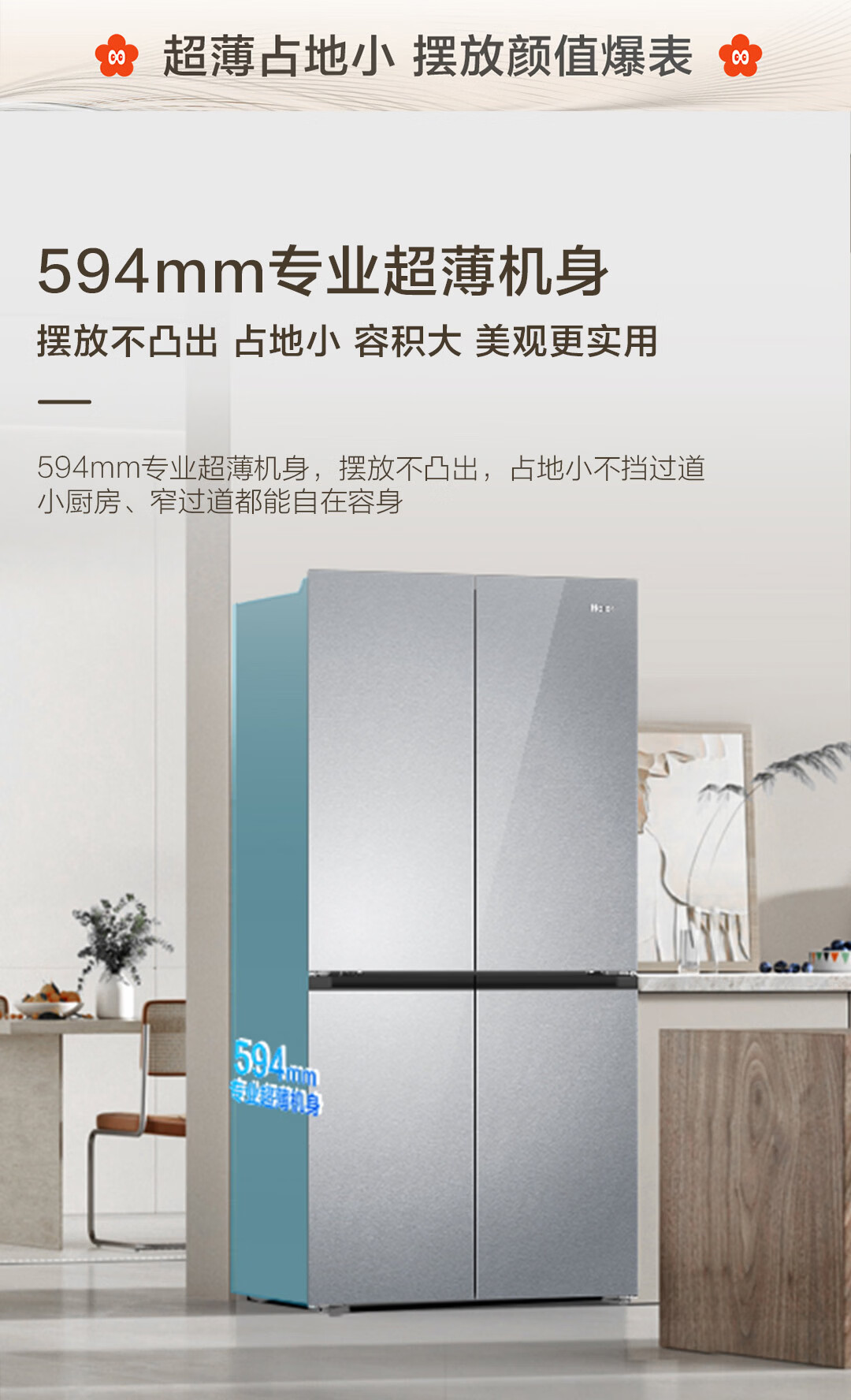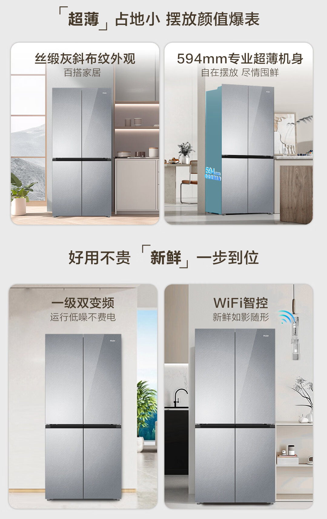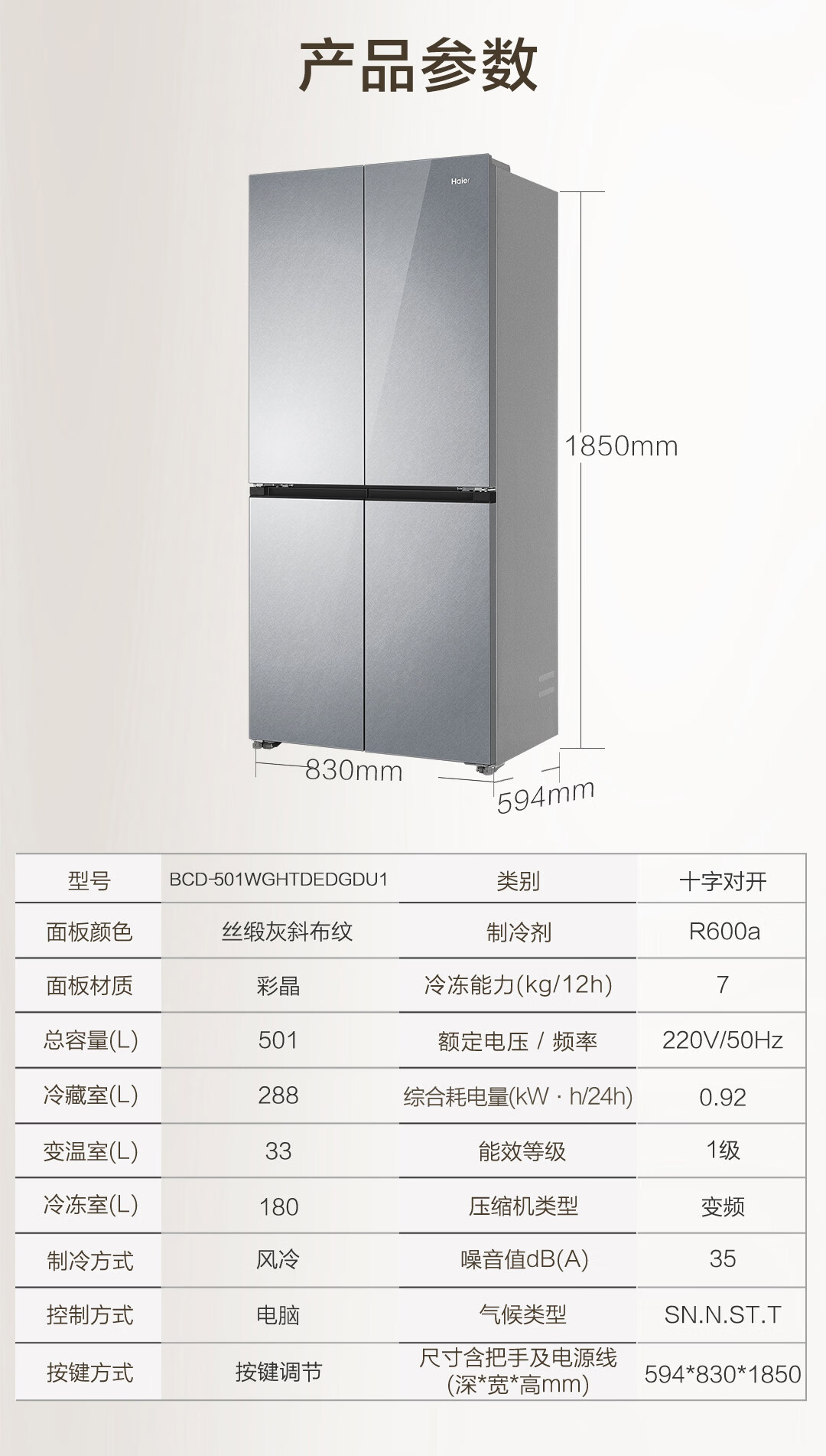 海尔(Haier)【真专供】海尔冰箱501L十字490plus升级款594mm超薄箱体一级彩晶BCD-501WGHTDEDGDU1