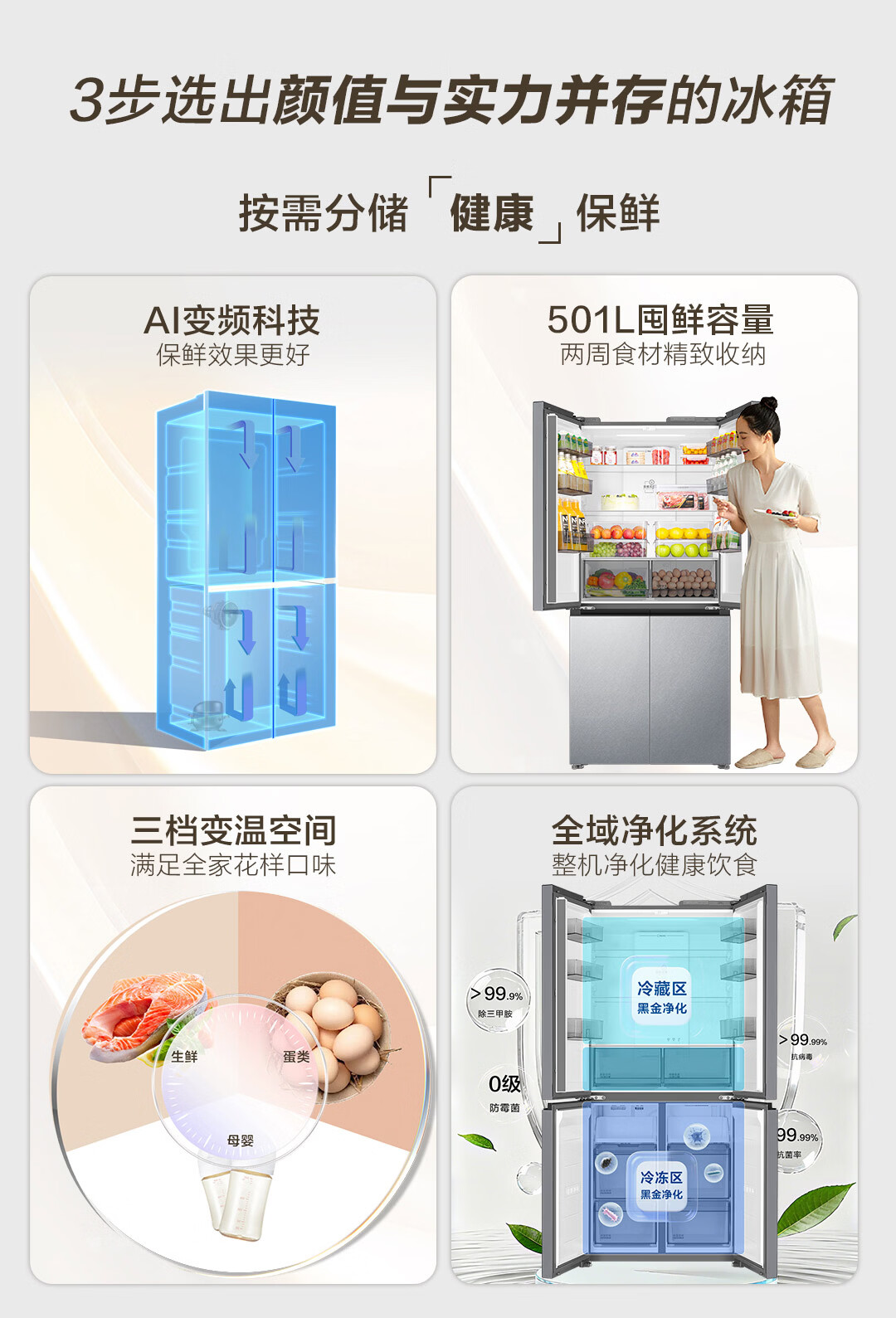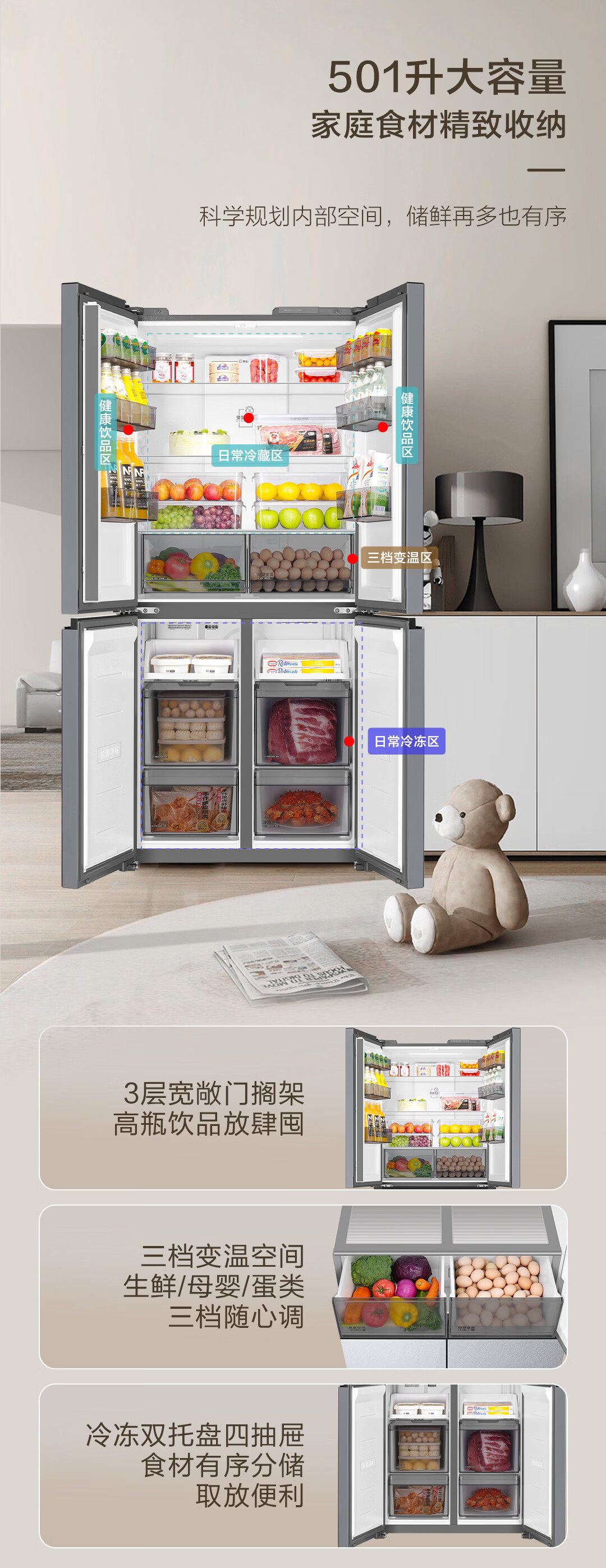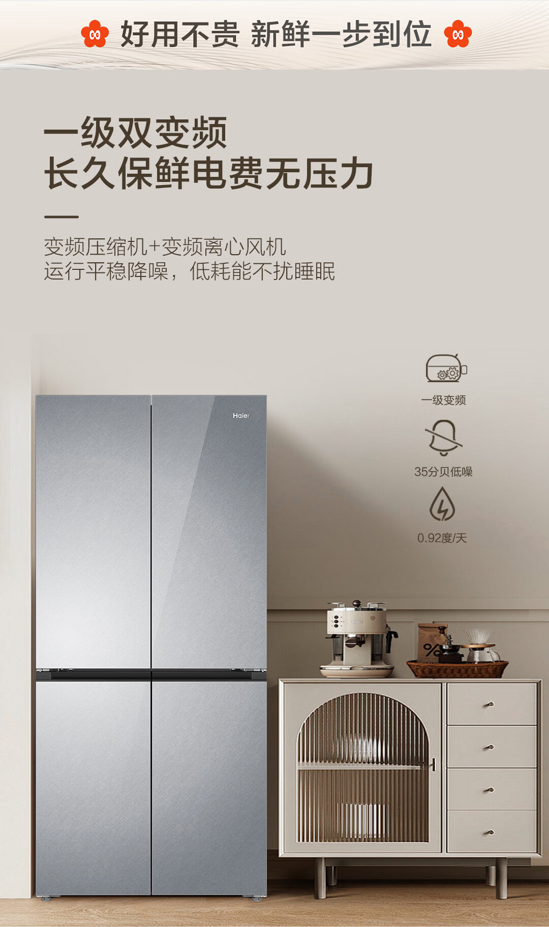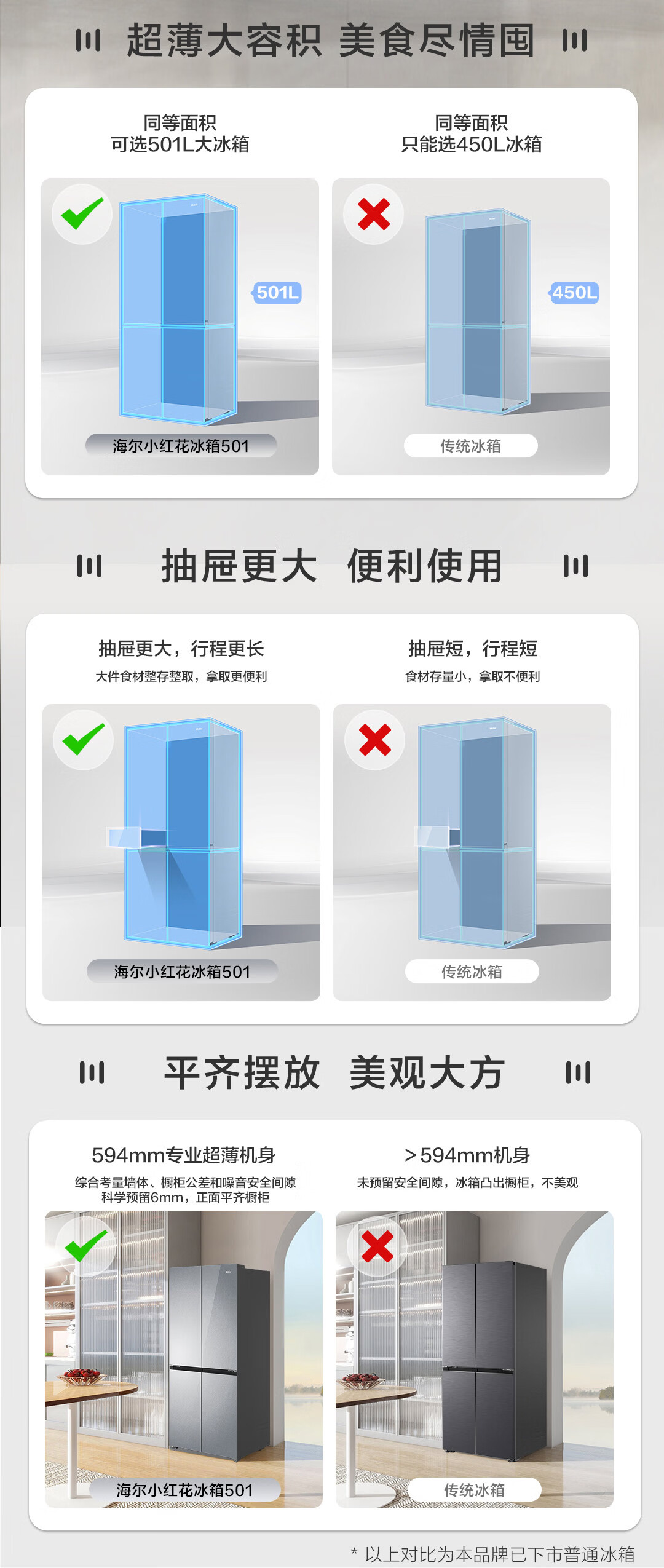 海尔(Haier)【真专供】海尔冰箱501L十字490plus升级款594mm超薄箱体一级彩晶BCD-501WGHTDEDGDU1