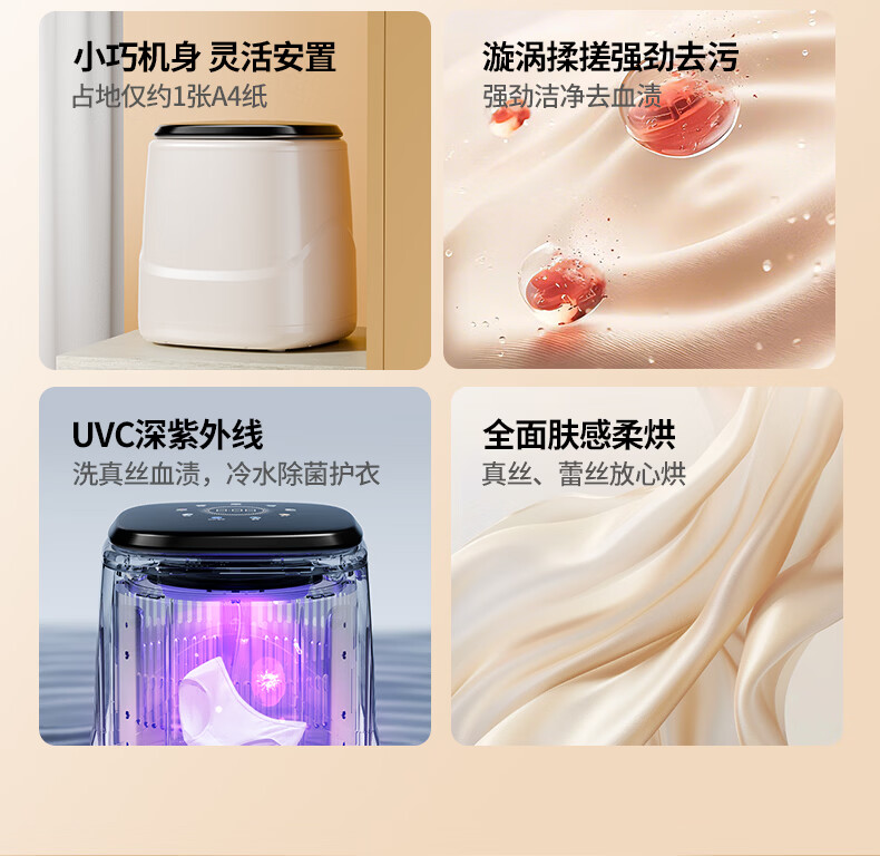 KANGYAN内衣裤迷你全自动洗衣机高温煮洗脱烘一体小型专用洗袜子内裤清洗机懒人洗衣机洗袜子神器 顶配款【煮洗脱烘一体款】环绕式烘干丨多重除菌螨
