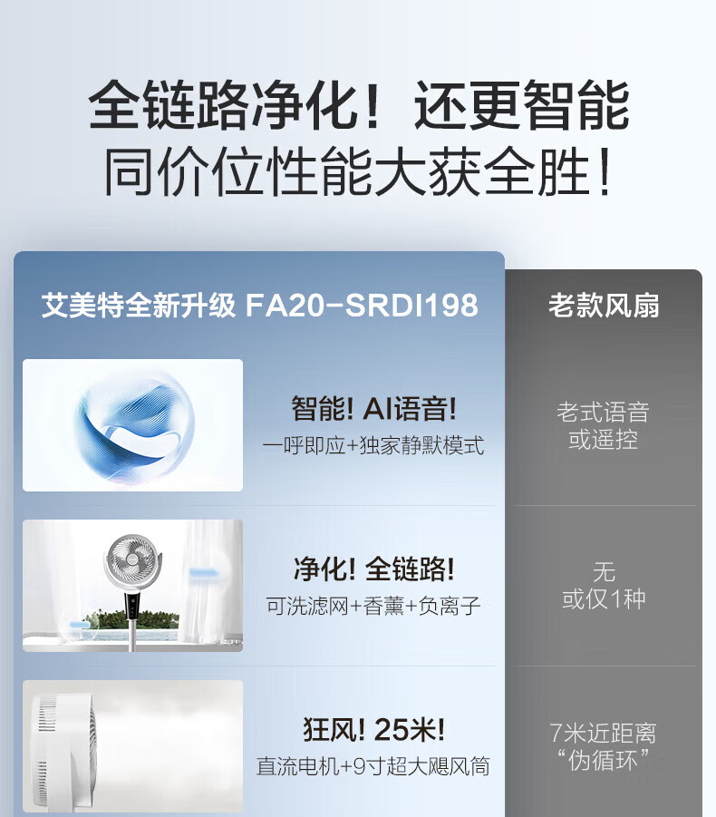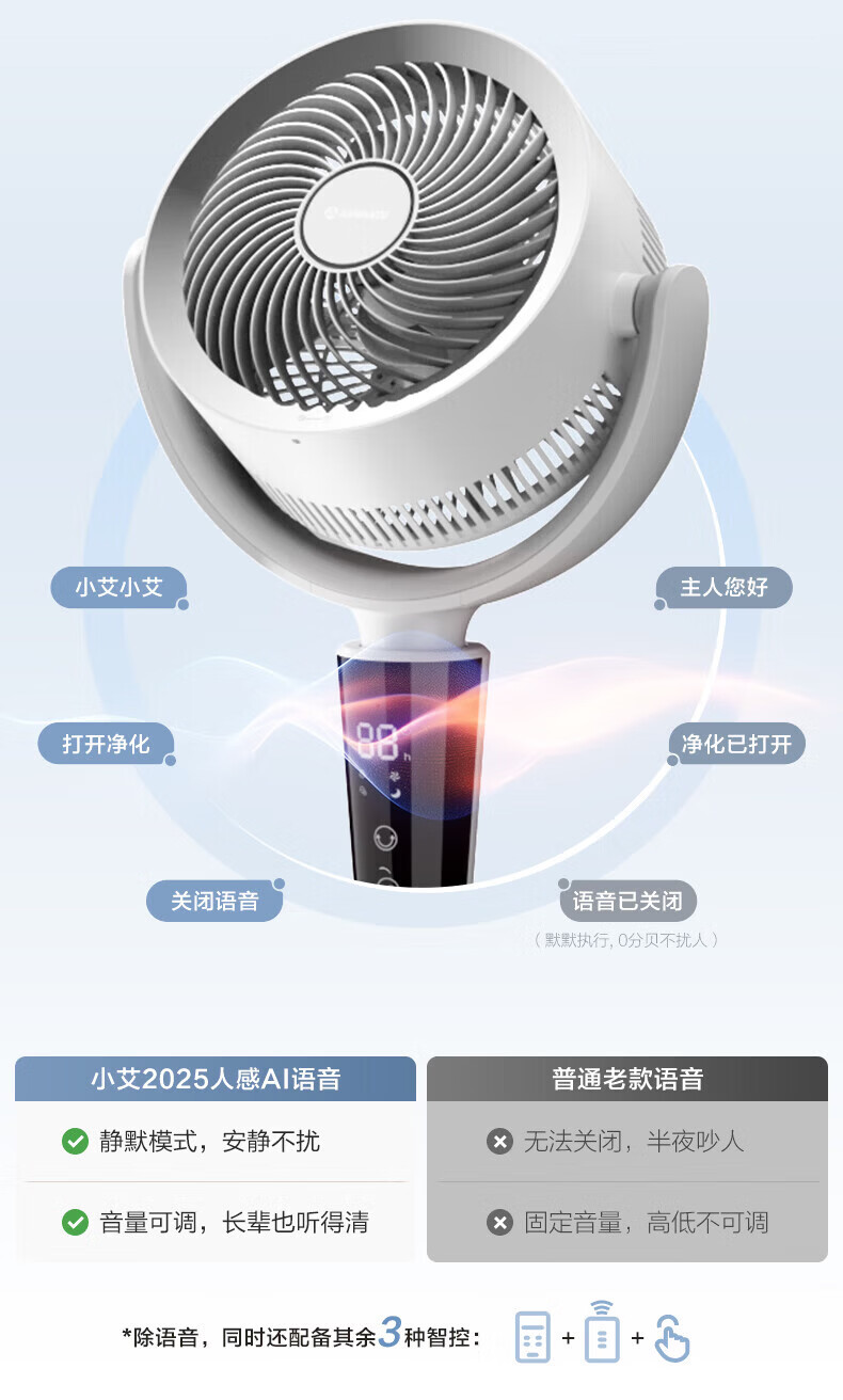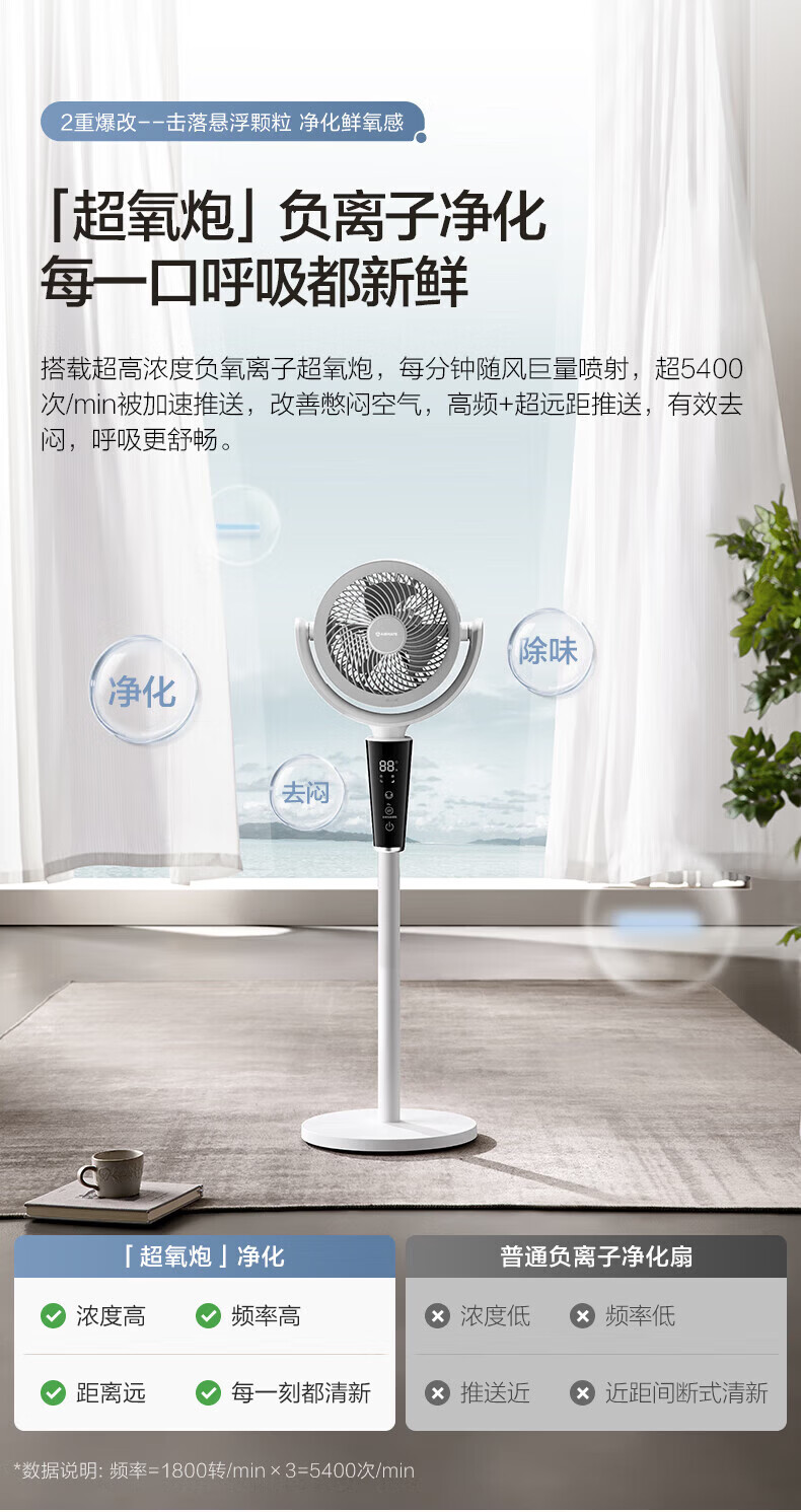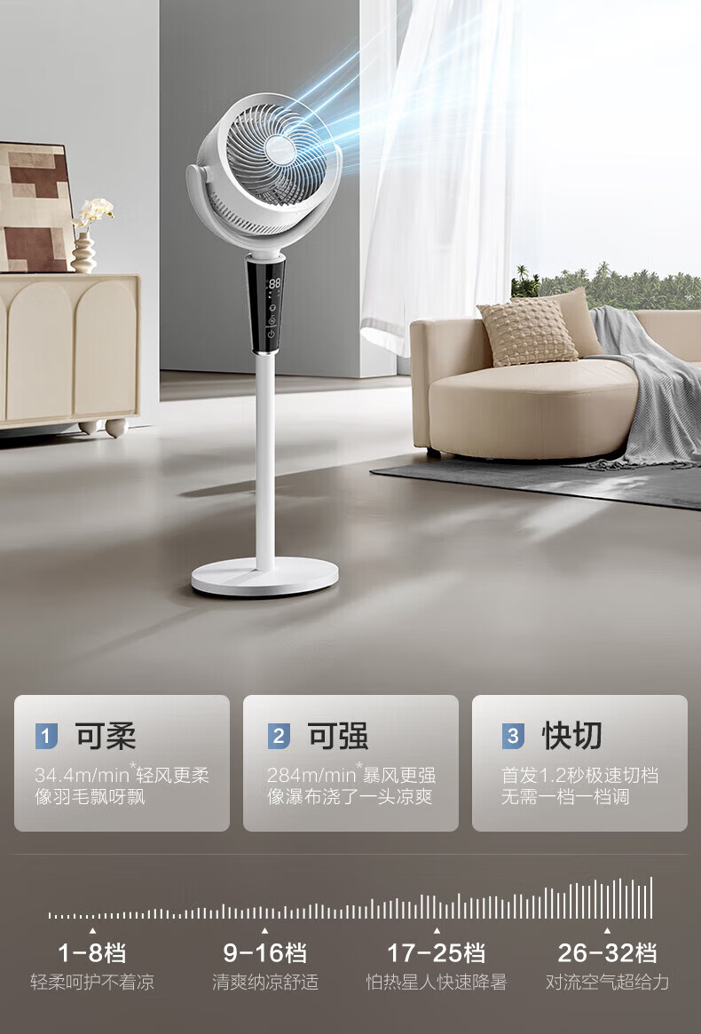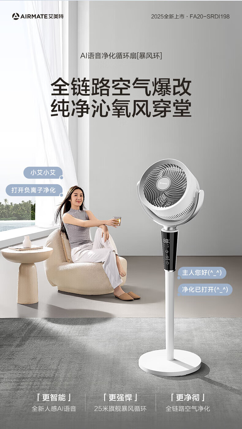 艾美特(AIRMATE)【负离子净化】空气循环扇家用电风扇卧室客厅智能语音轻音节能一级能效直流变频台式立式落地扇 AI智能语音【负离子+香薰盒+32档直流】一级能效