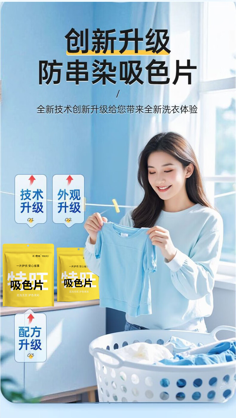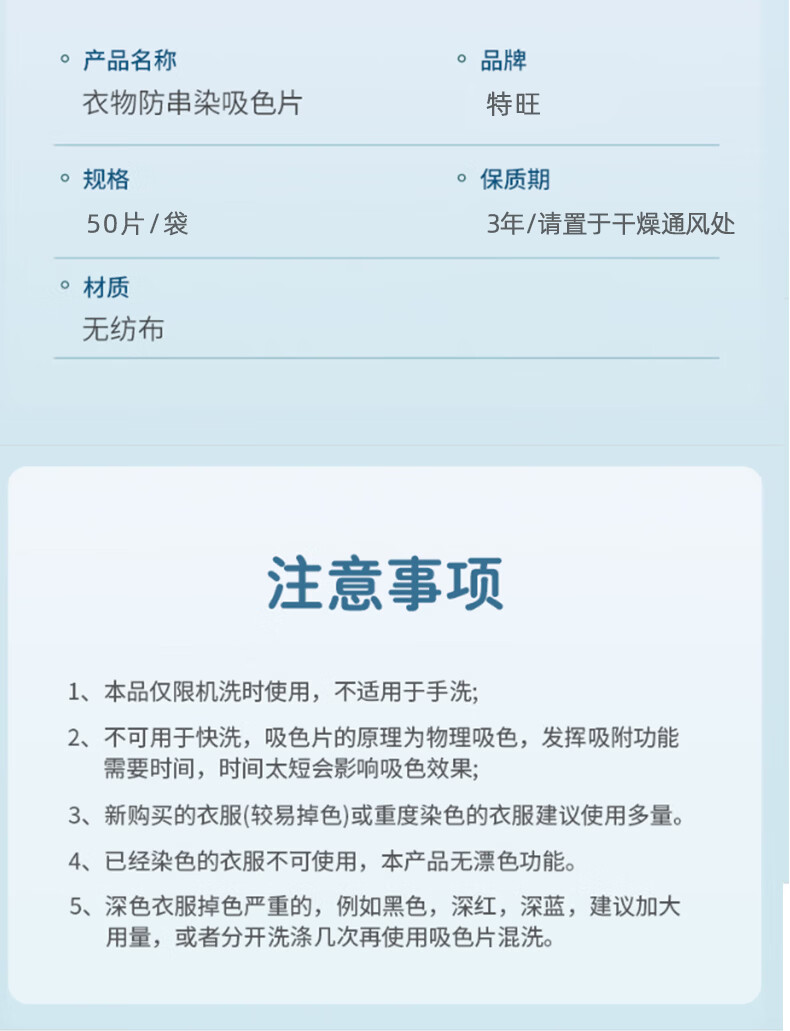 特旺防染色洗衣片色母片衣服洗衣纸防止串染吸色片护色防脱色 混洗防串染【50片*5包】到手250张