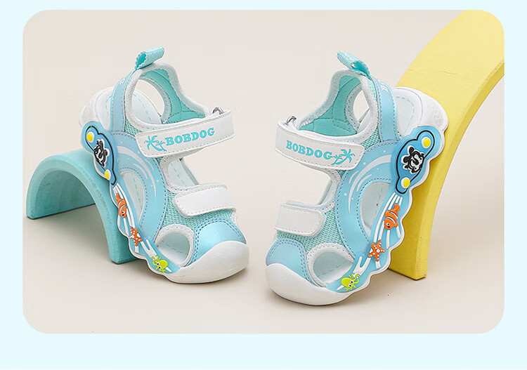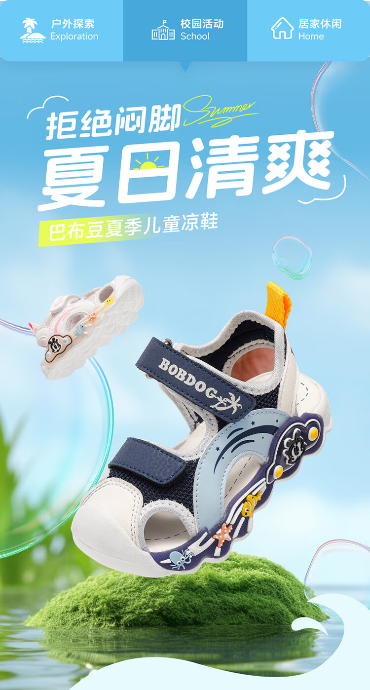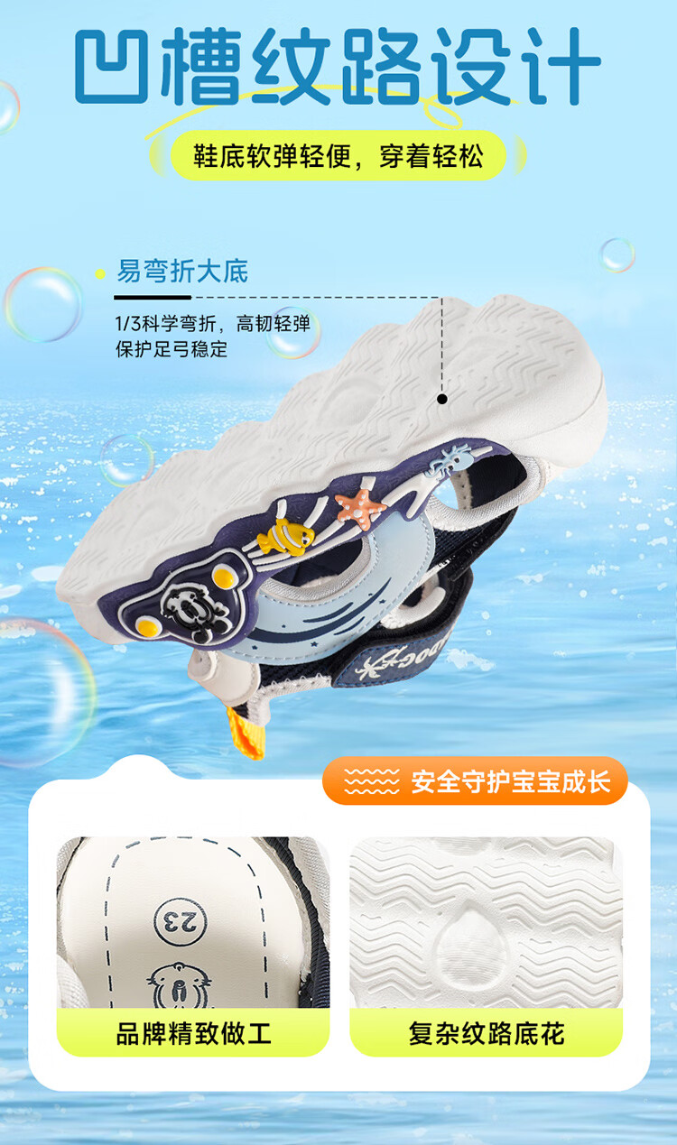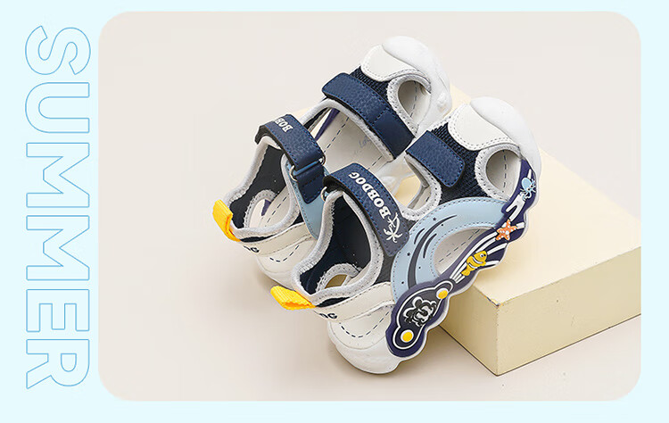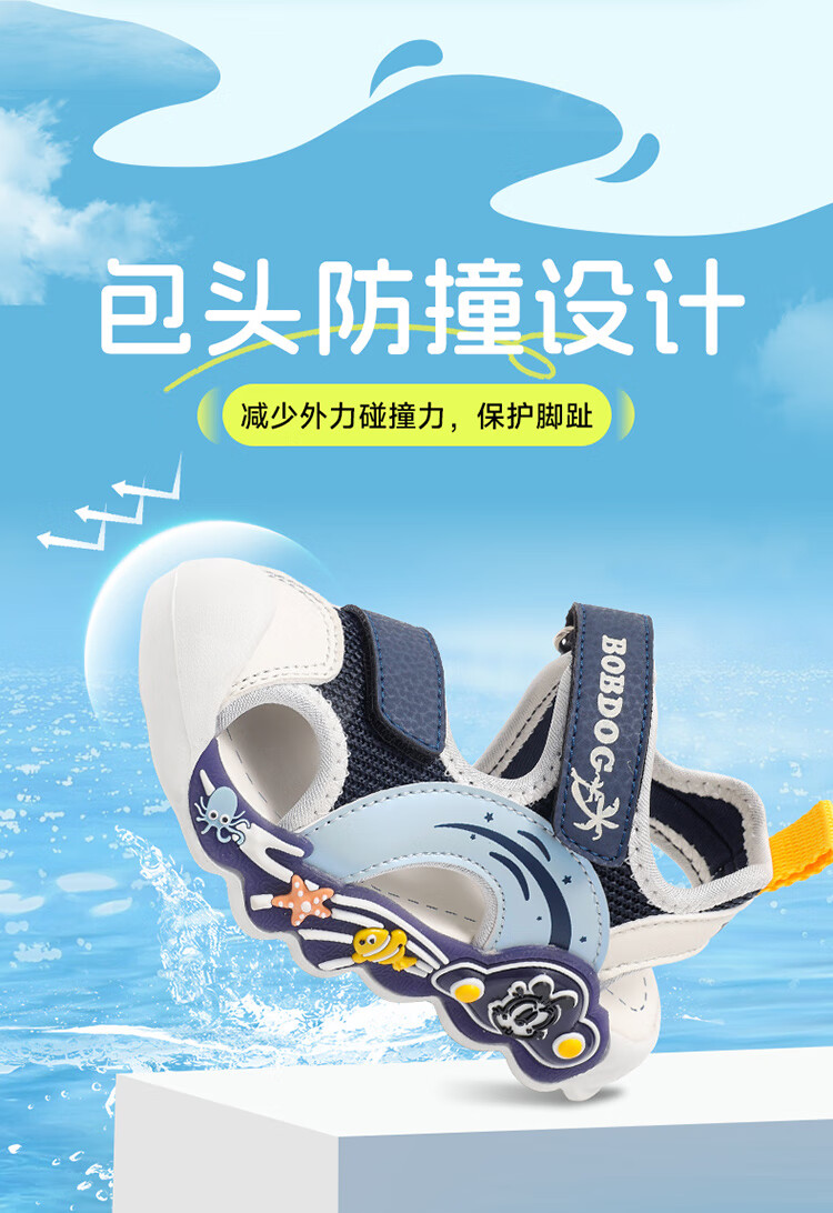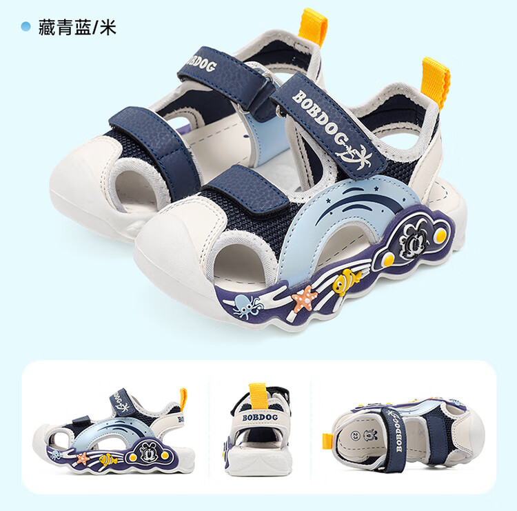 巴布豆童鞋男童夏季学步鞋2025新款包头透气儿童凉鞋小童轻便机能鞋女 藏青蓝/米 27 适合脚长16.5cm