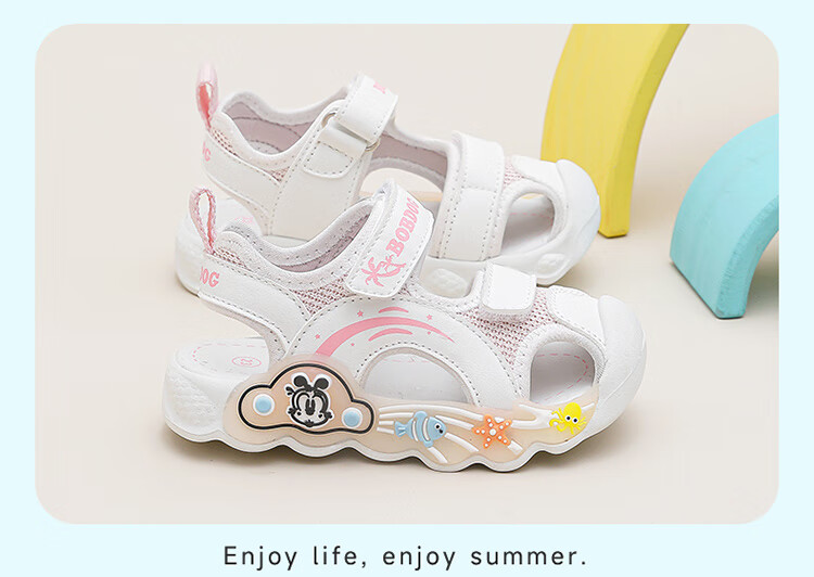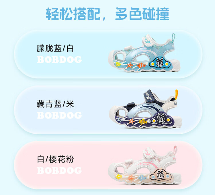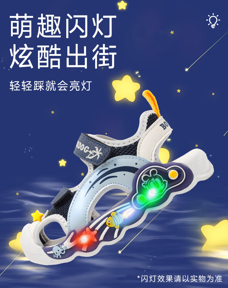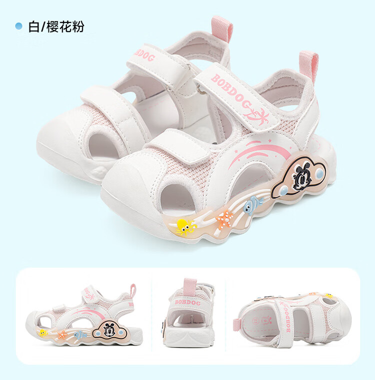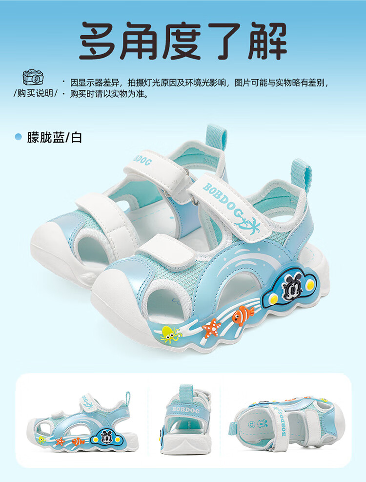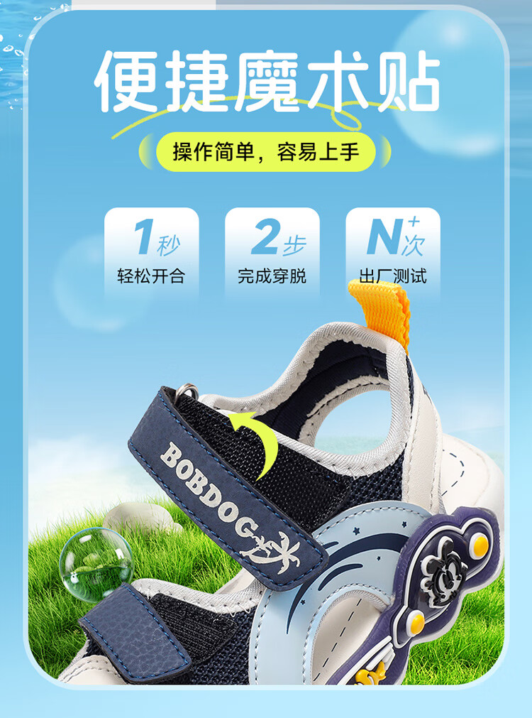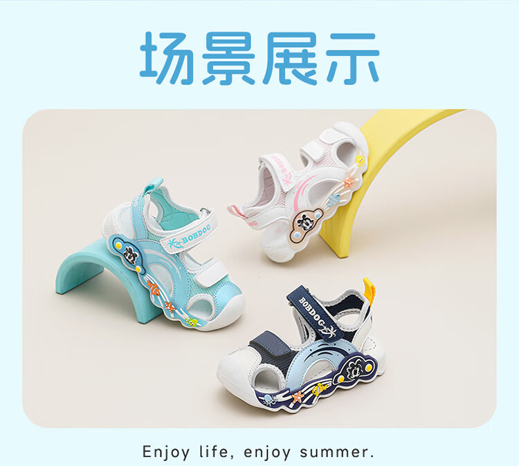 巴布豆童鞋男童夏季学步鞋2025新款包头透气儿童凉鞋小童轻便机能鞋女 藏青蓝/米 27 适合脚长16.5cm