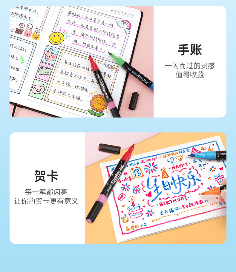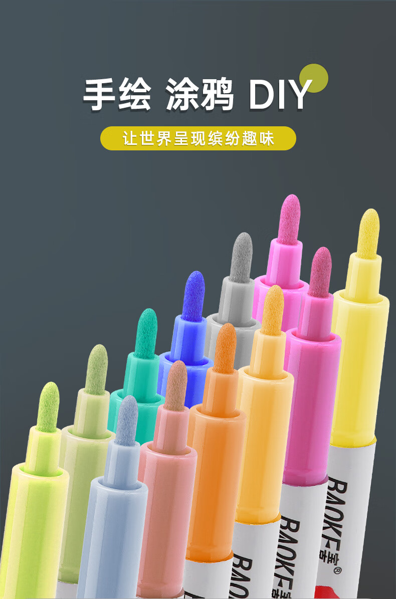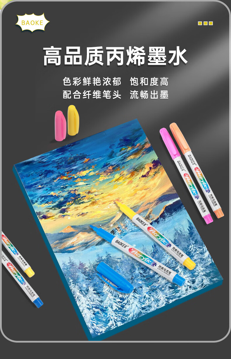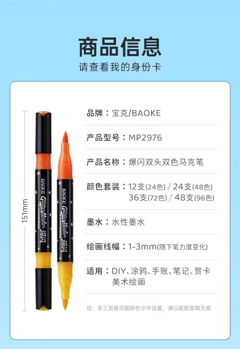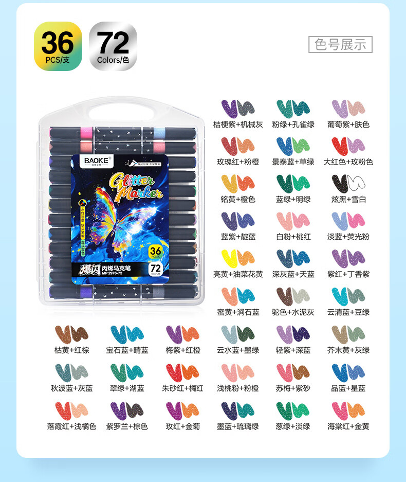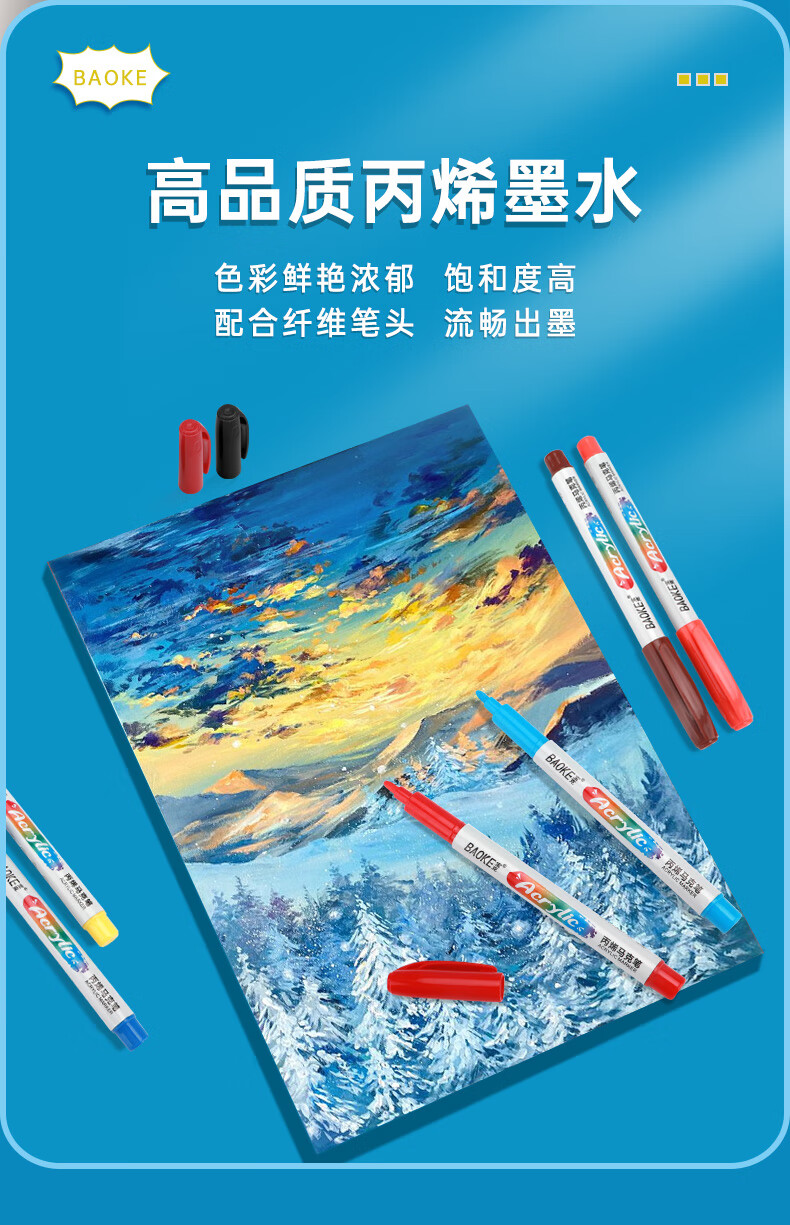 宝克(BAOKE)丙烯双头马克笔 覆盖力强不易褪色安全无异味 儿童小学生美术画画专用涂鸦MP2955 双头软绘爆闪闪绘马克笔-24色 MP2976